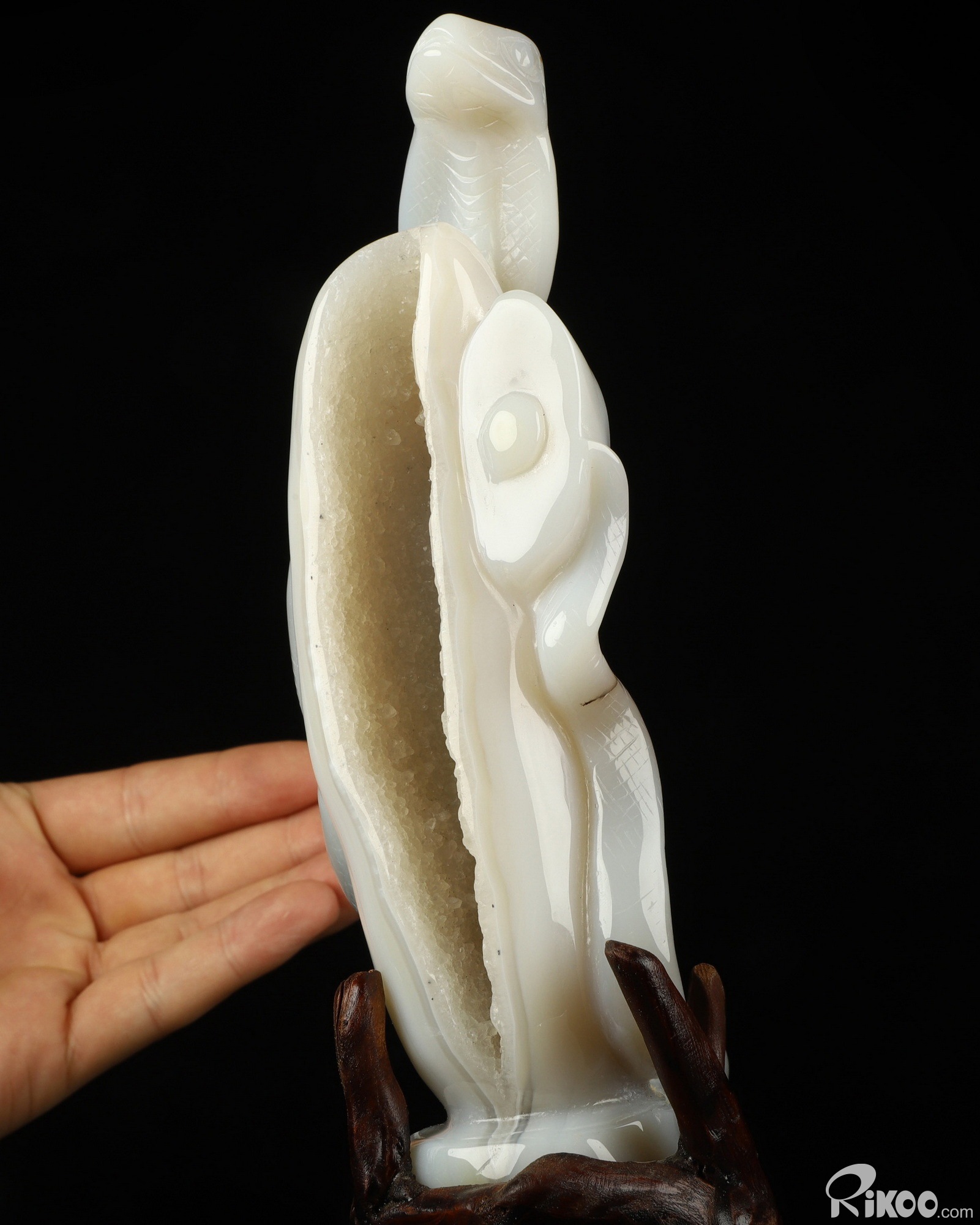 You are looking at a Agate Geode Snake. The Snake is 7.2 inches long from front to back.