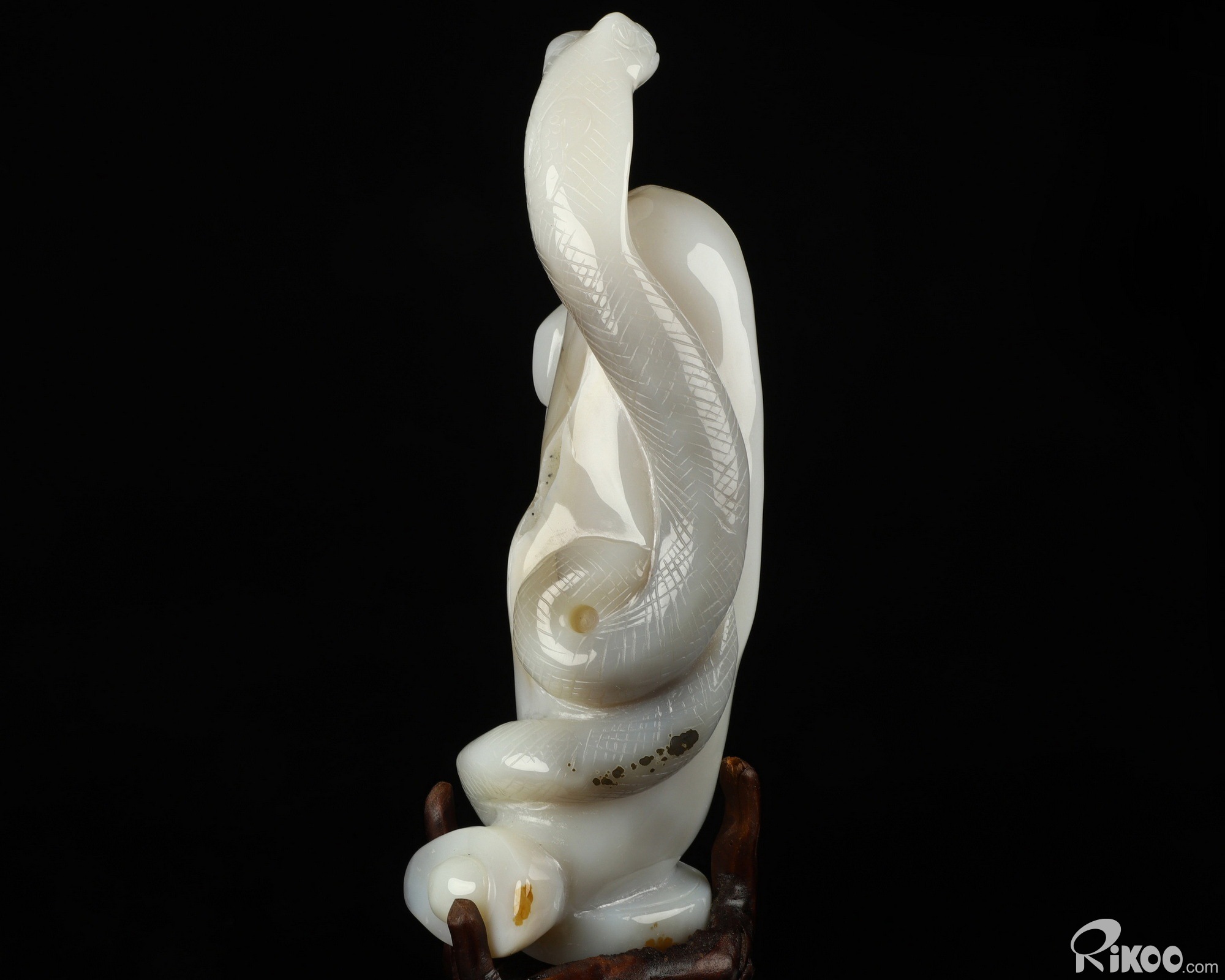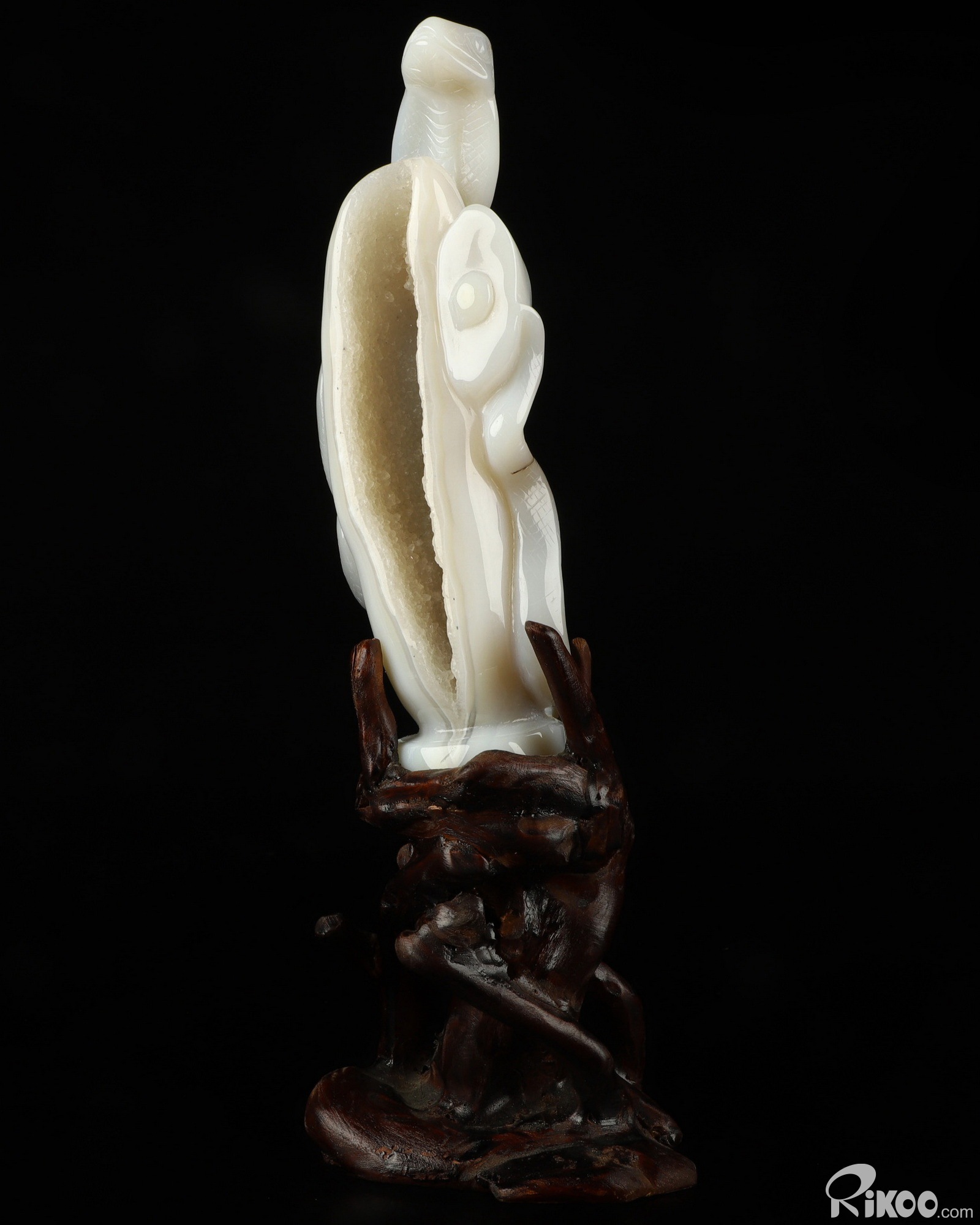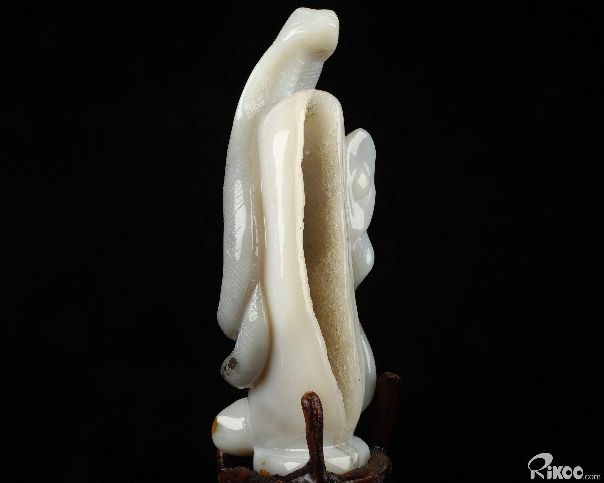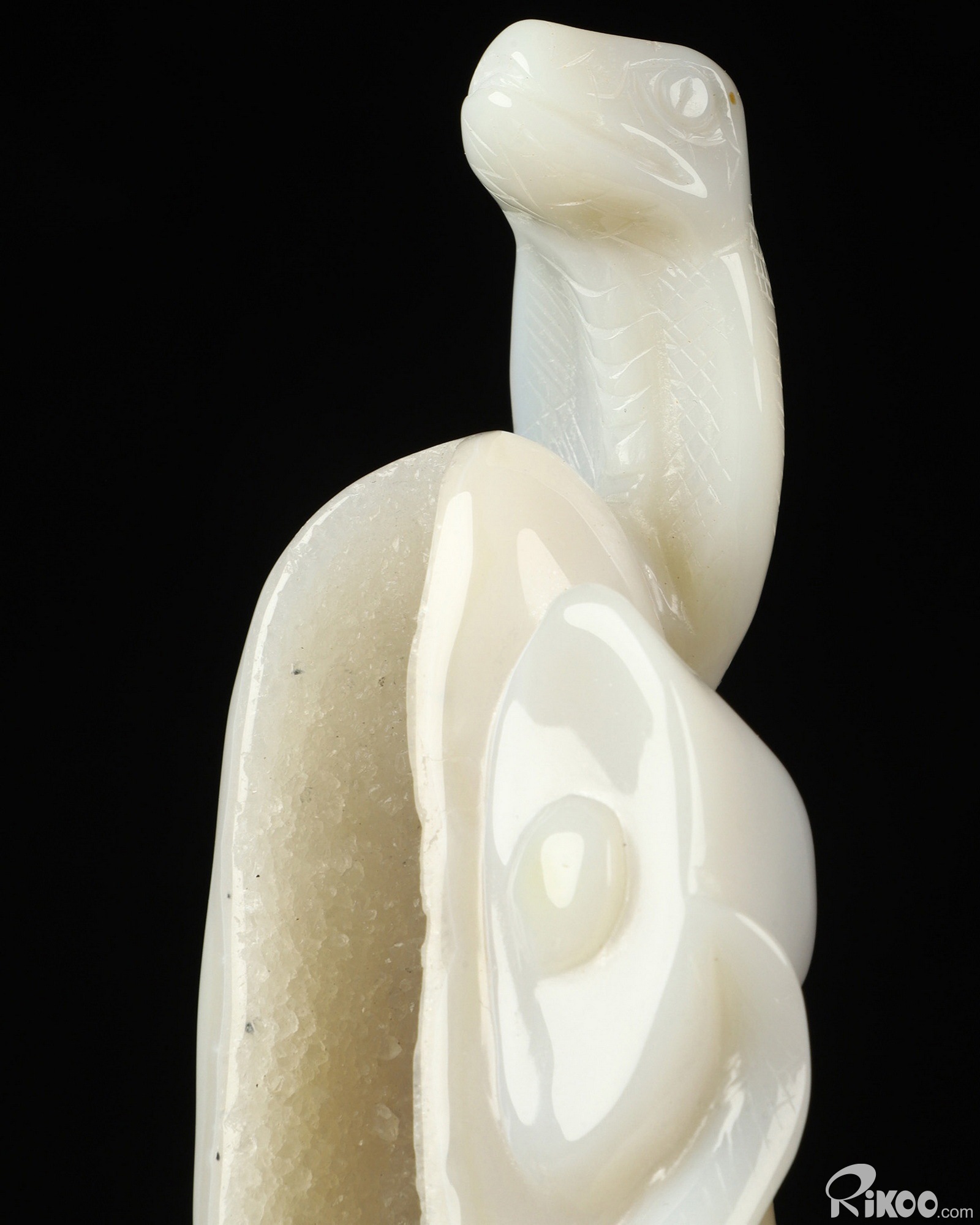 7.2" Agate Geode Hand Carved Crystal Snake Sculpture, Crystal Healing