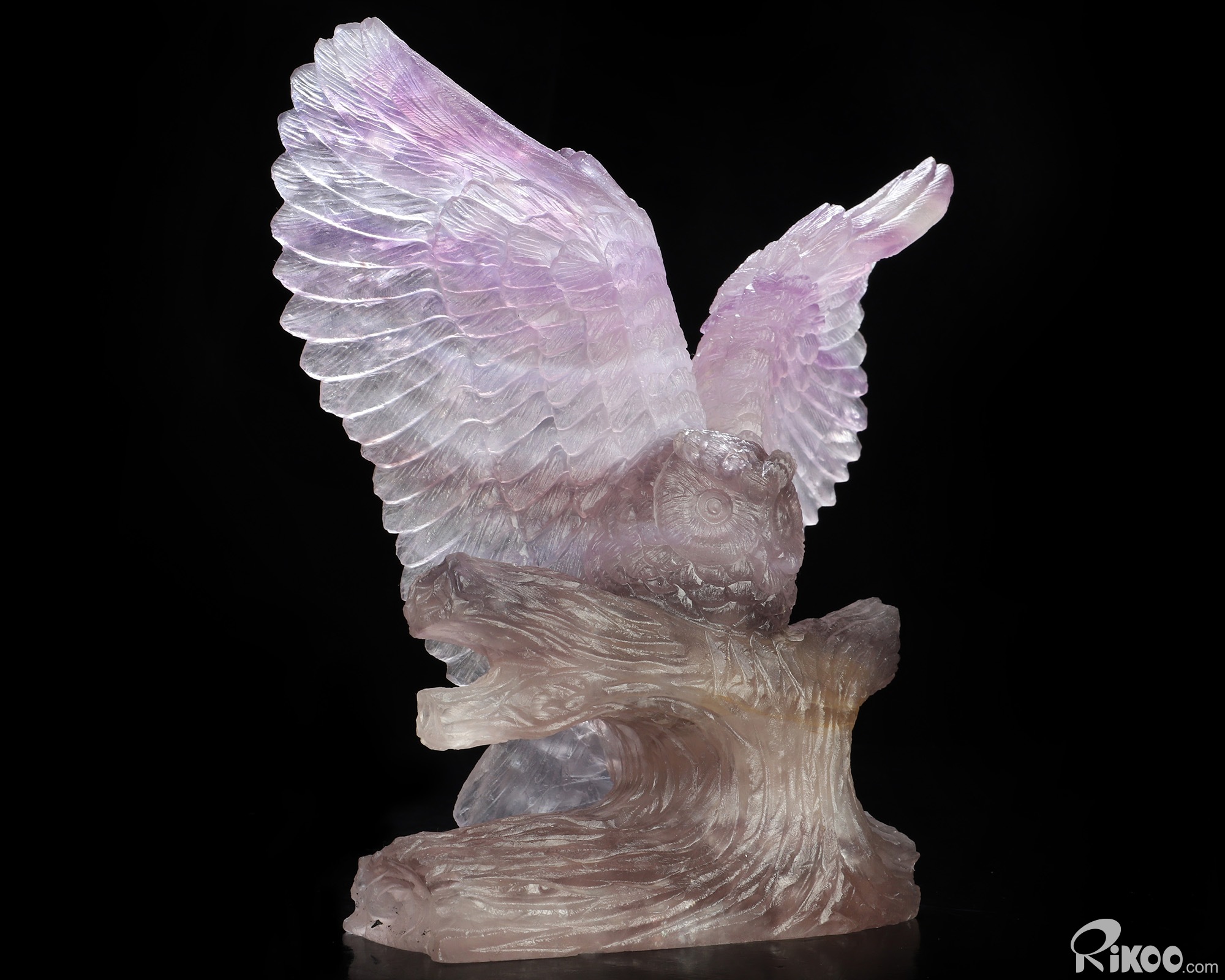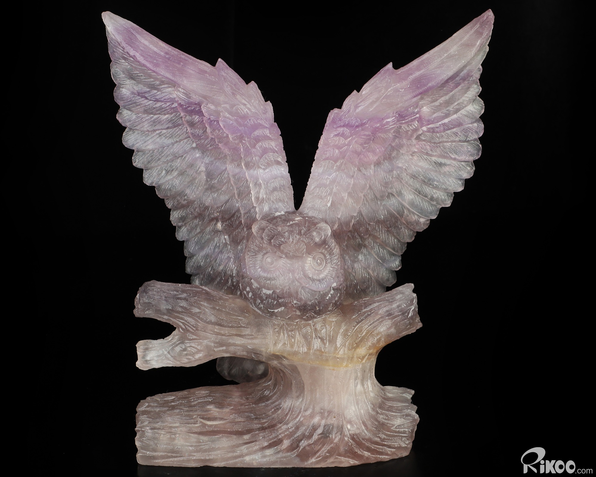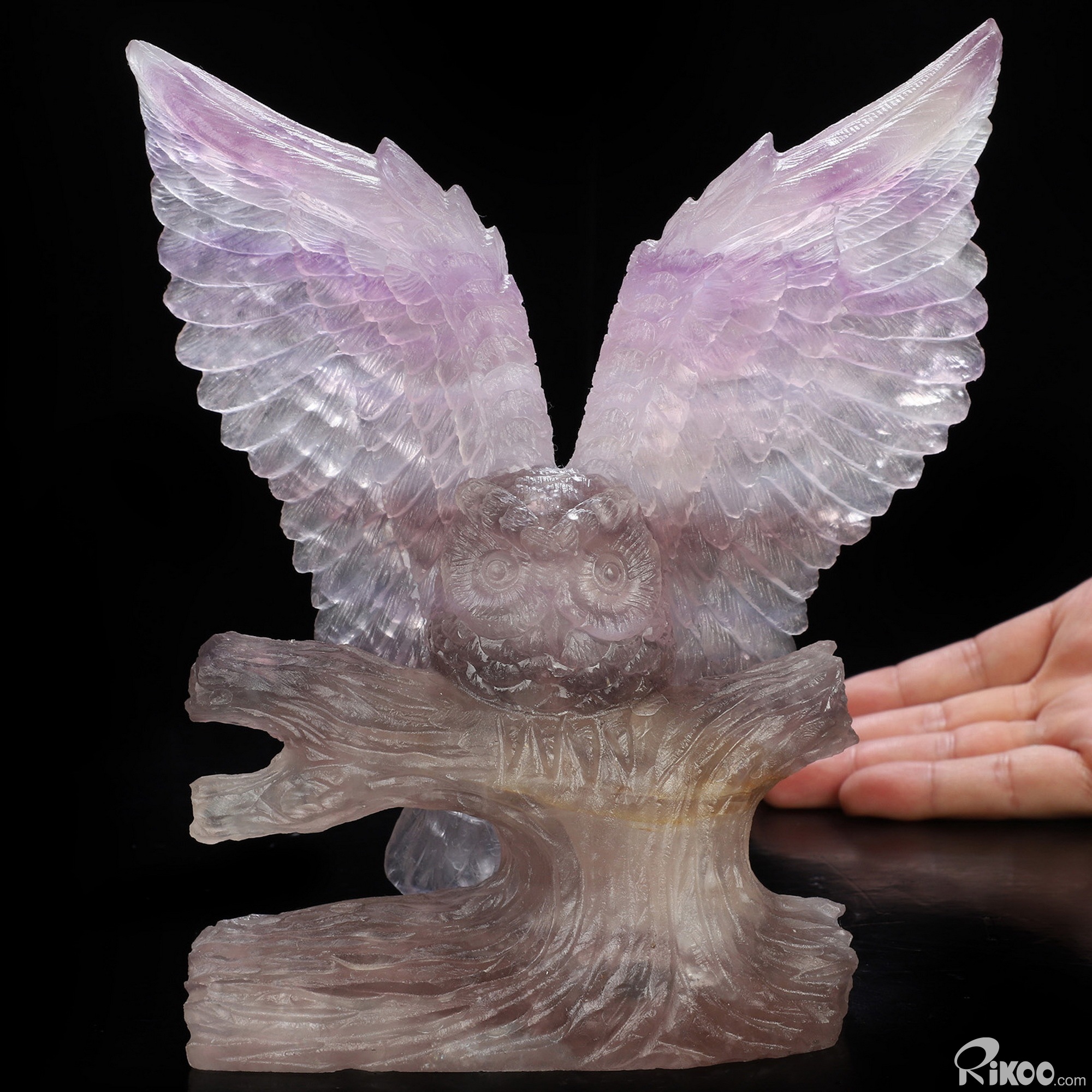 7.2" Fluorite Hand Carved Crystal Owl Sculpture, Crystal Healing