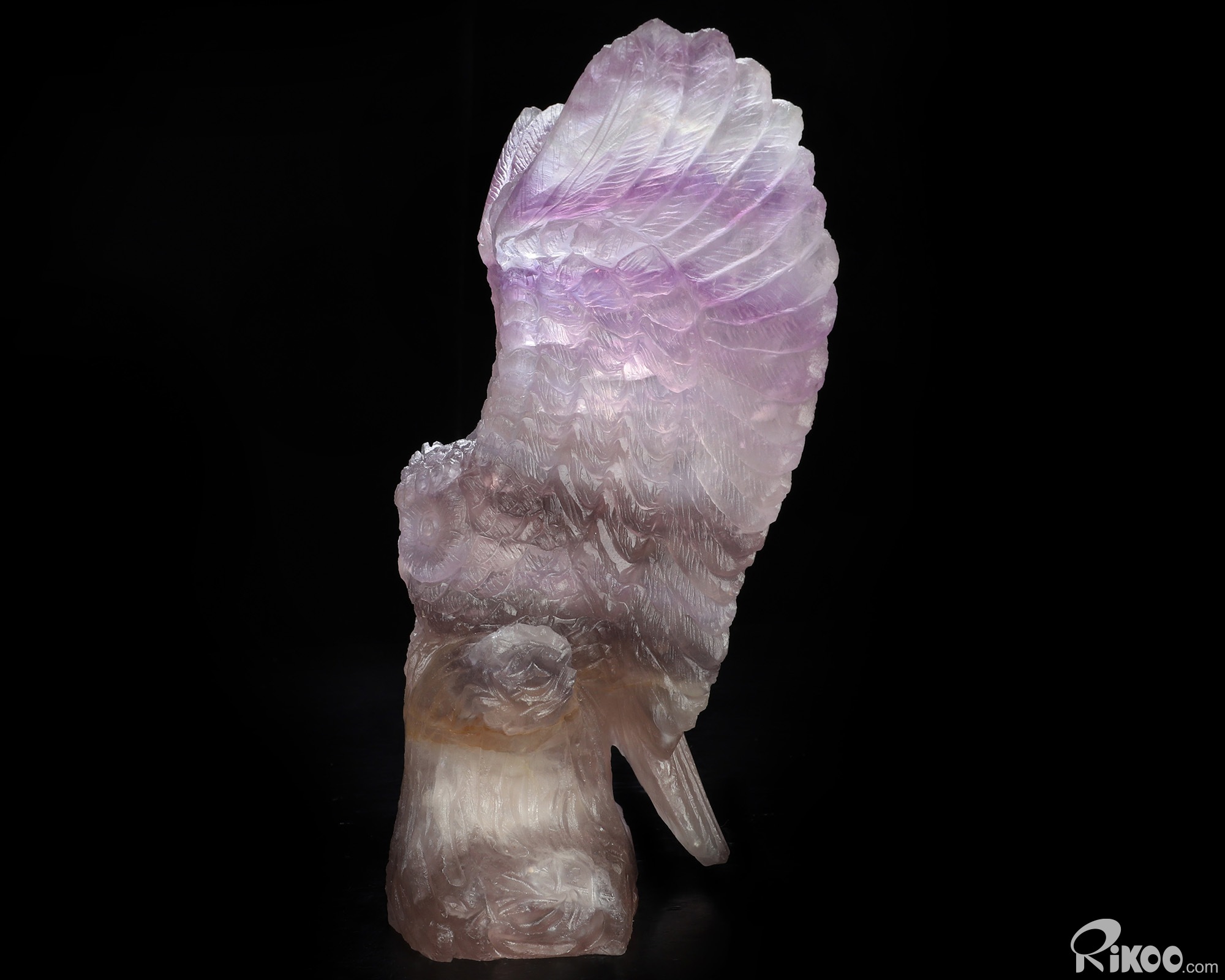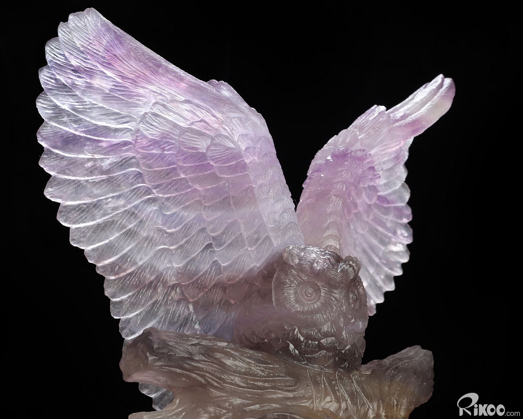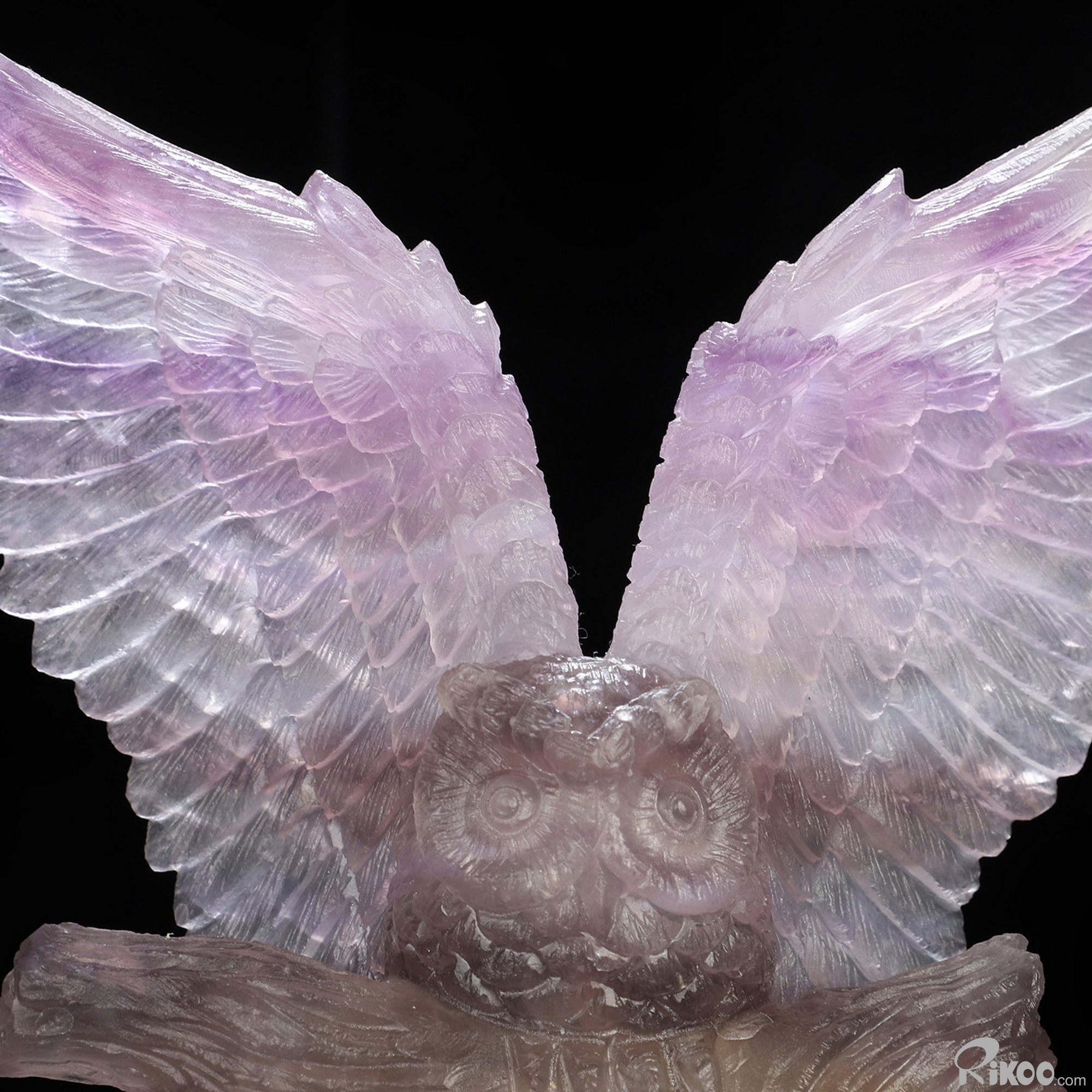 7.2" Fluorite Hand Carved Crystal Owl Sculpture, Crystal Healing