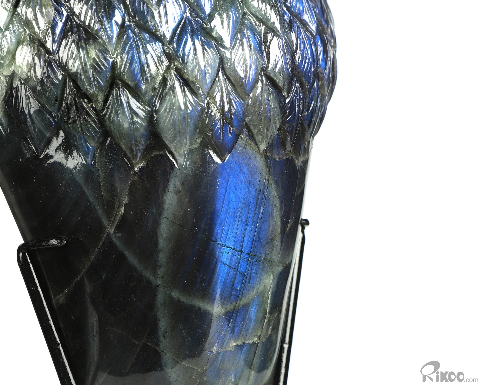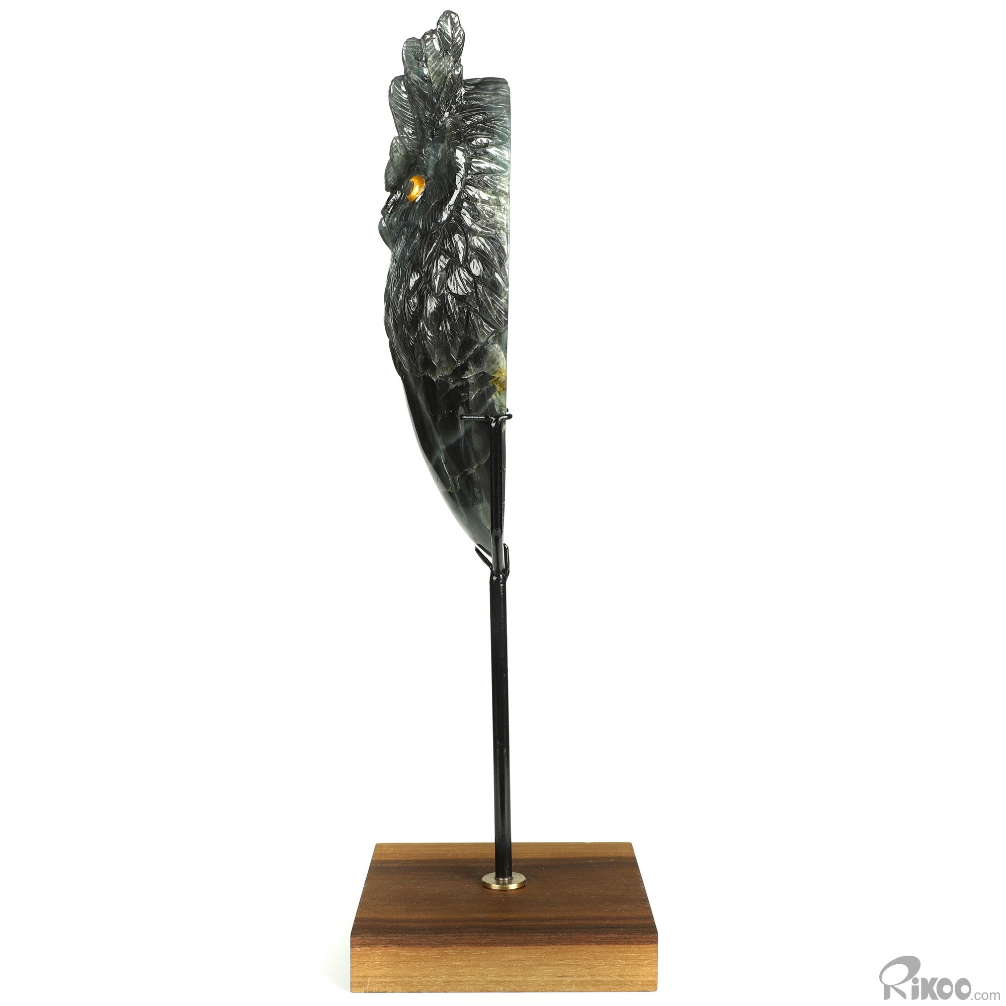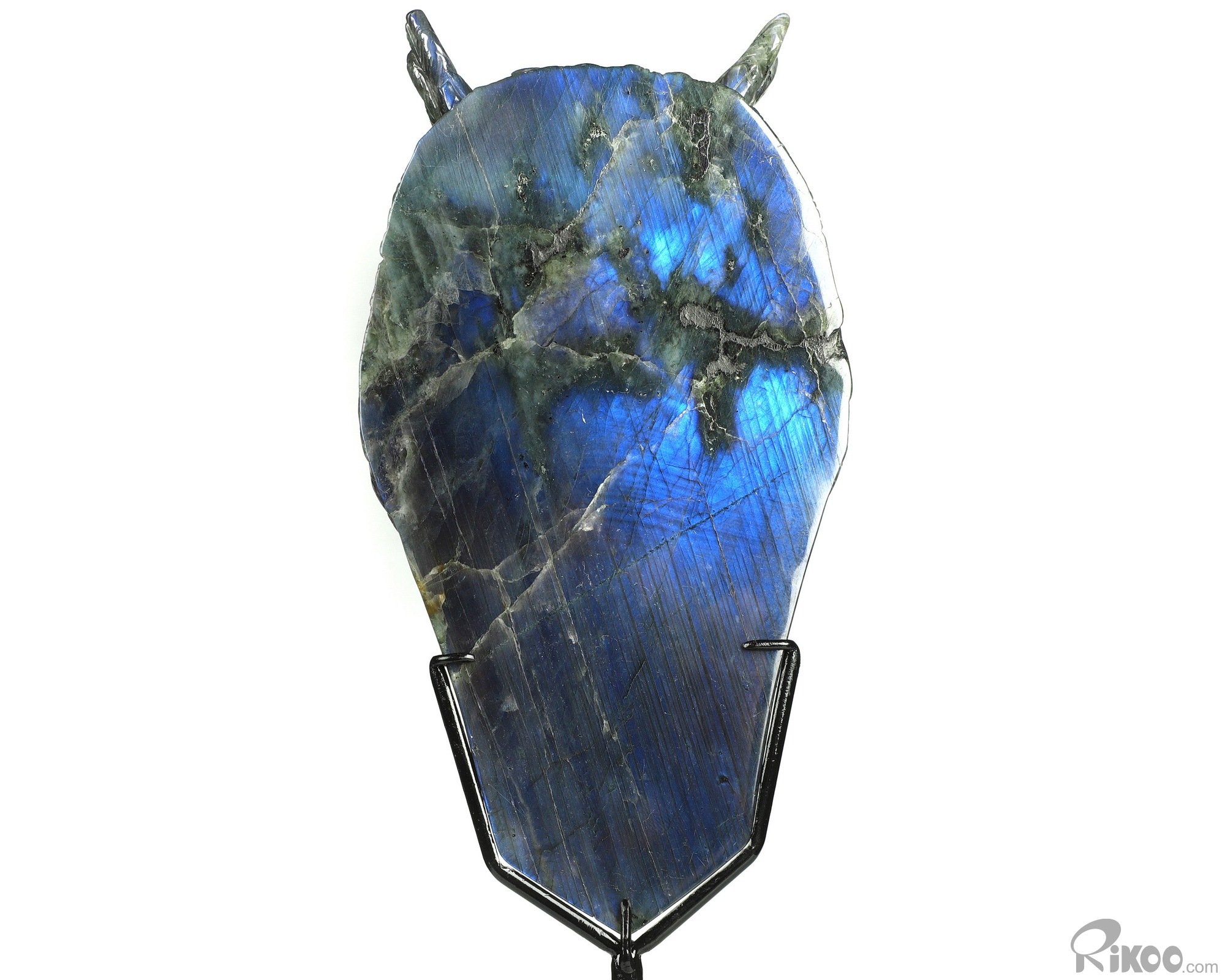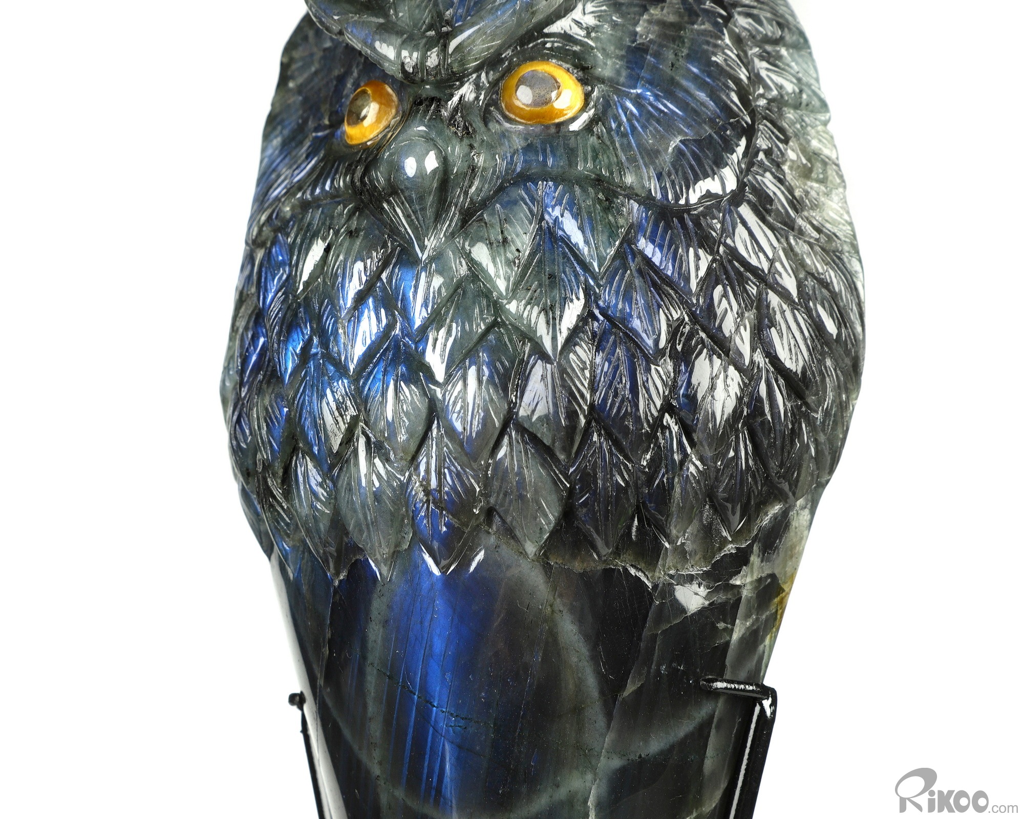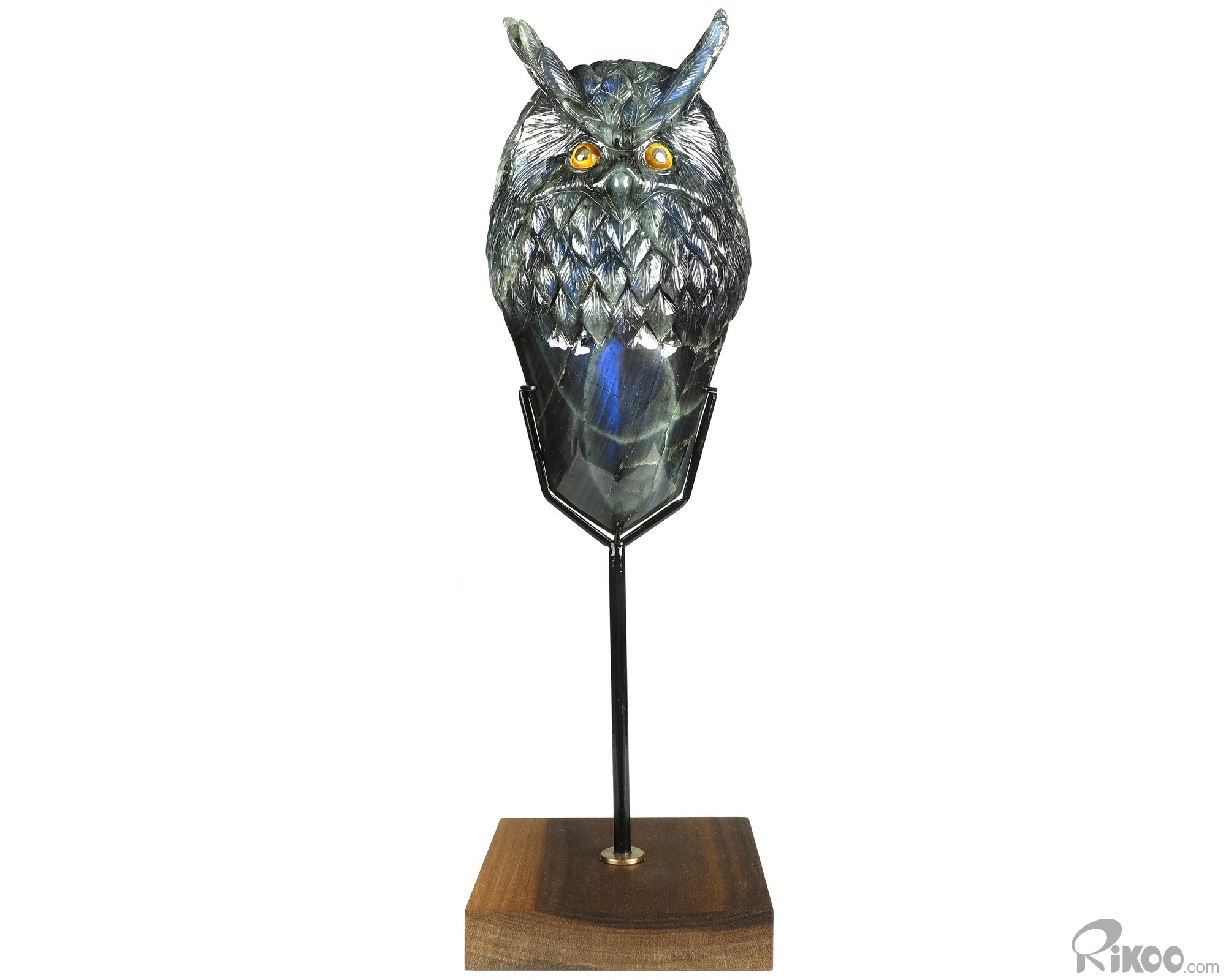 You are looking at a Labradorite owl. The owl is 7.2 inches long from top to bottom.