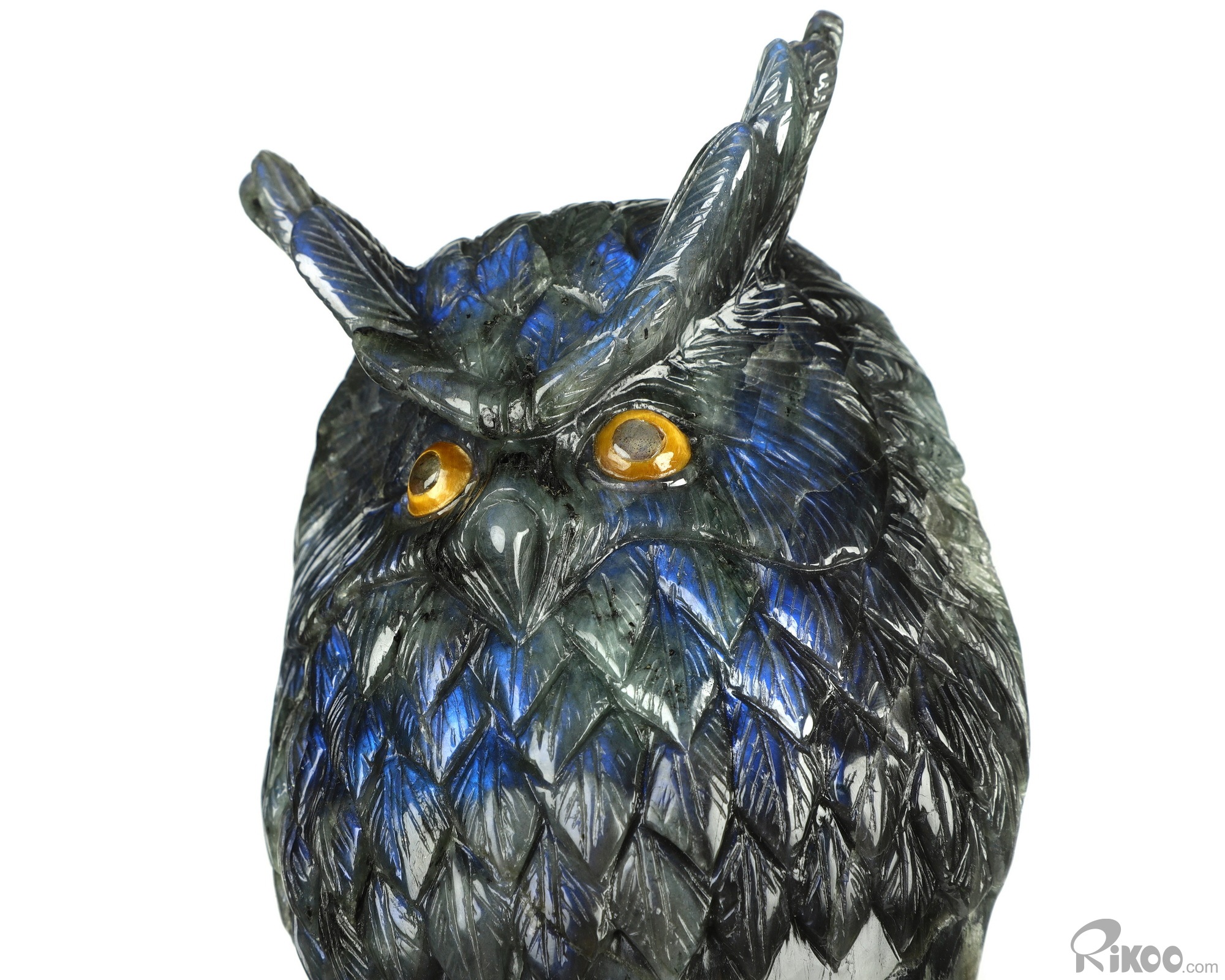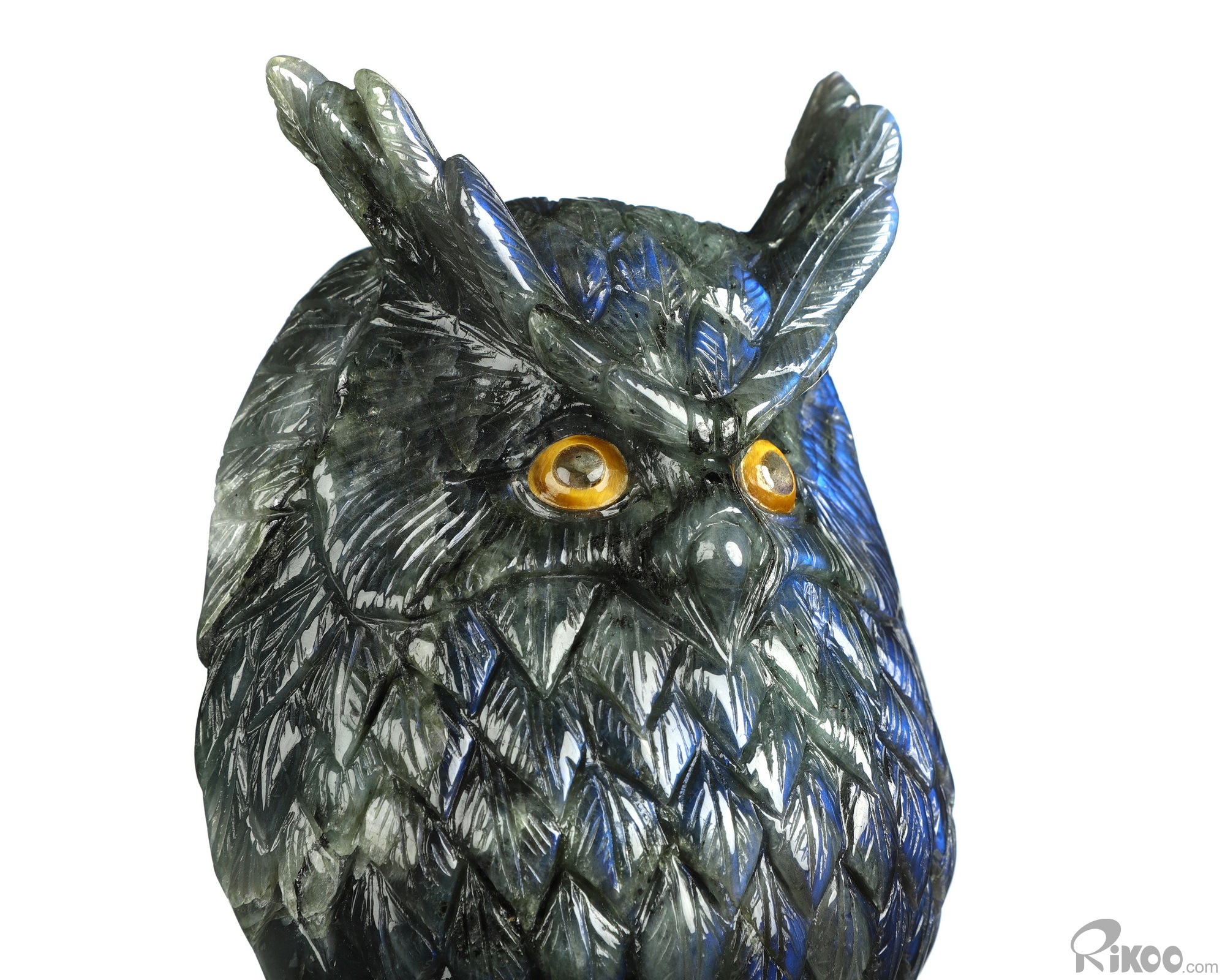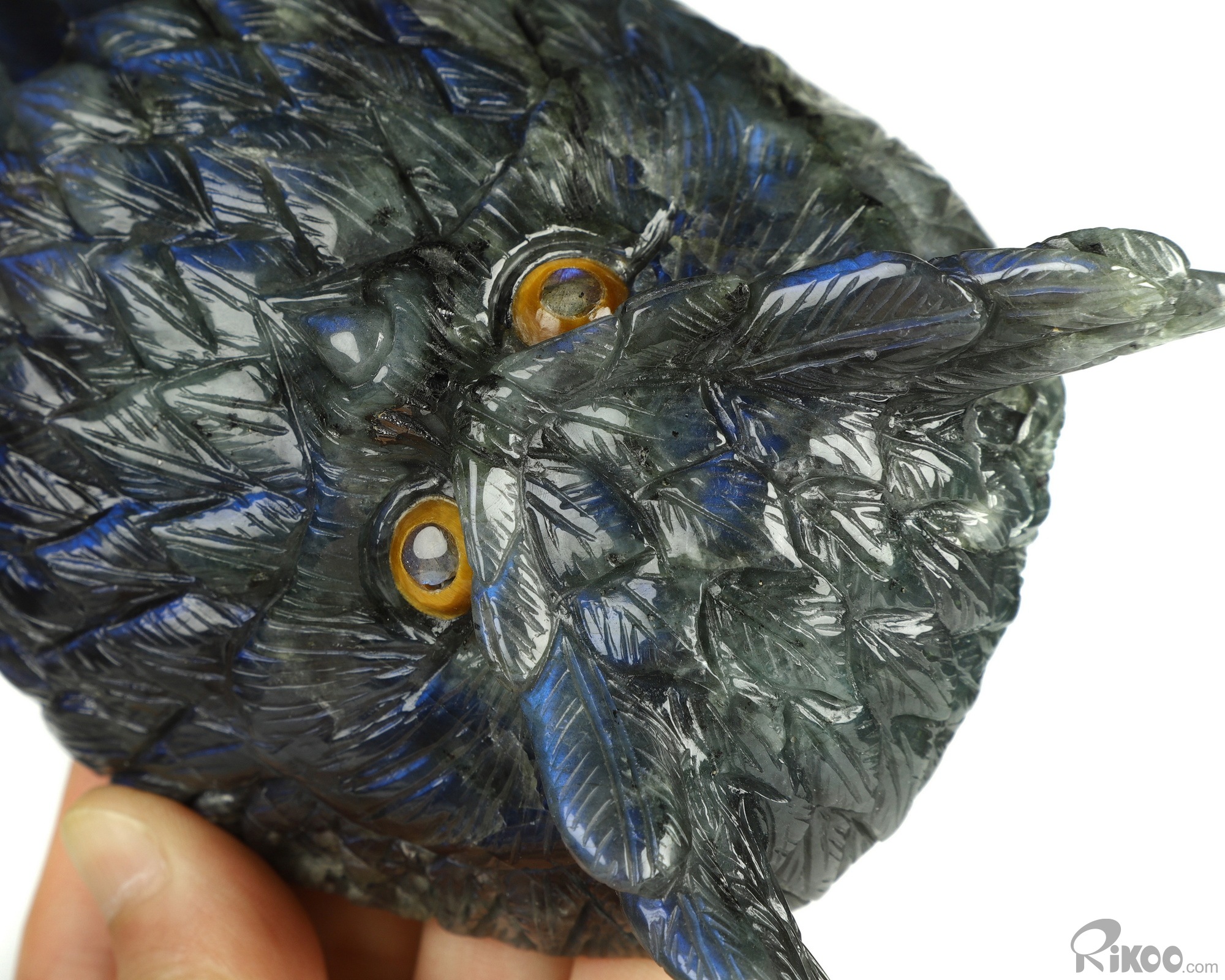 7.2" Labradorite Hand Carved Crystal Owl Sculpture, Crystal Healing