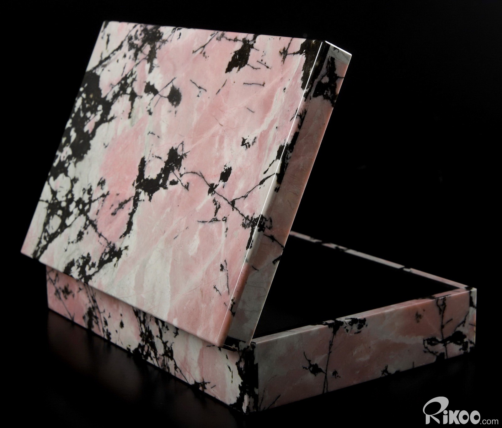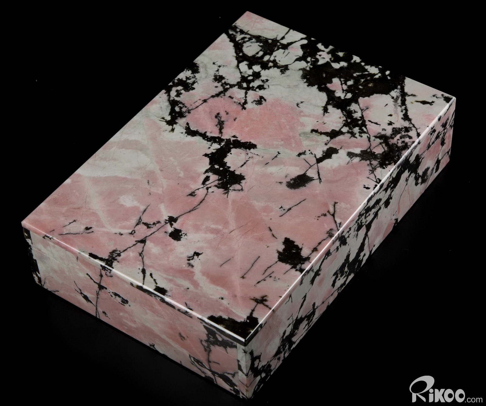 7.2" Pink & Black Rhodonite Carved Crystal Jewelry Box, Gemstone BOX, Crystal Healing