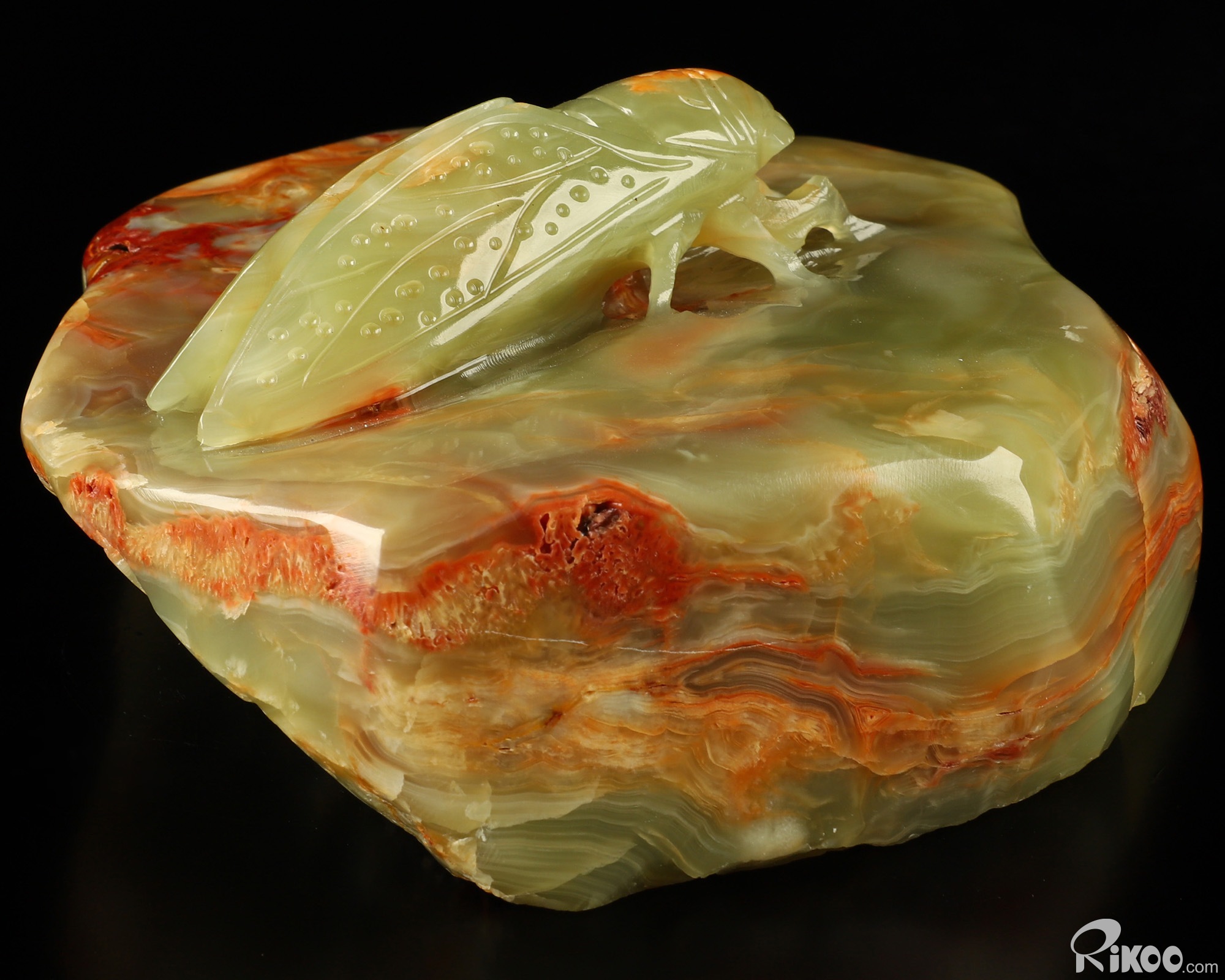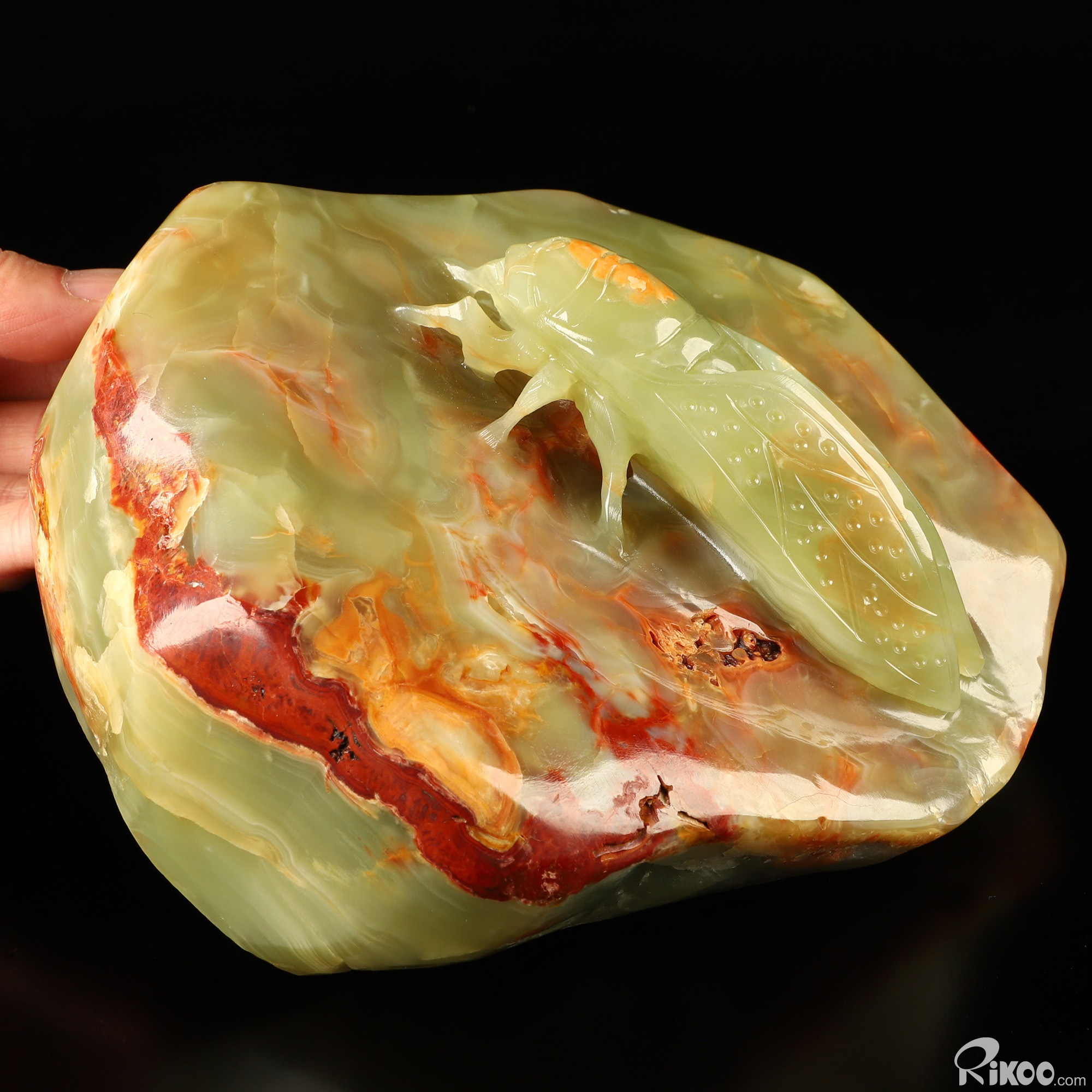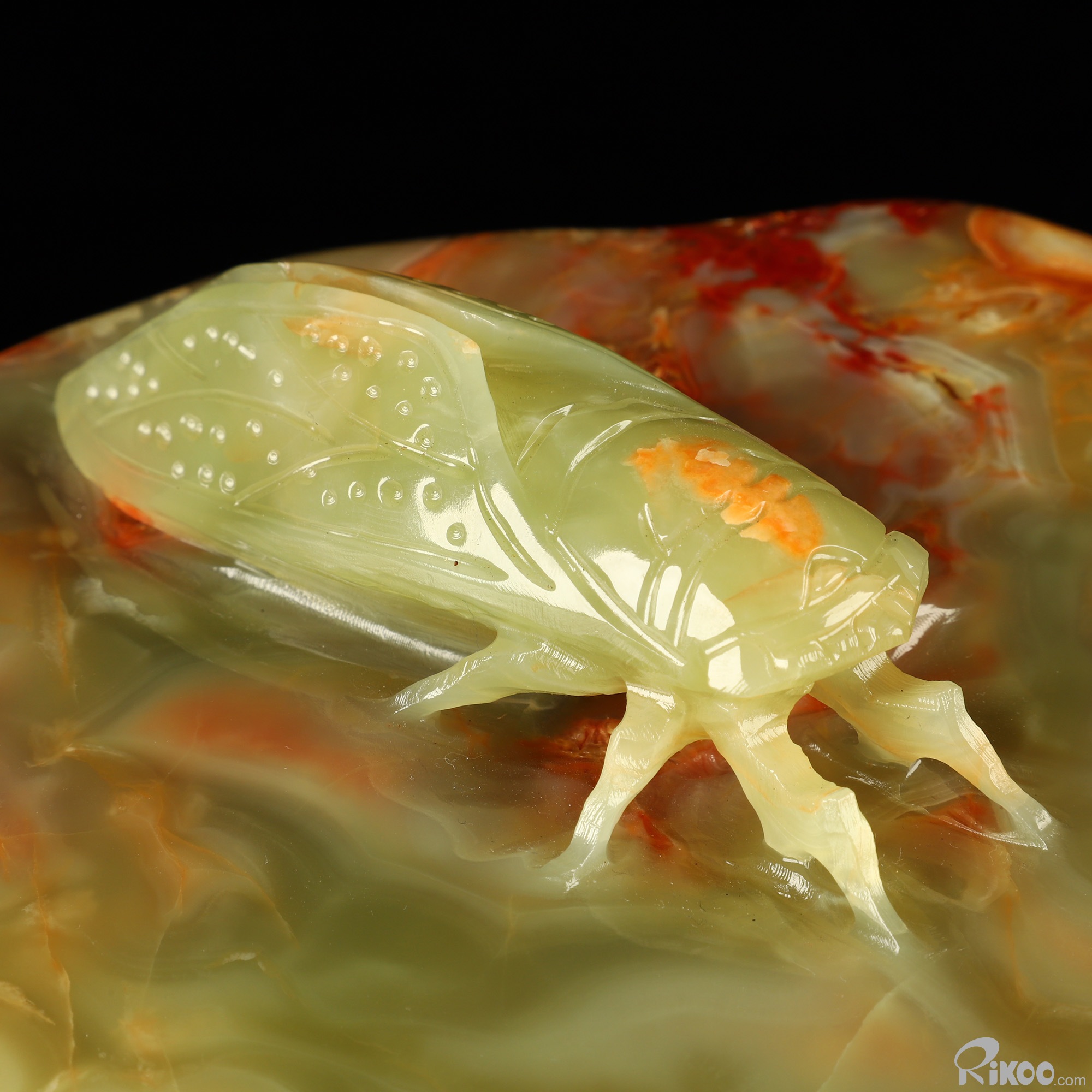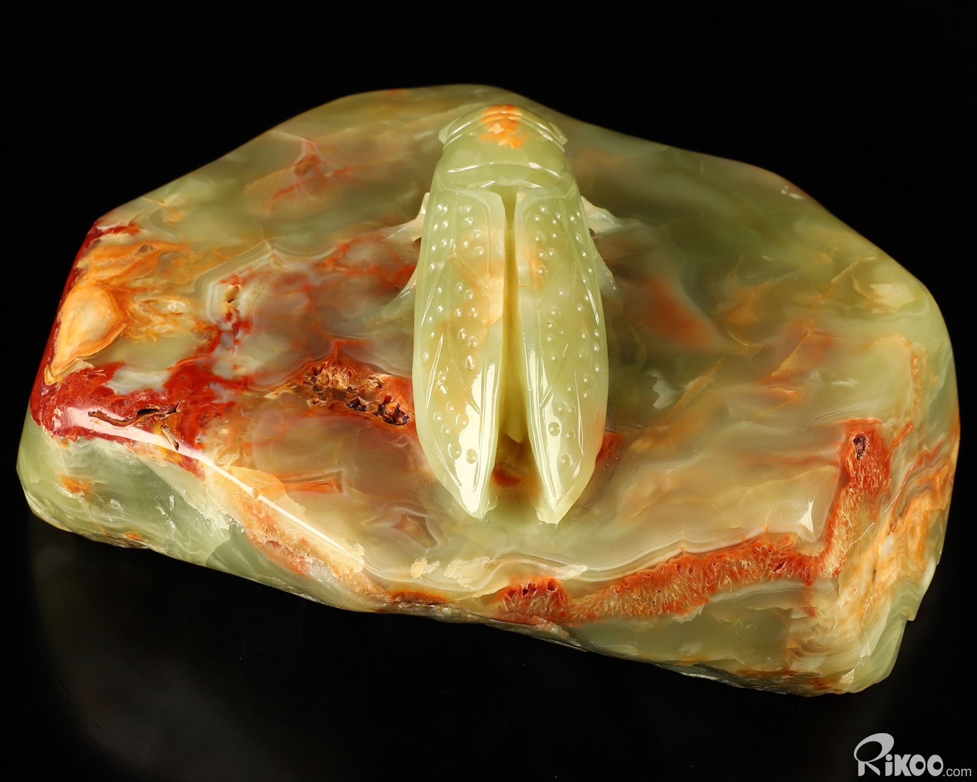 7.3" Afghanistan Jade Hand Carved Crystal Cicada Sculpture, Crystal Healing