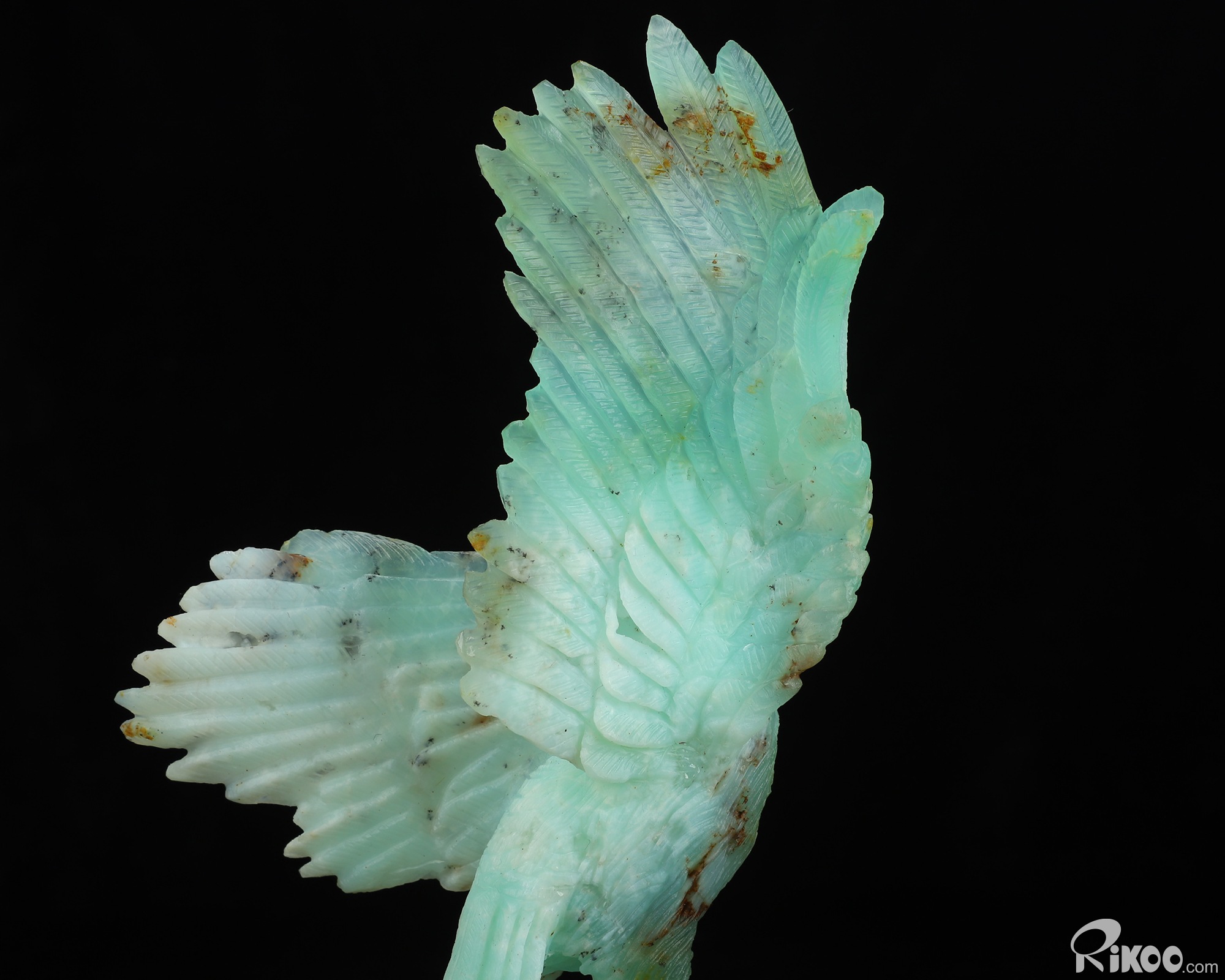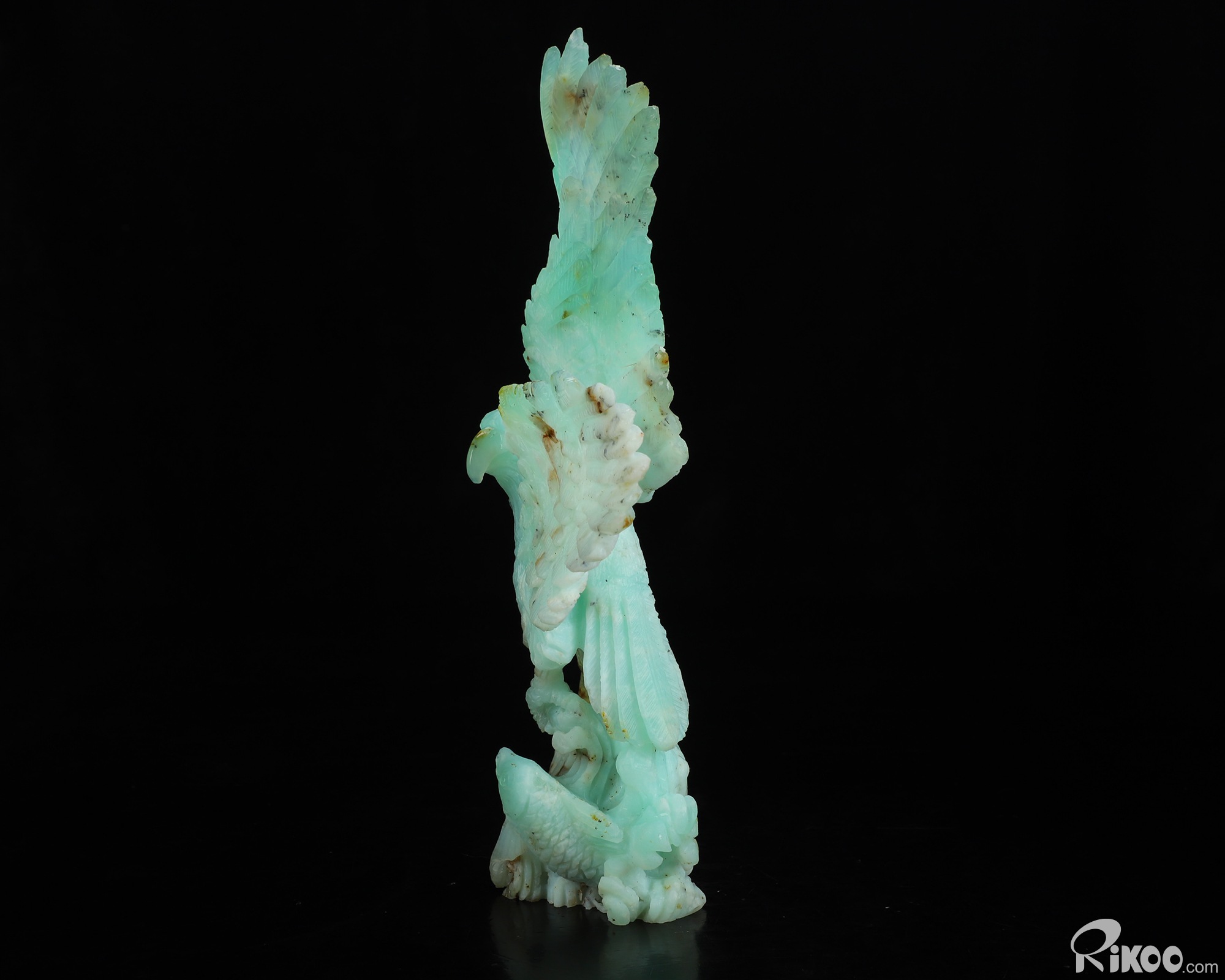 You are looking at a Chrysoprase sculpture. The sculpture is 7.3 inches long.