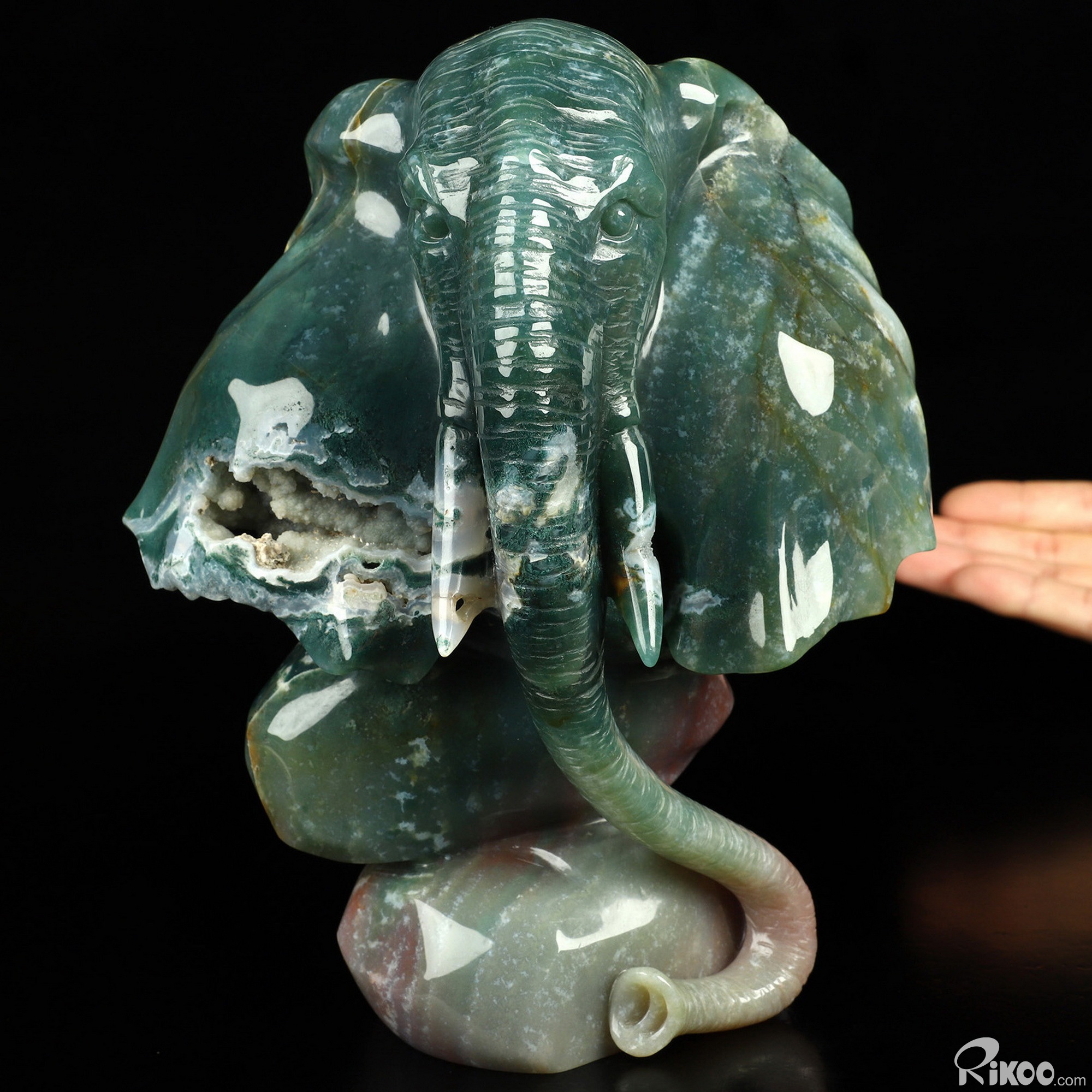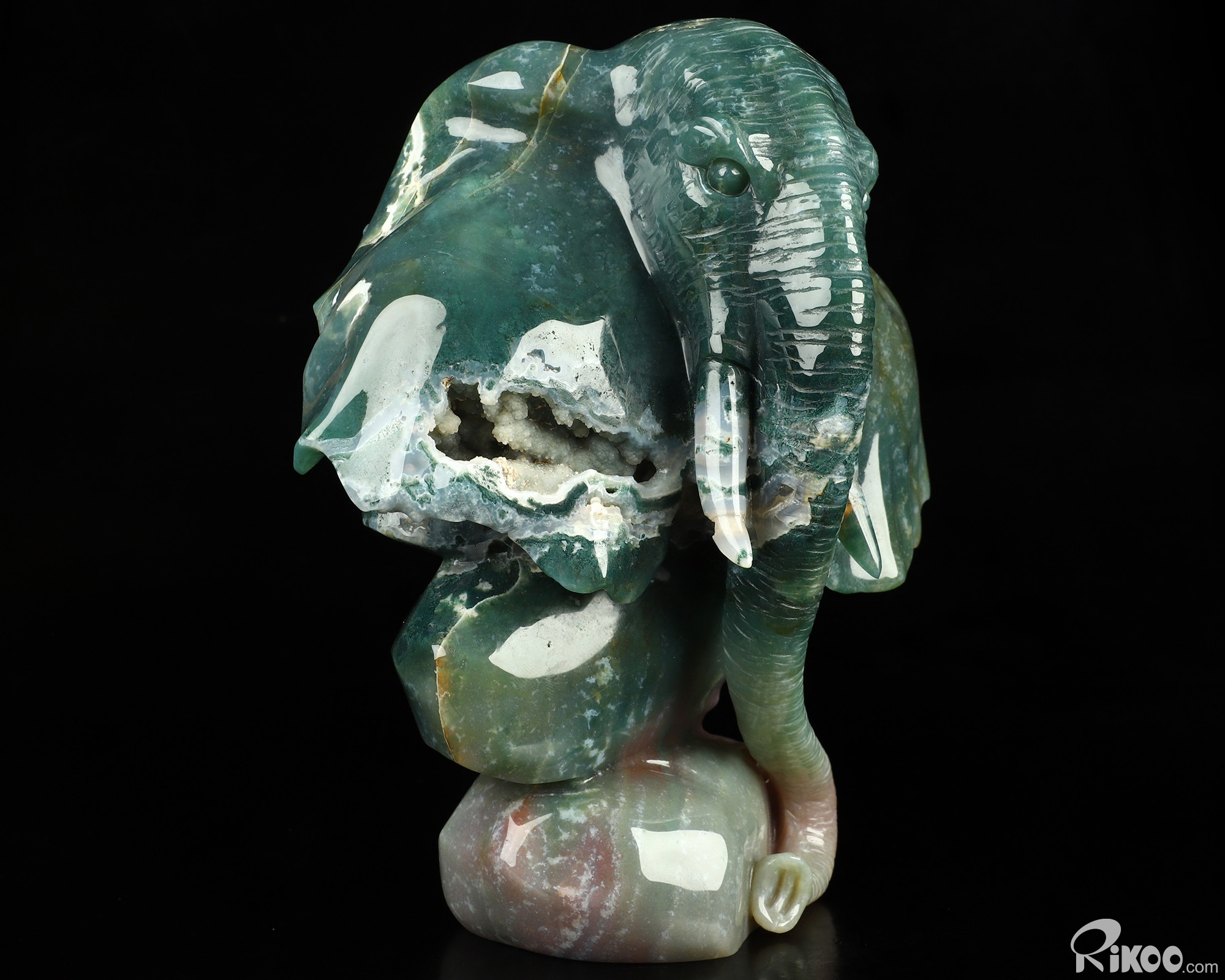 7.3" Indian Agate Geode Hand Carved Crystal Elephant Sculpture, Crystal Healing