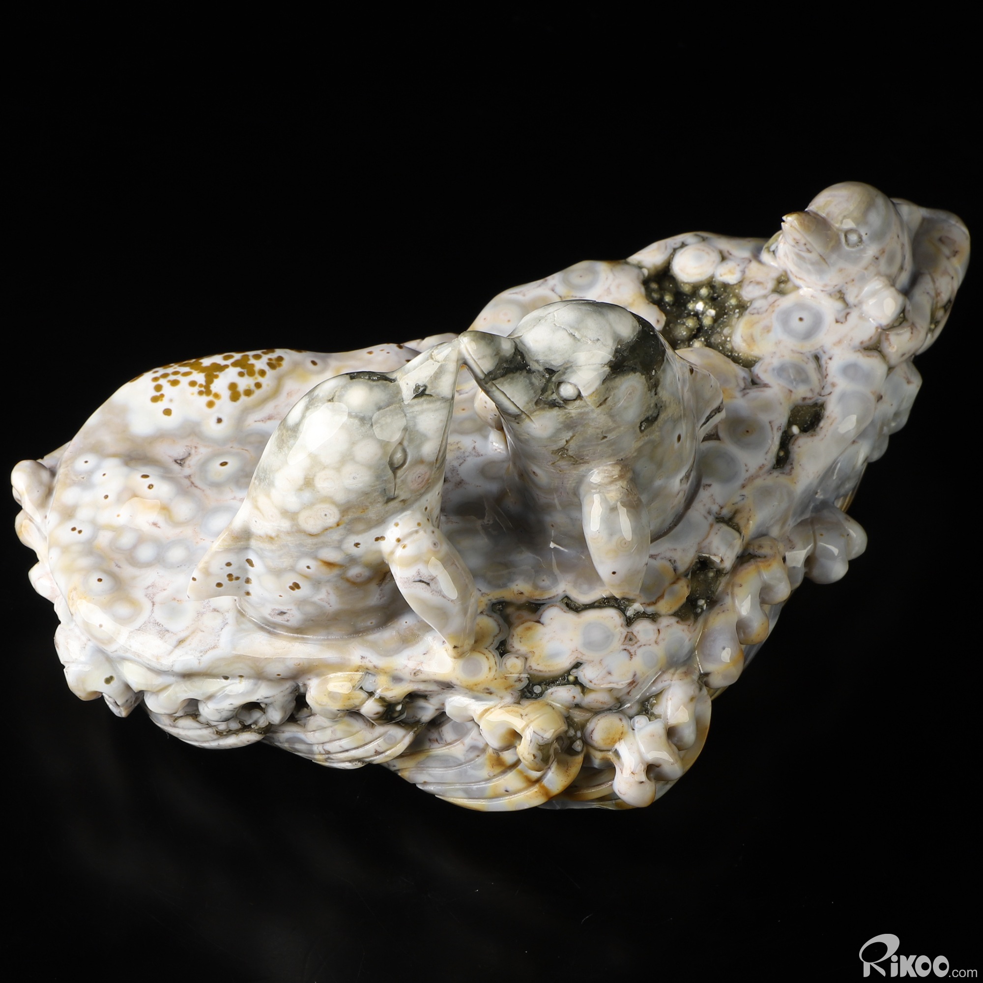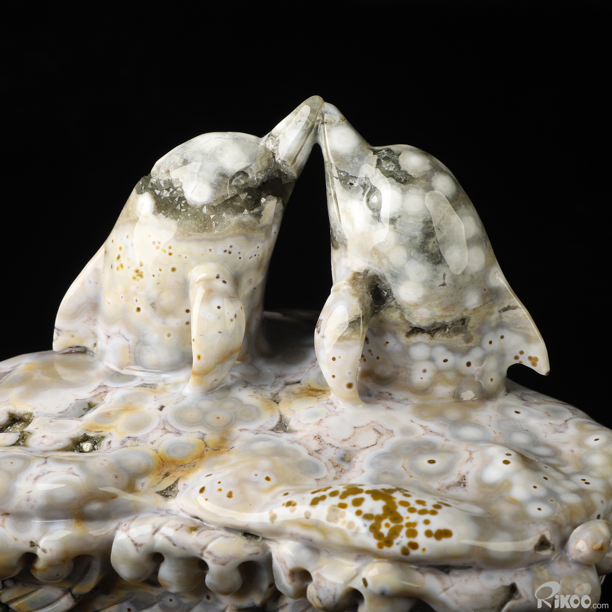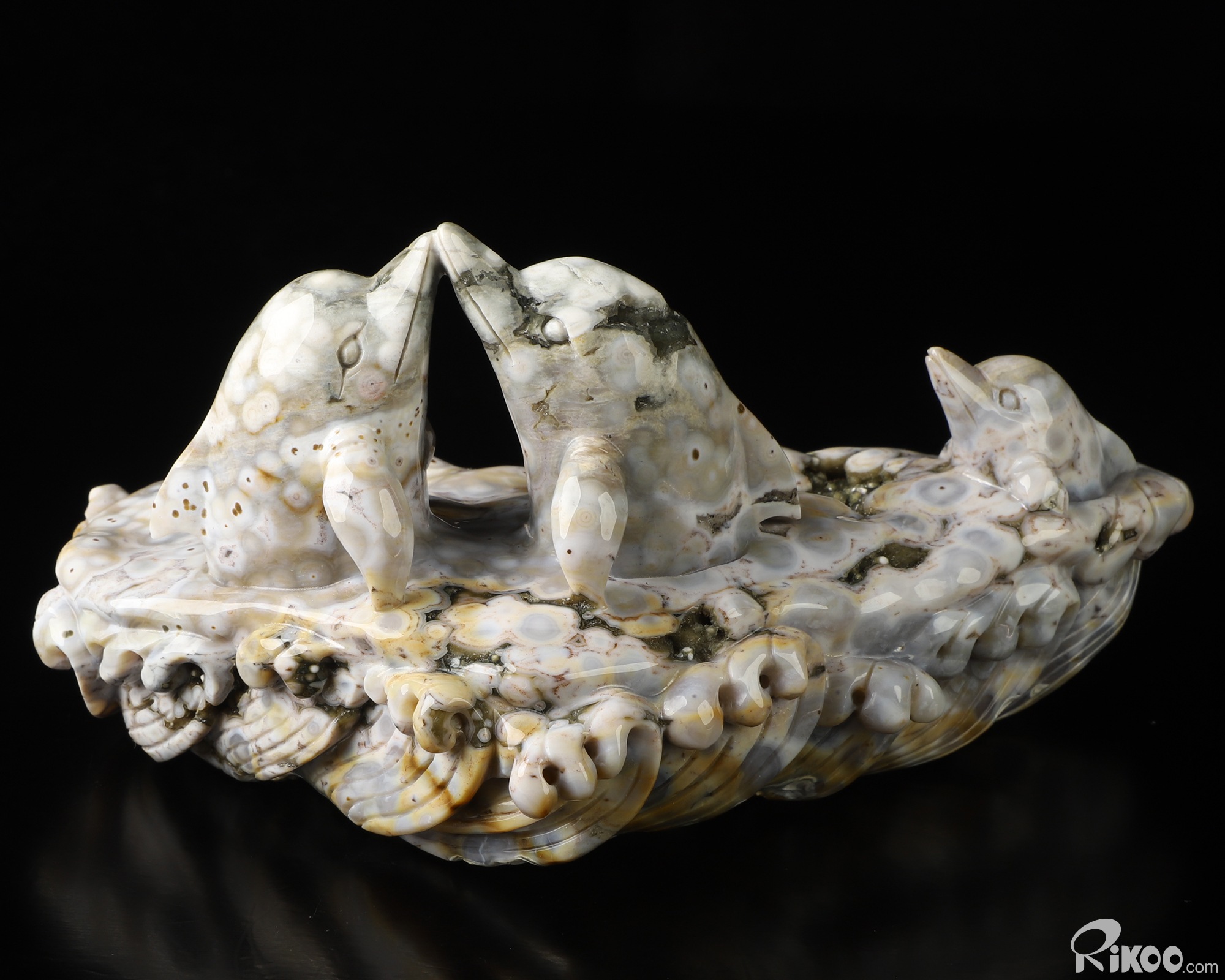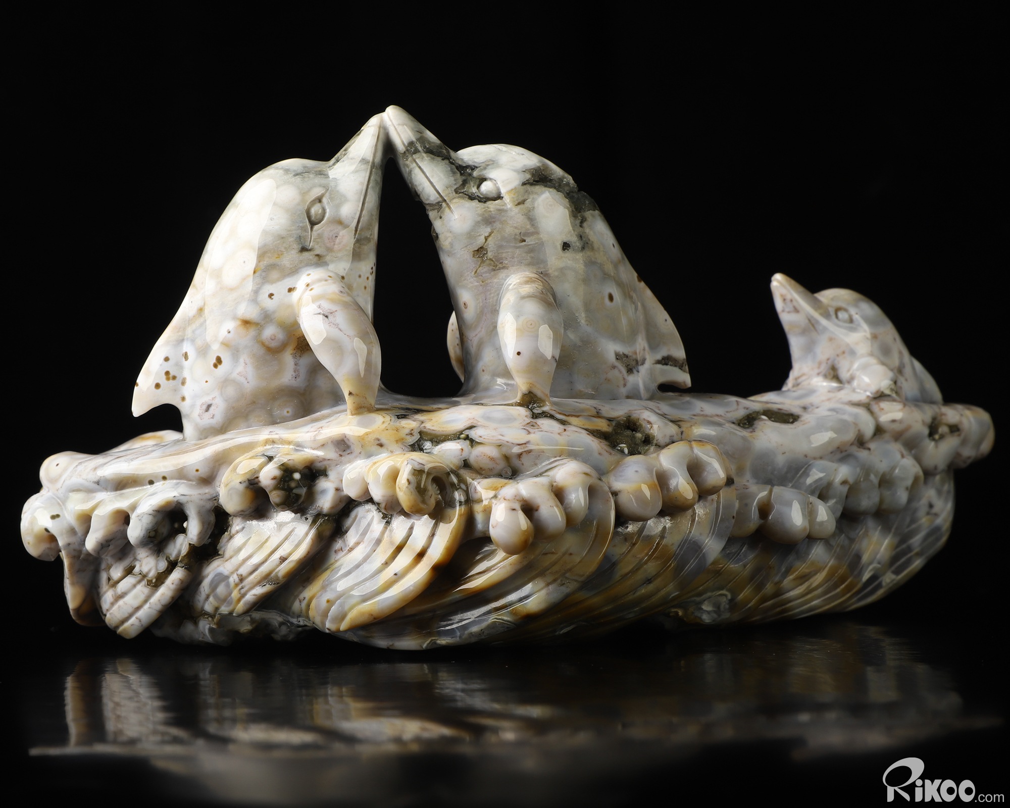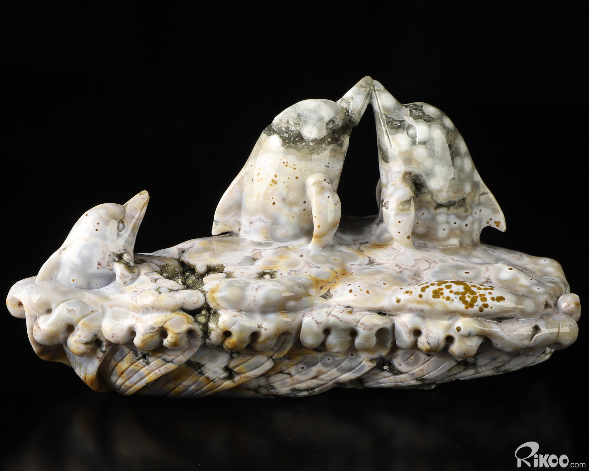 7.3" Ocean Jasper Hand Carved Crystal Dolphins Sculpture, Crystal Healing
