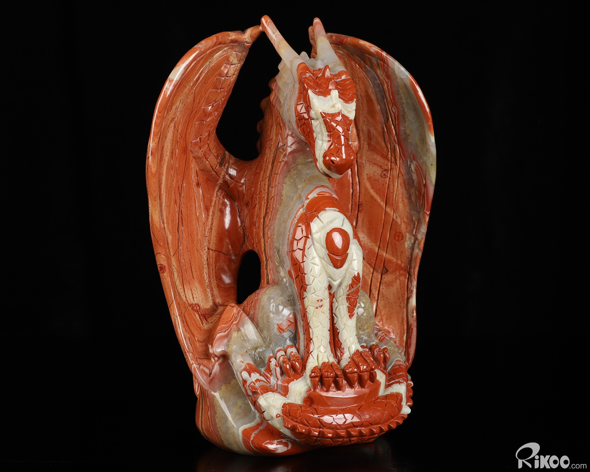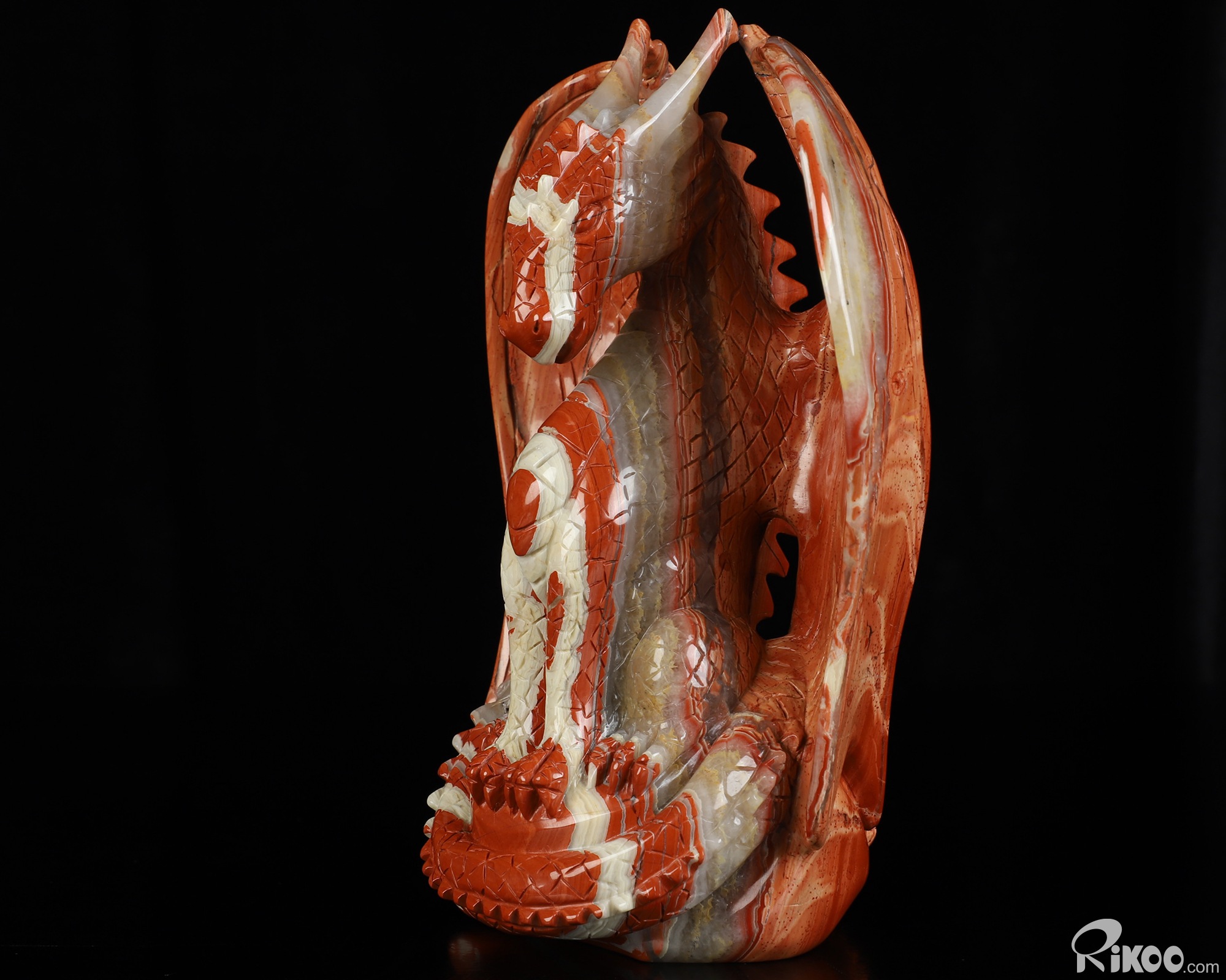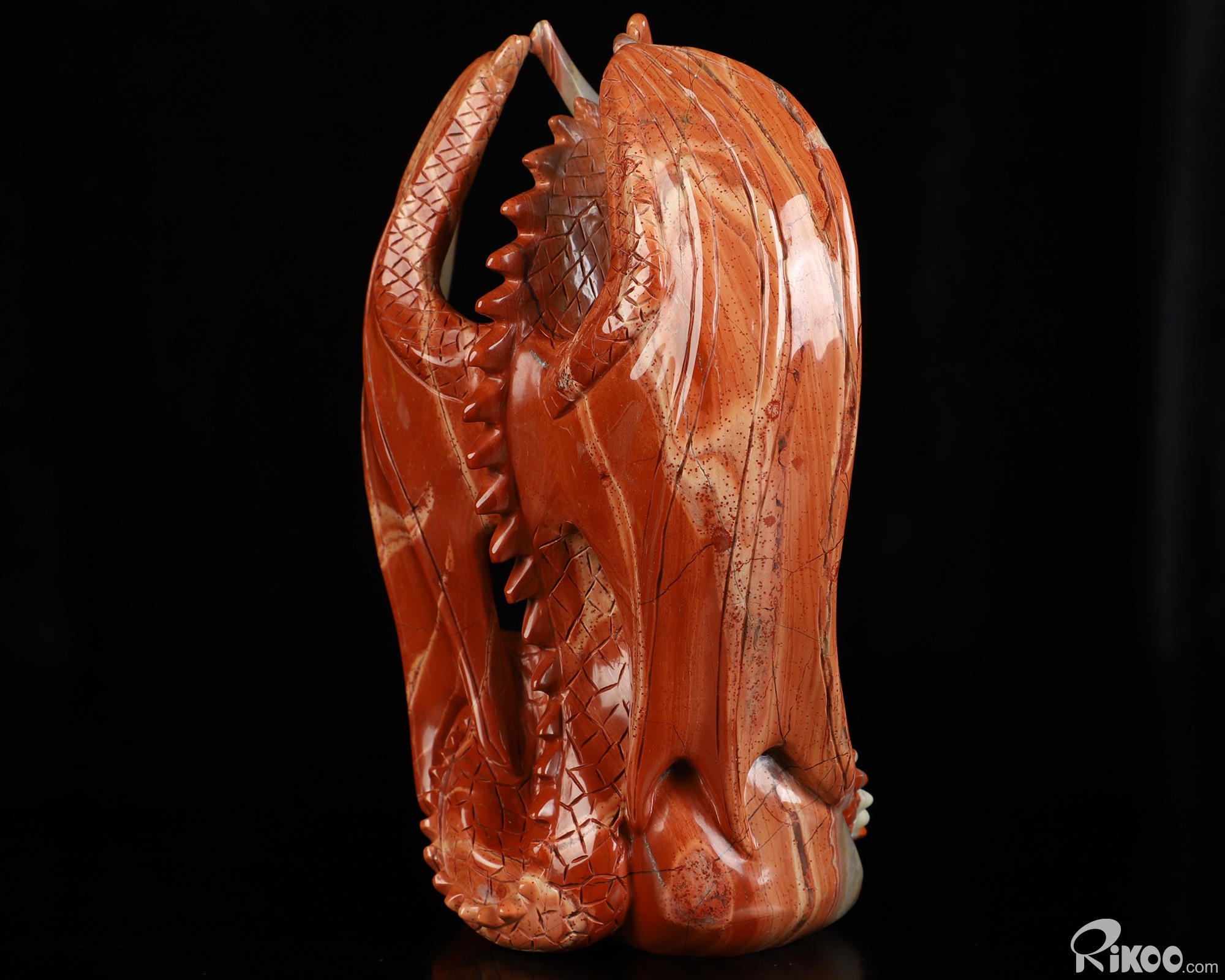 7.3" Red Jasper Hand Carved Crystal Dragon Sculpture, Crystal Healing