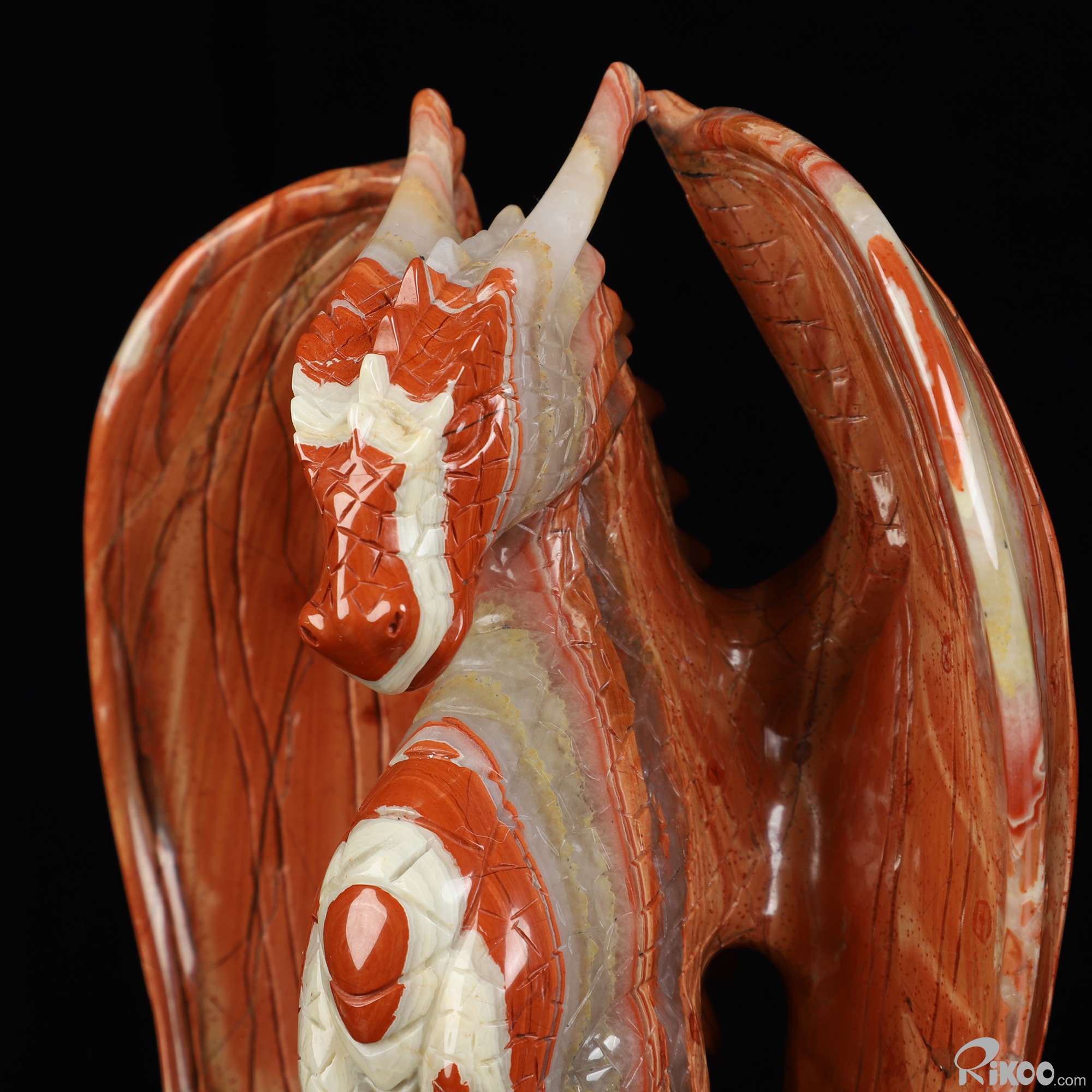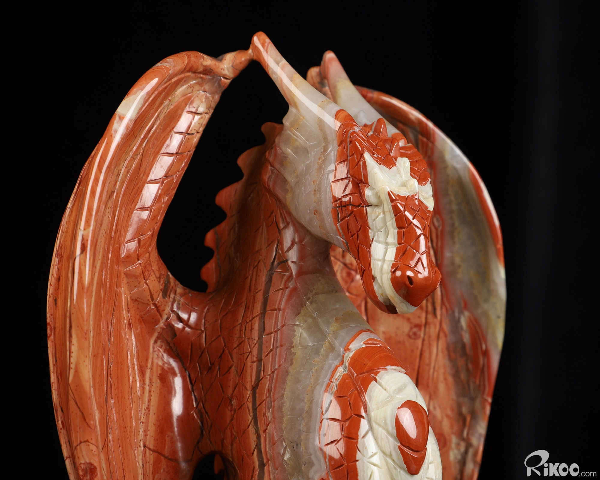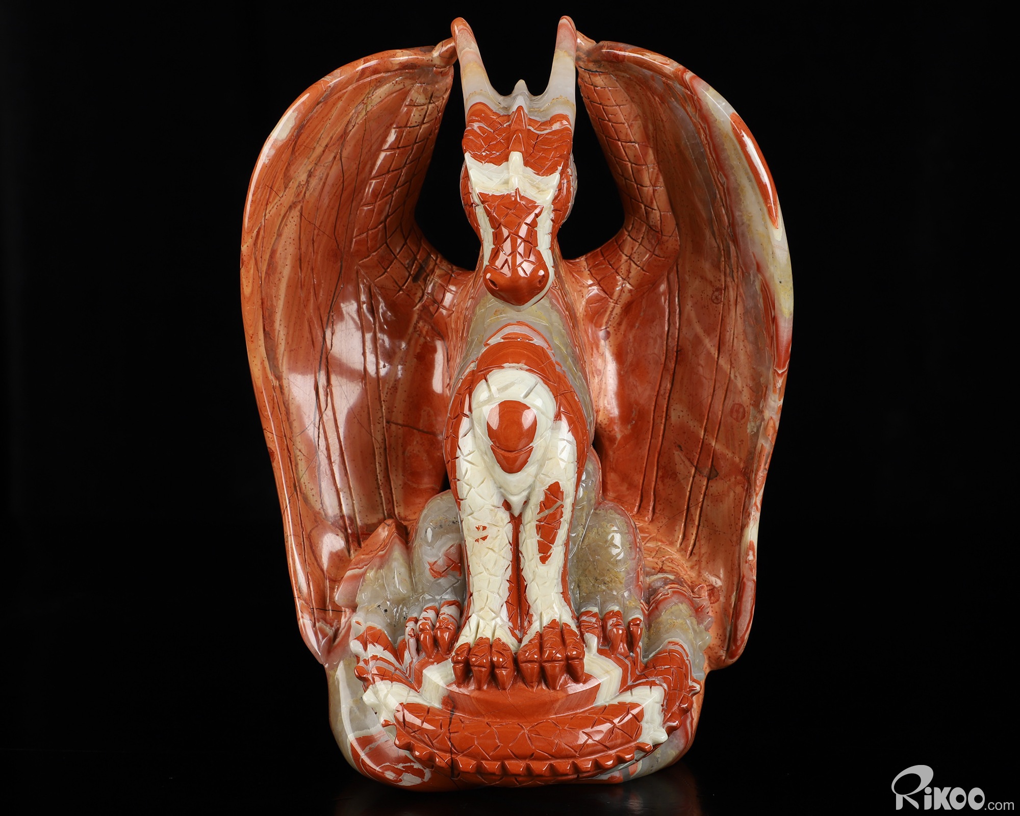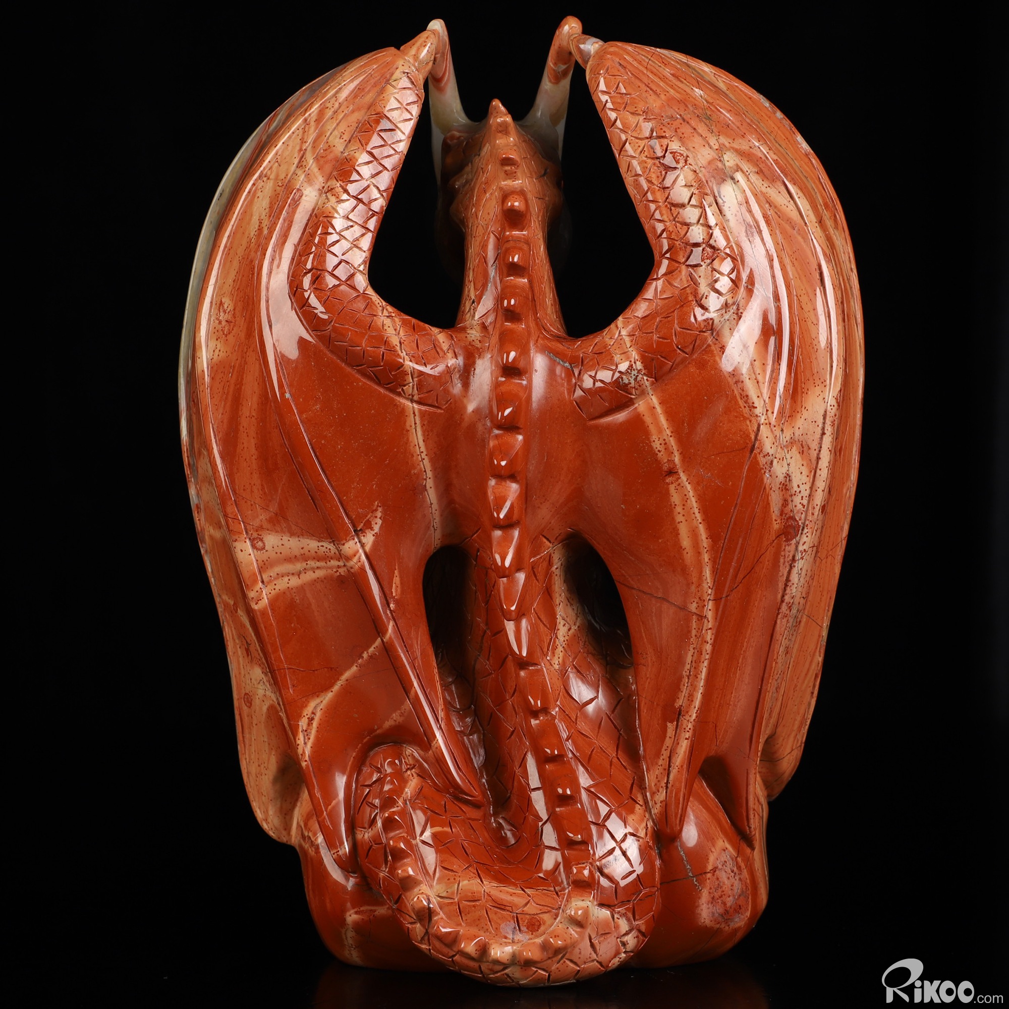 7.3" Red Jasper Hand Carved Crystal Dragon Sculpture, Crystal Healing