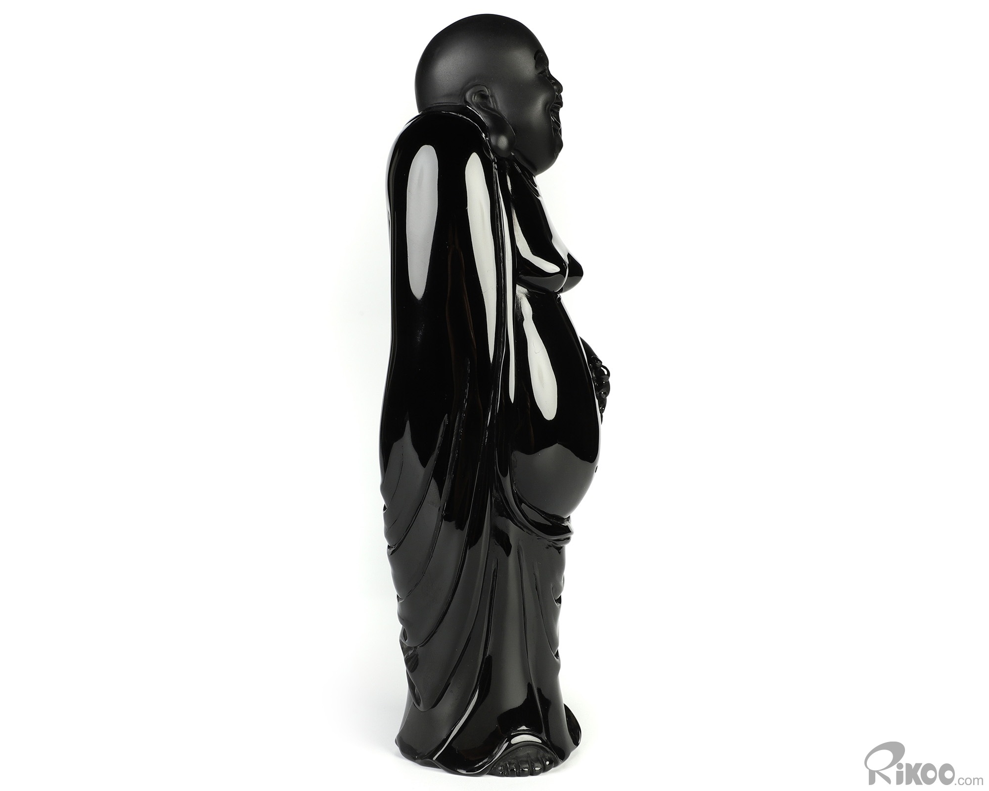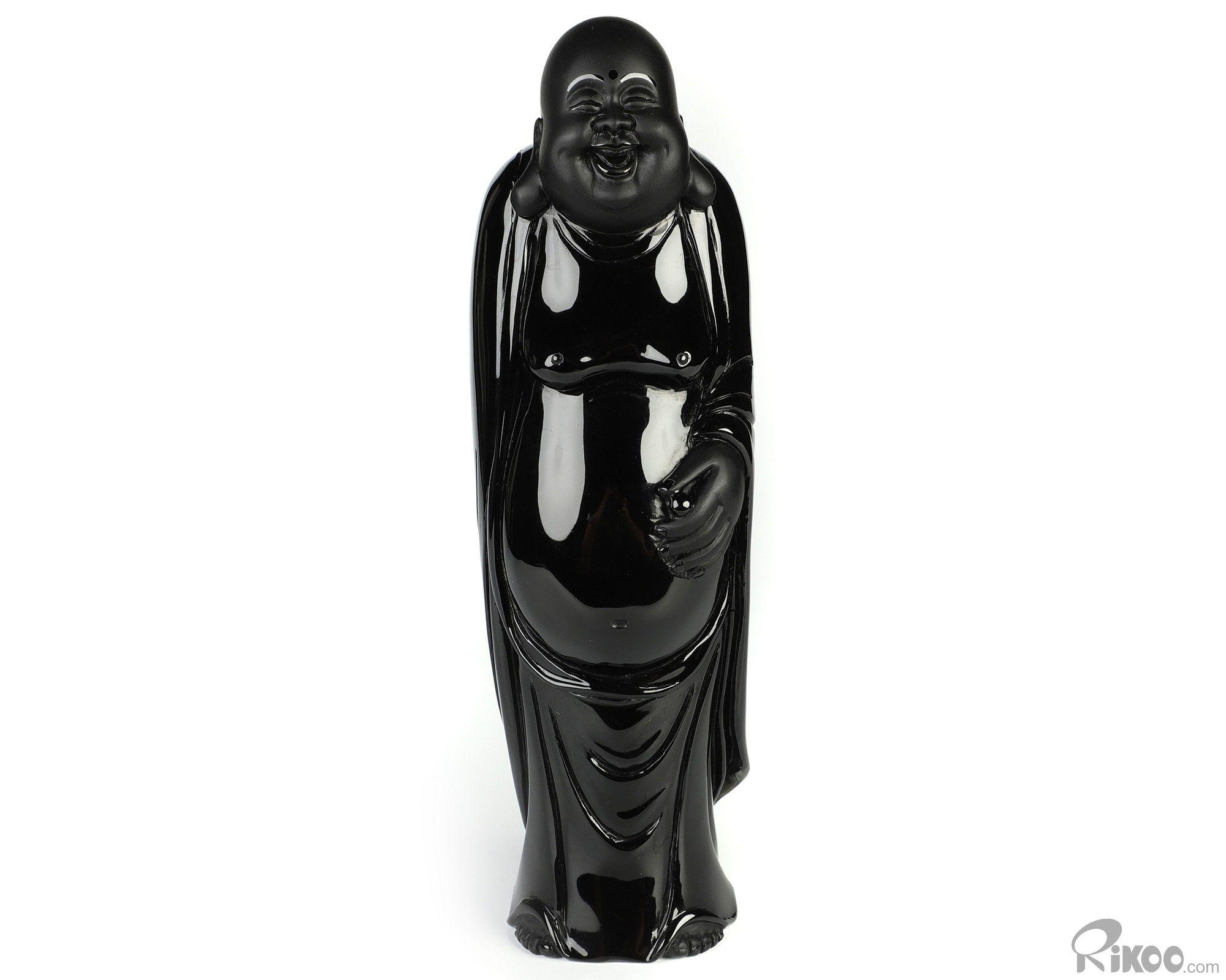 7.4" Black Obsidian Hand Carved Crystal Buddha Sculpture, Crystal Healing