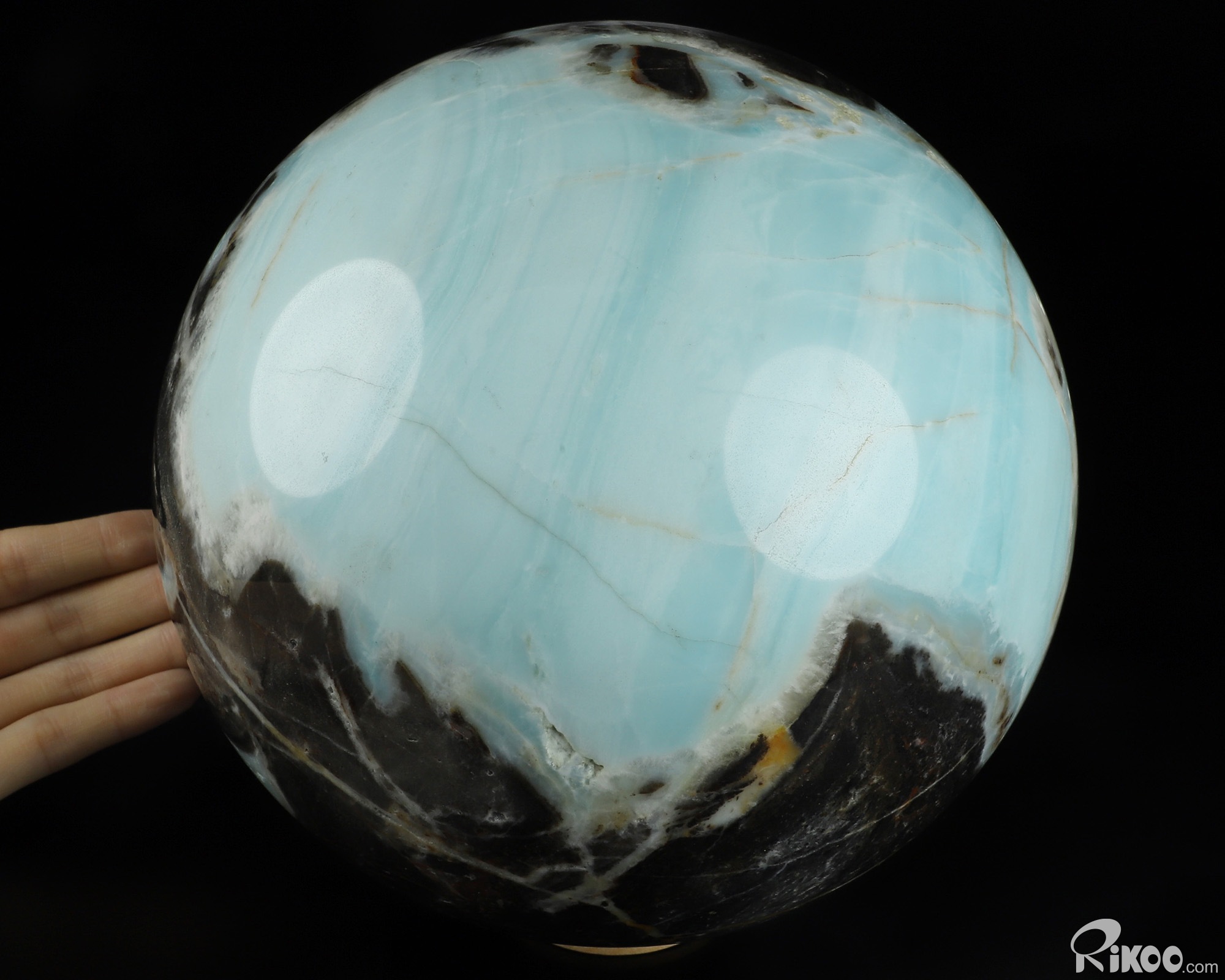 You are looking at a Chinese Amazonite Ball. The Ball is 7.4 inches long from front to back.