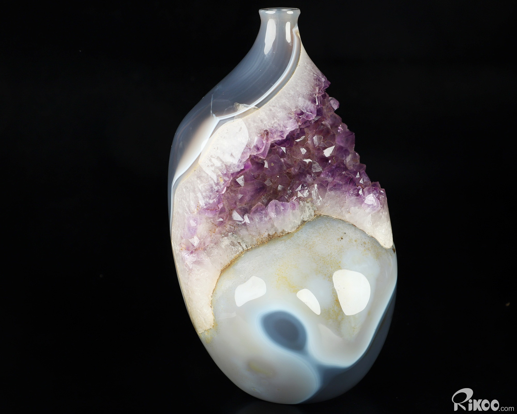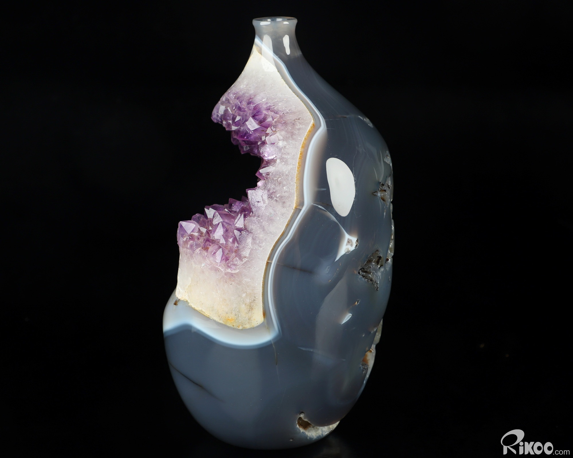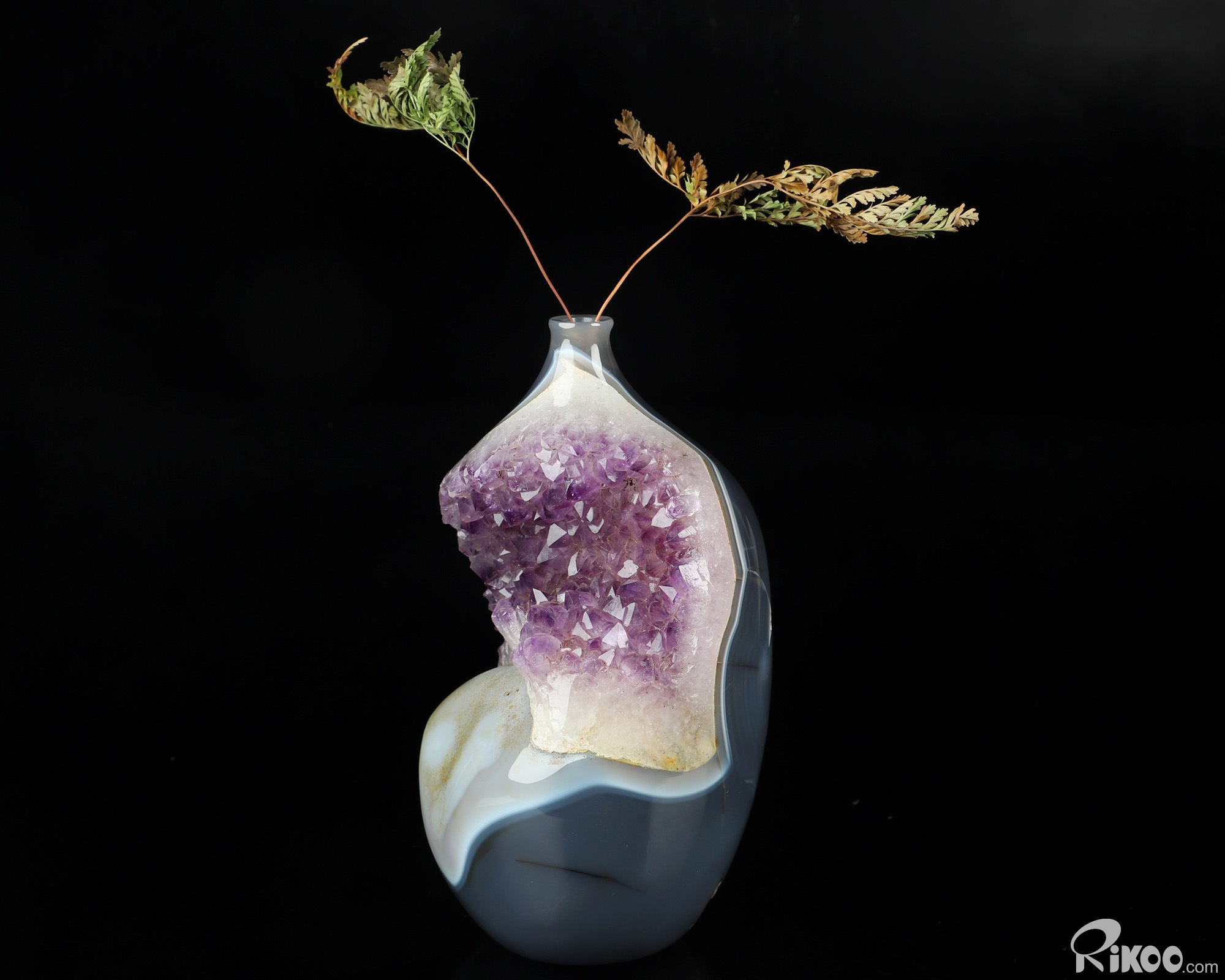 7.5" Agate Amethyst Druse Hand Carved Crystal Vase Sculpture, Crystal Healing