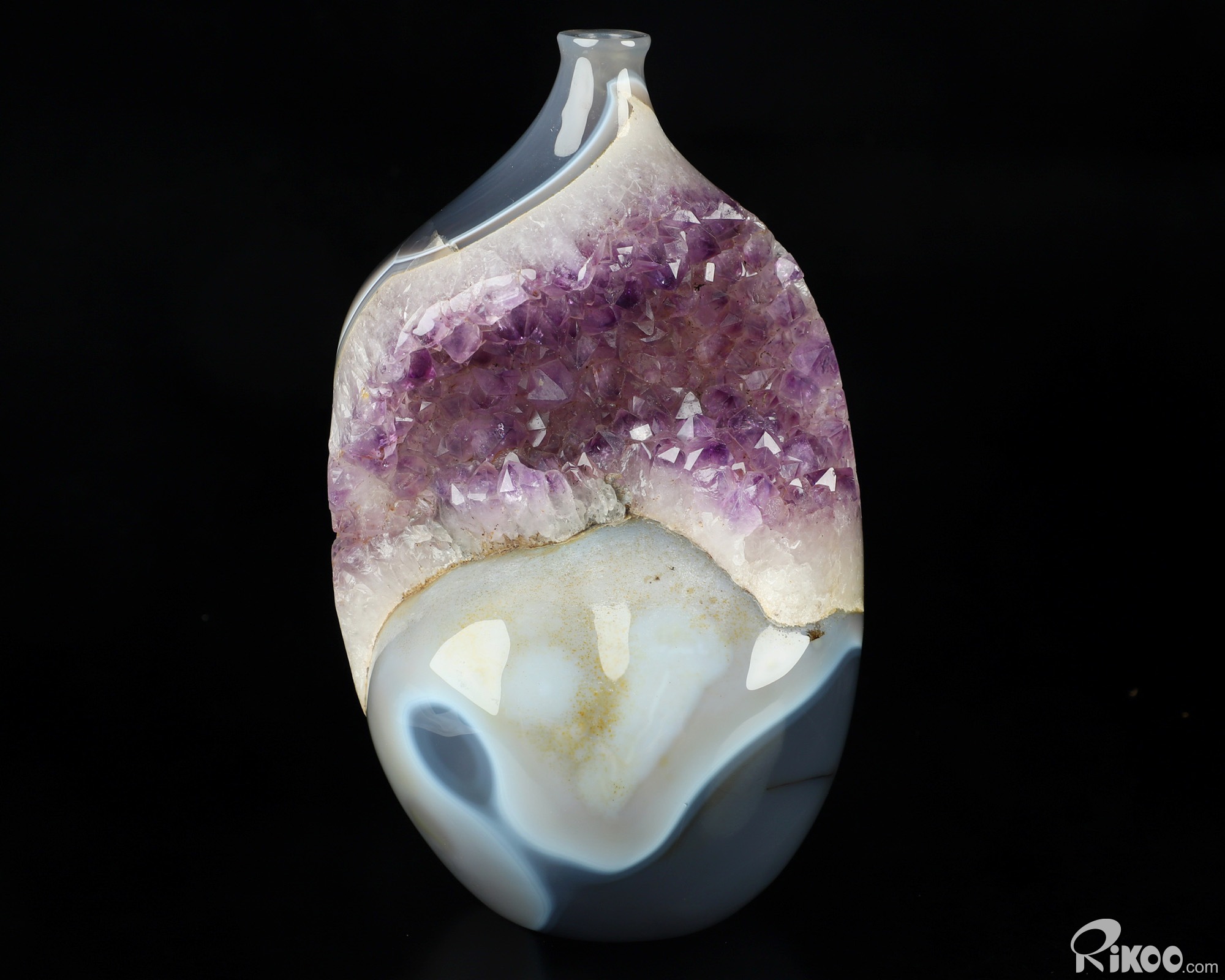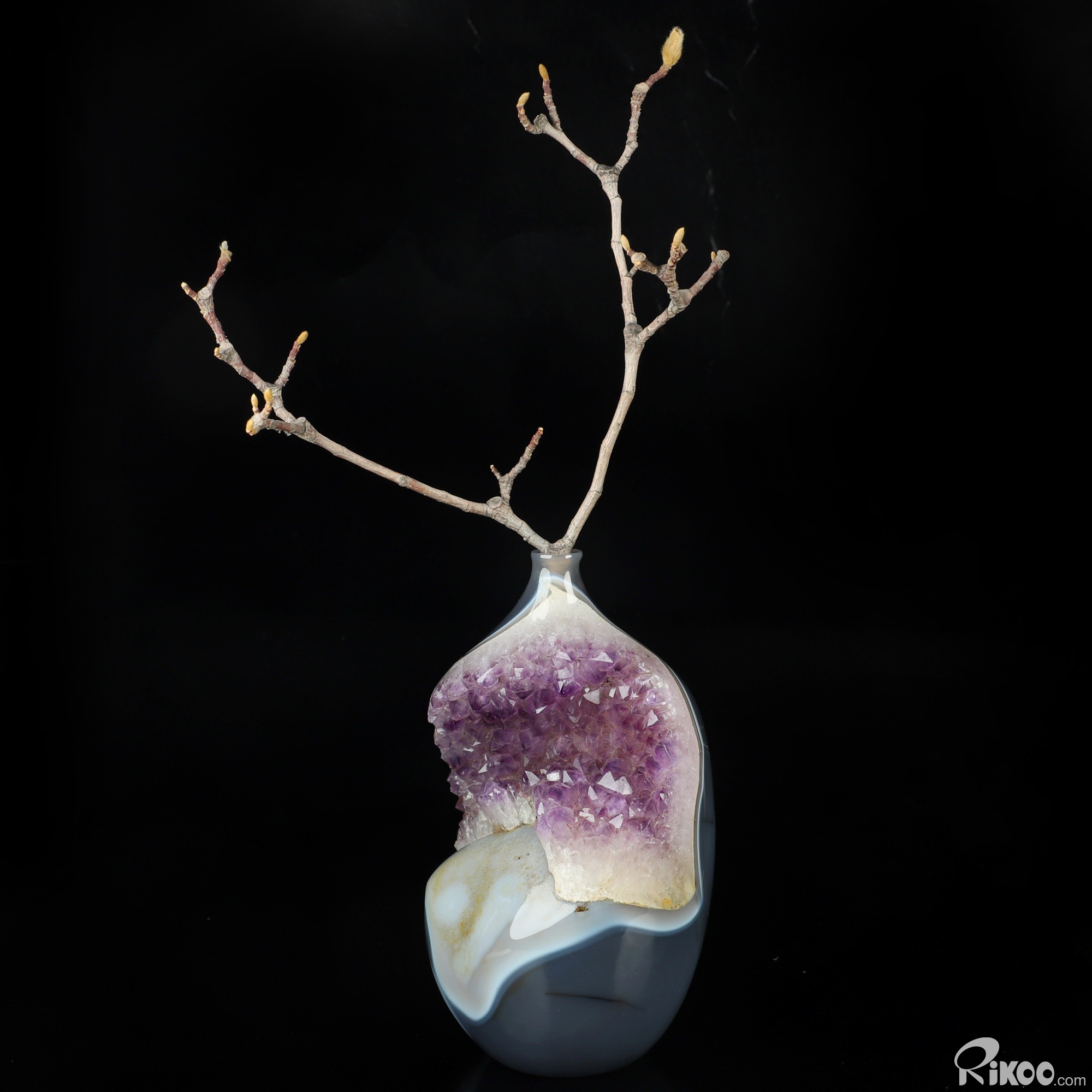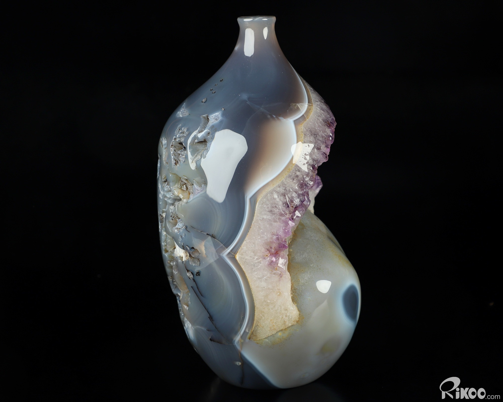 7.5" Agate Amethyst Druse Hand Carved Crystal Vase Sculpture, Crystal Healing
