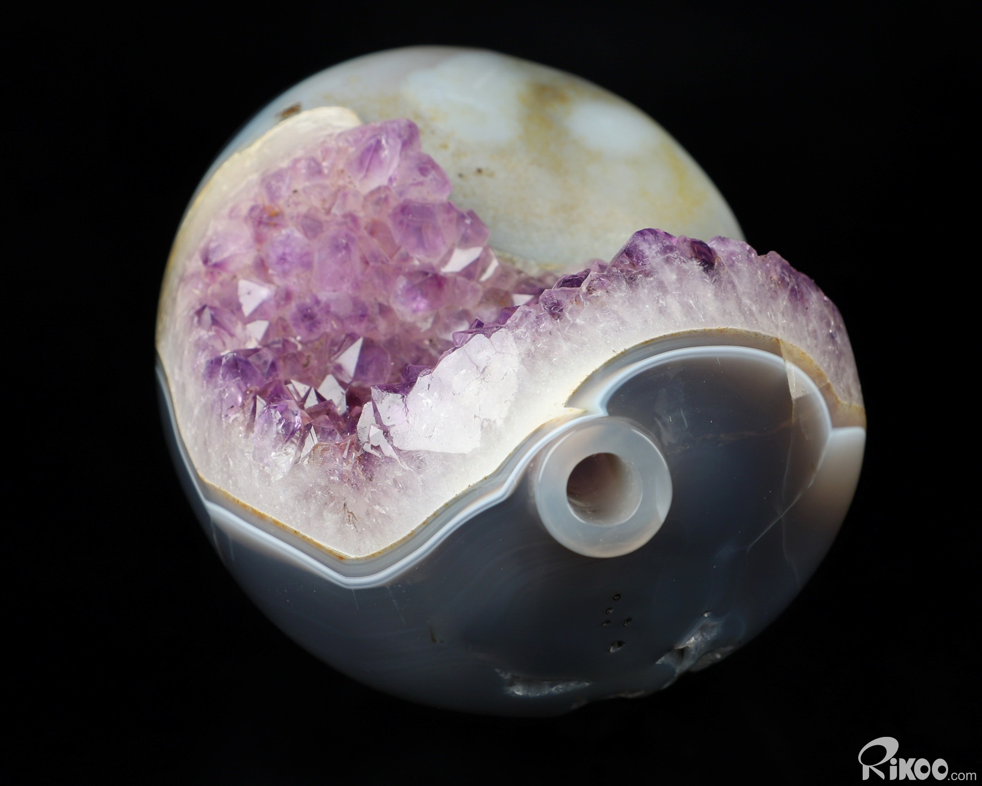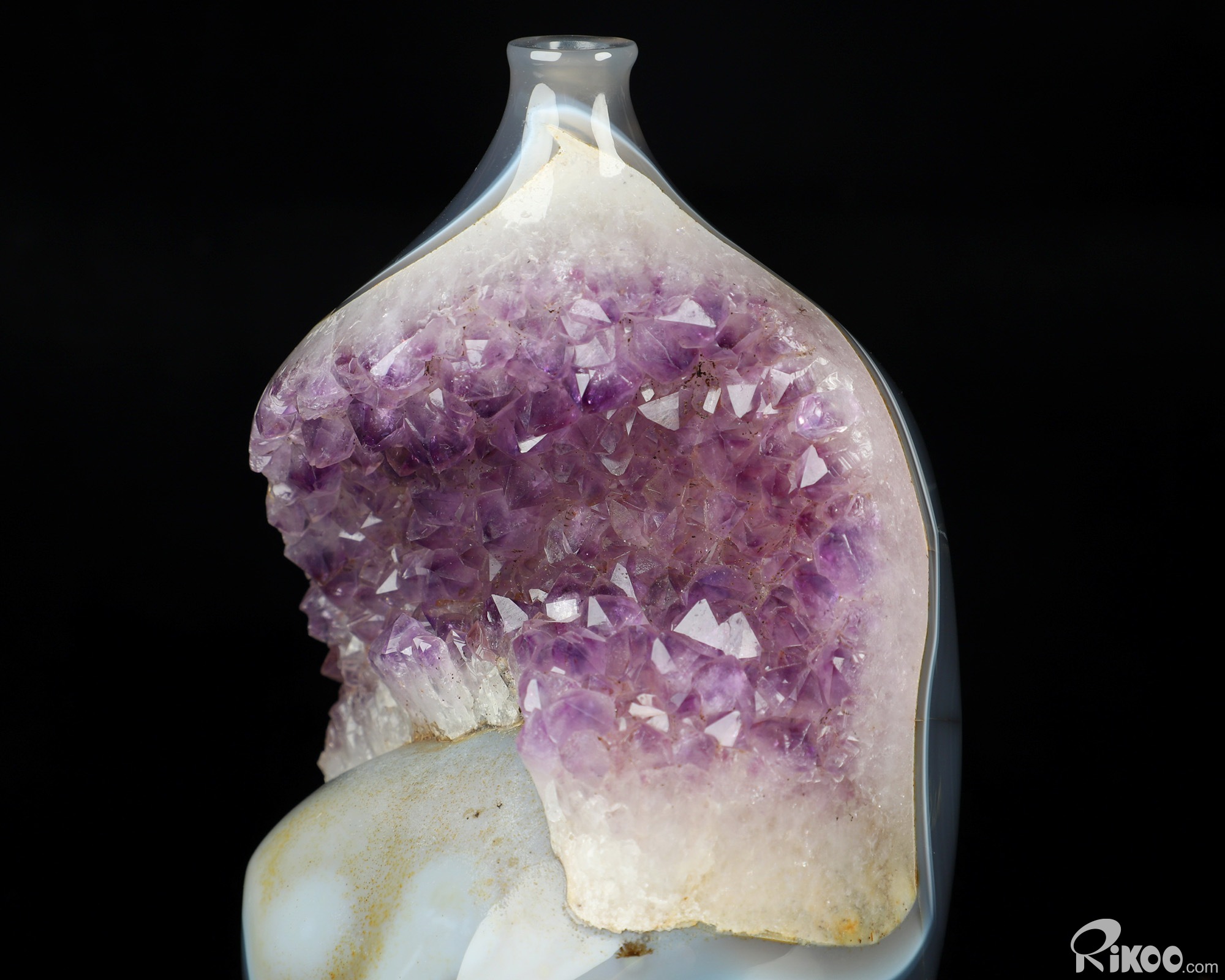 You are looking at a Agate Amethyst Druse sculpture. The sculpture is 7.5 inches long.