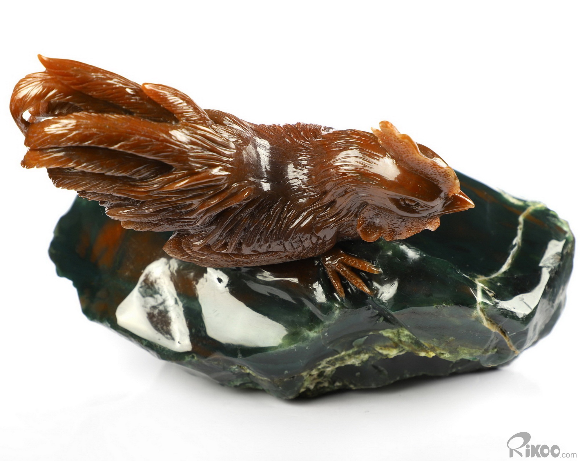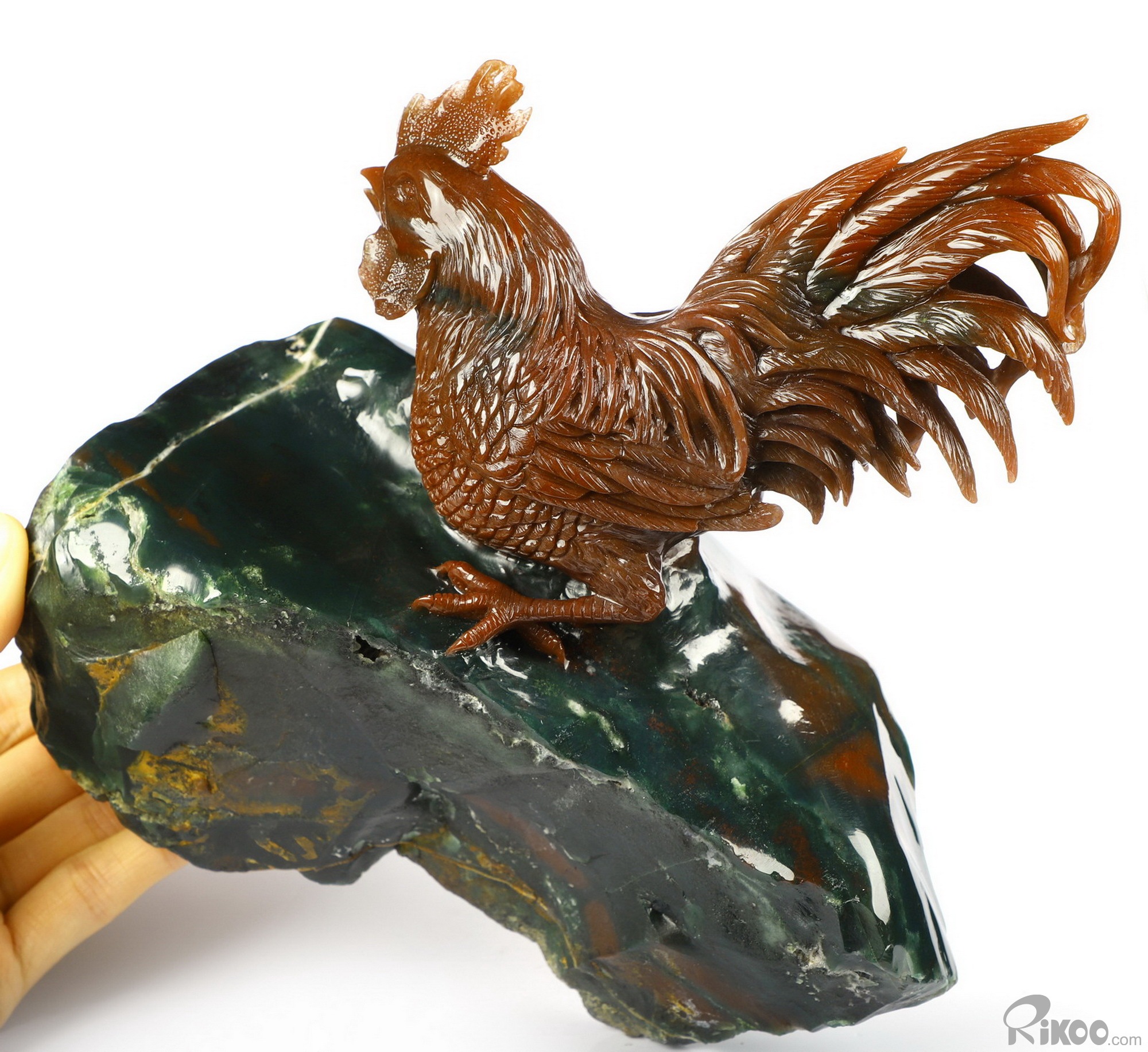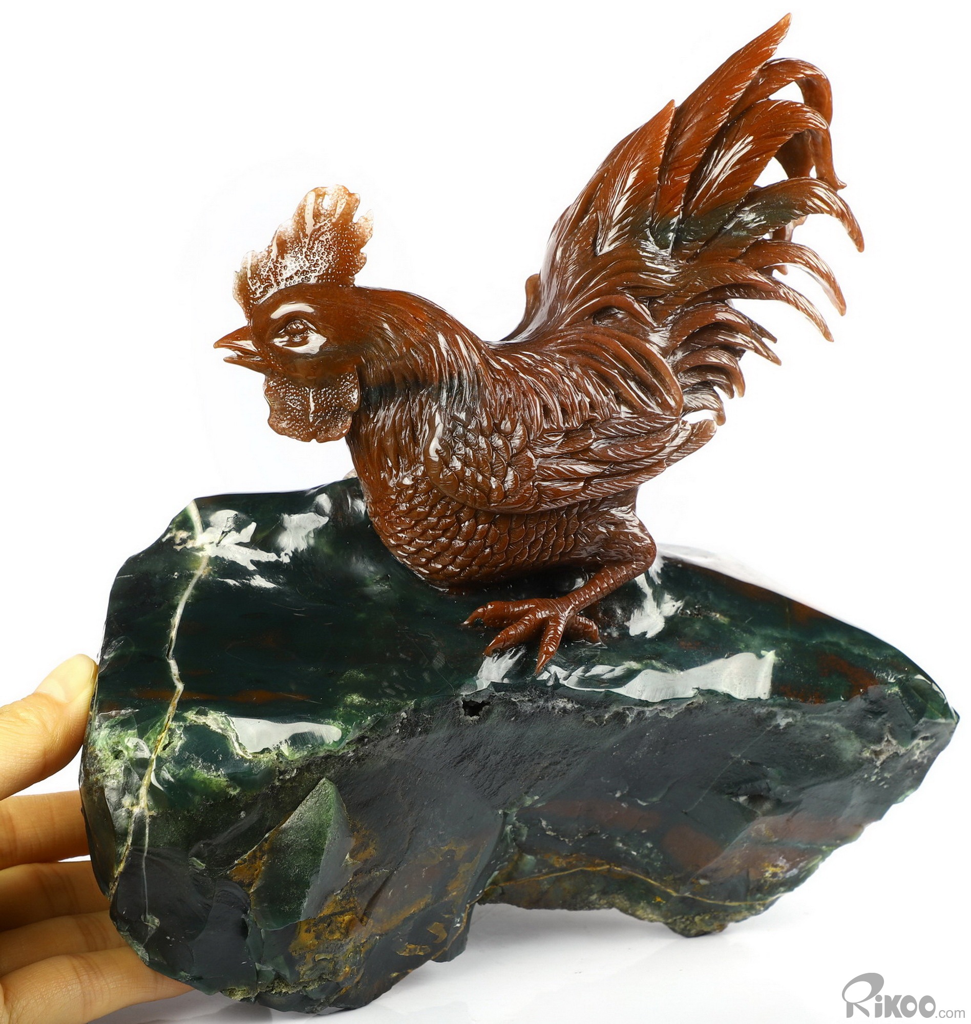 7.5" Bloodstone Carved Gemstone Crystal Cock Super realistic, Crystal Healing