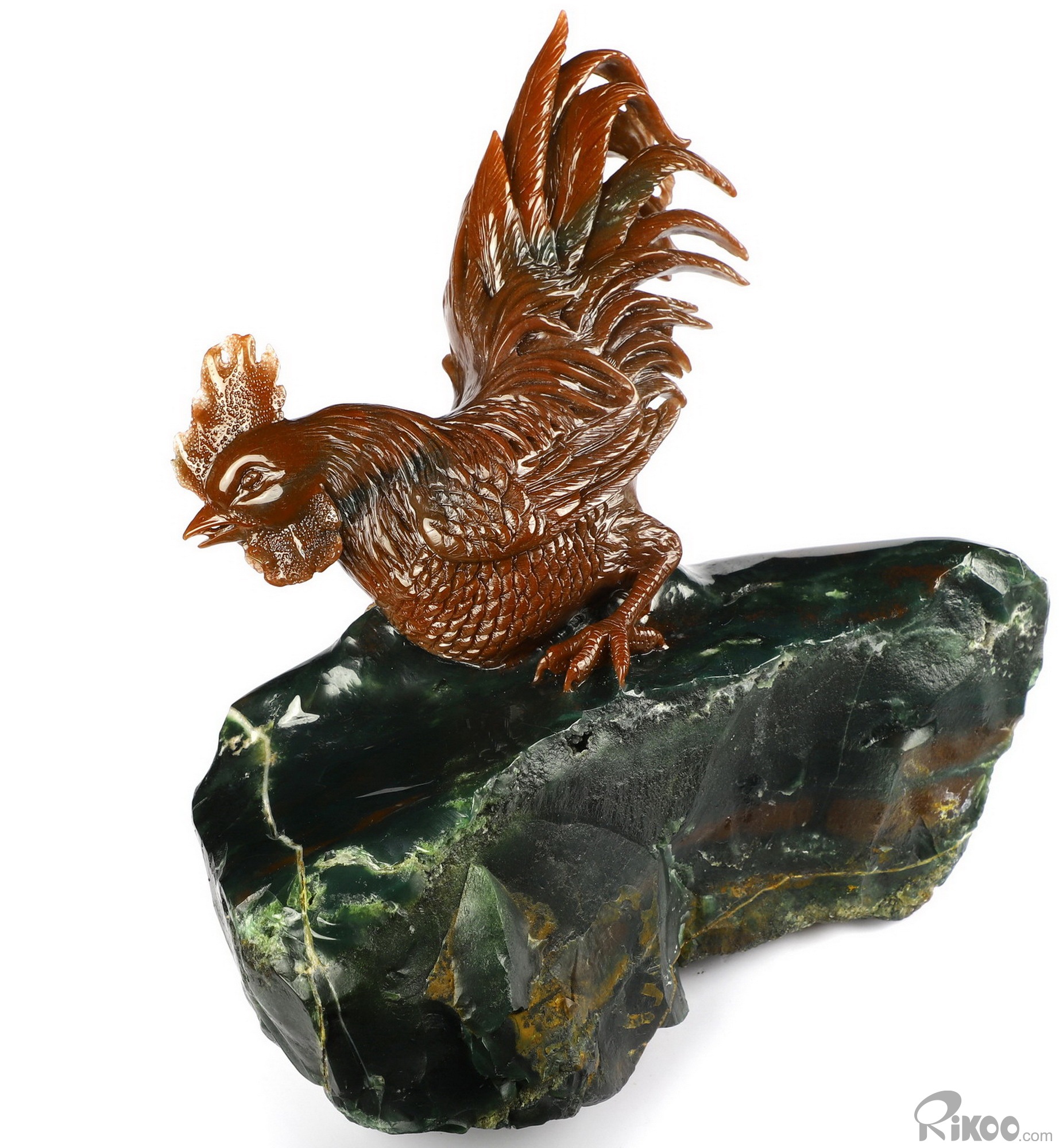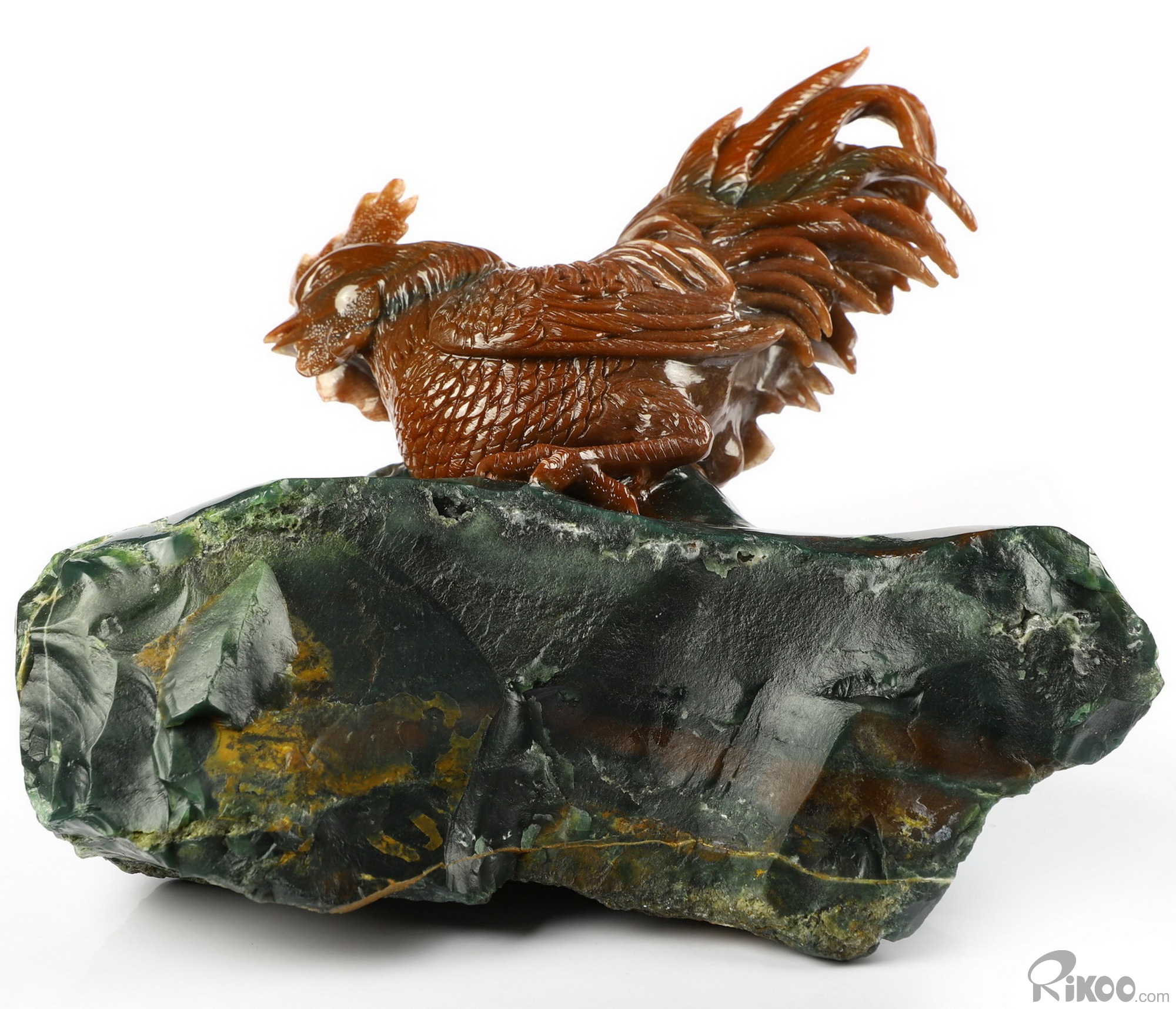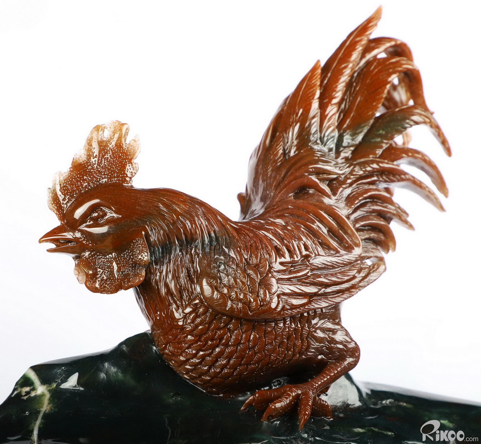 7.5" Bloodstone Carved Gemstone Crystal Cock Super realistic, Crystal Healing