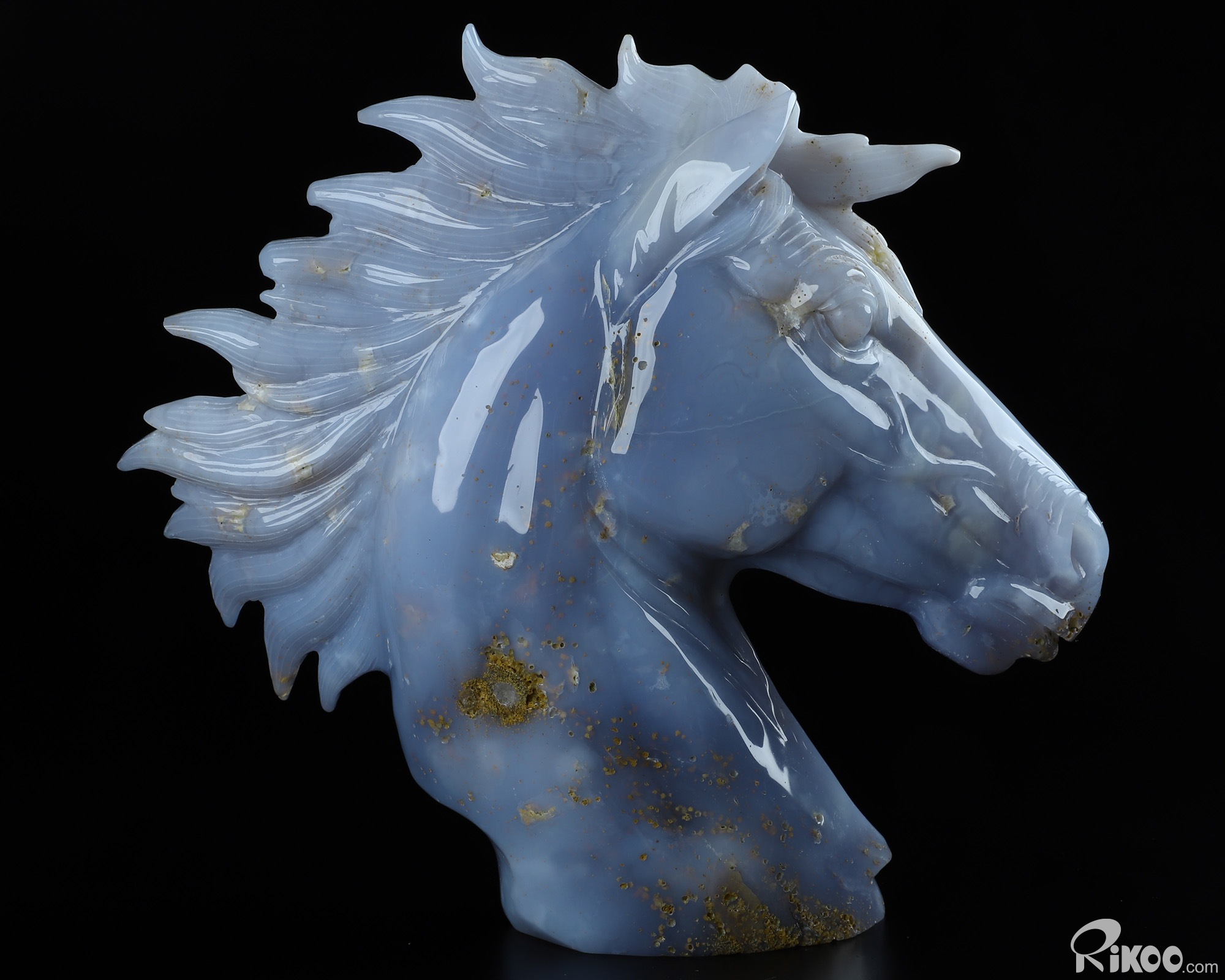 7.5" Blue Chalcedony Carved Crystal Horse Sculpture, Crystal Healing