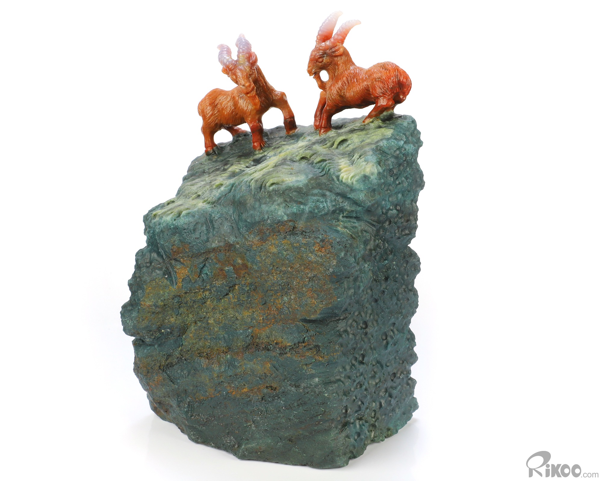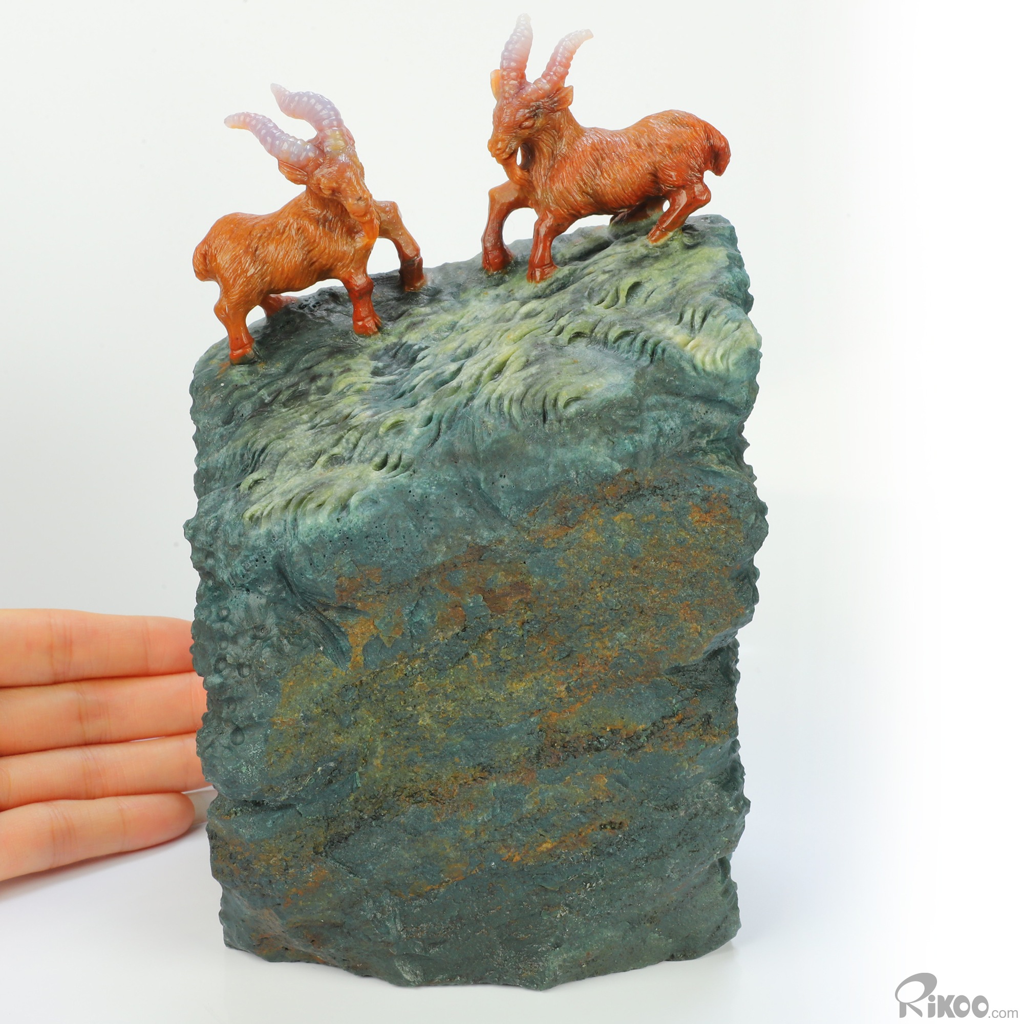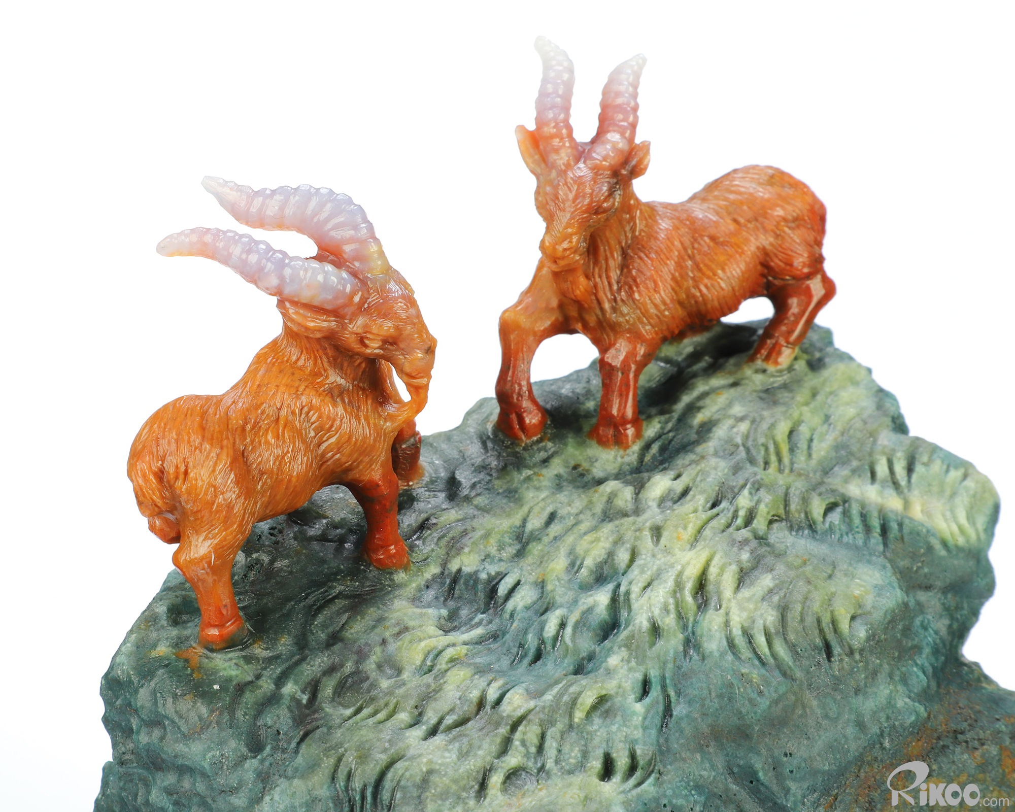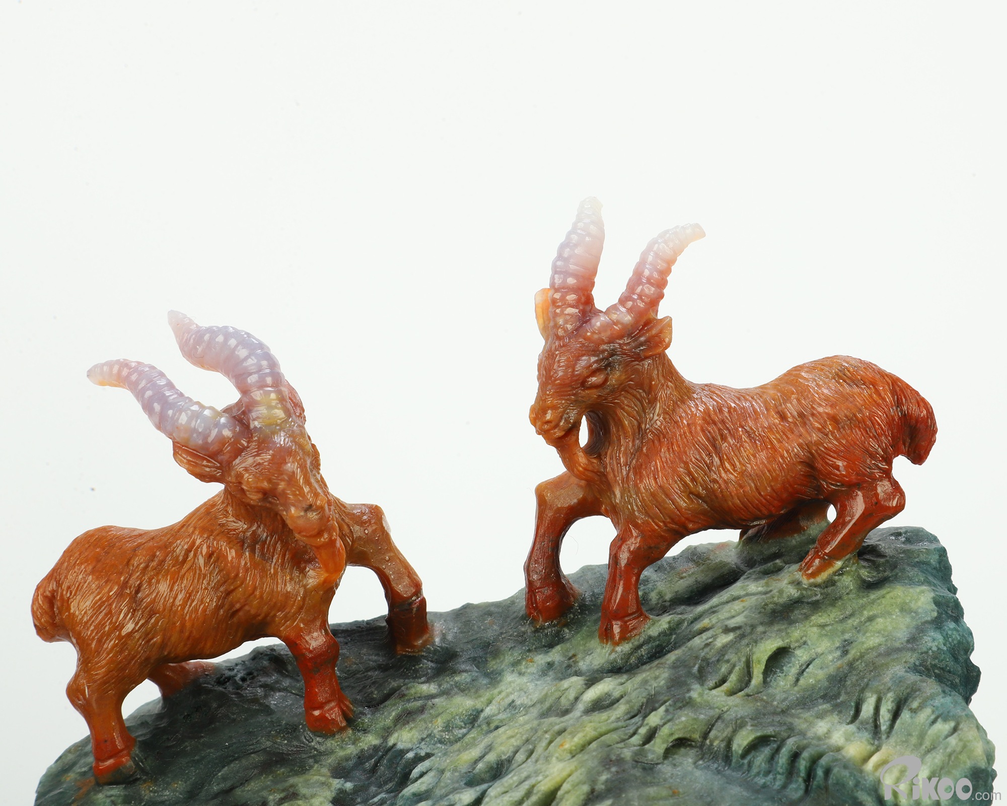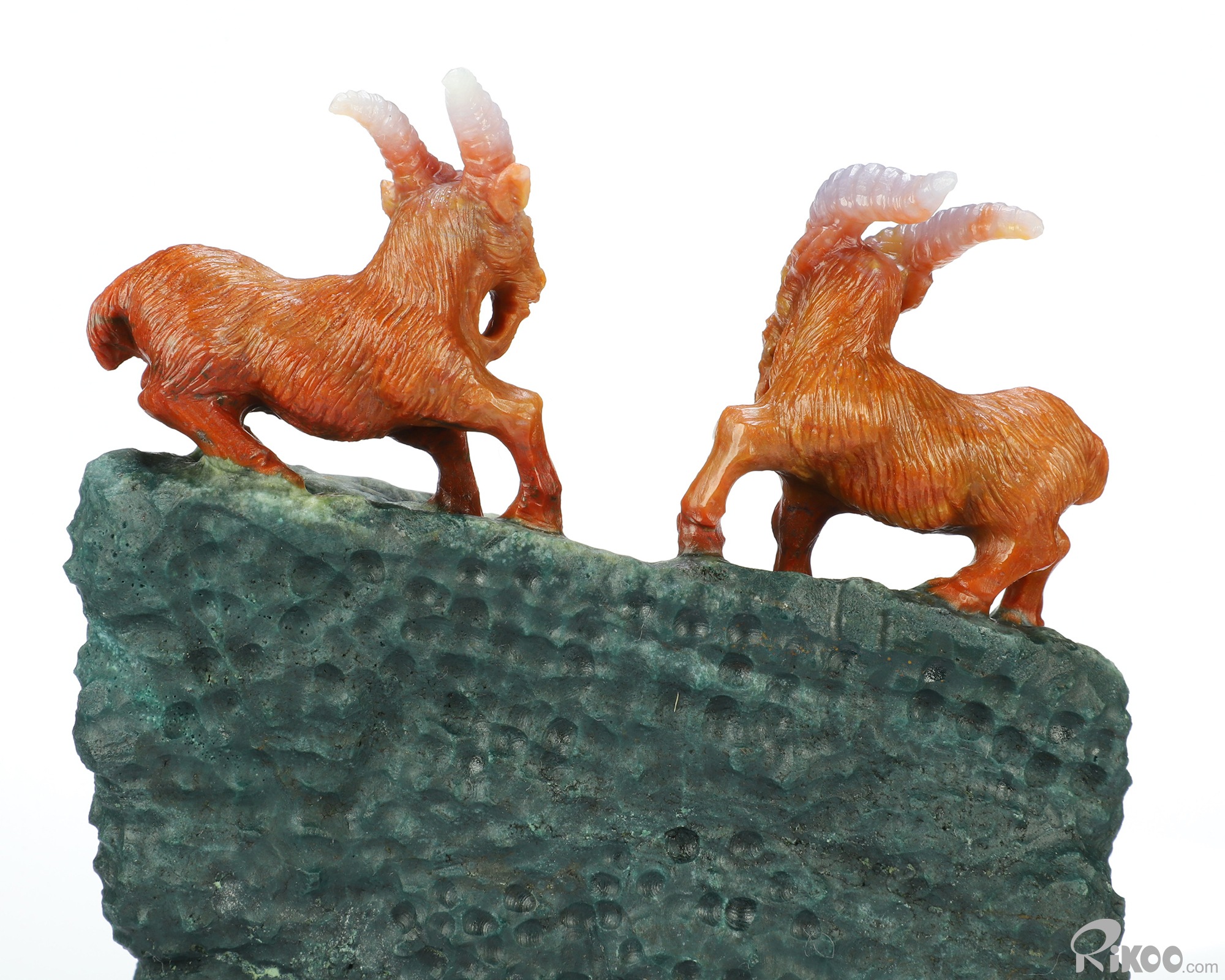 You are looking at an Indian Agate Goat sculpture. The sculpture is 7.5 inches long.