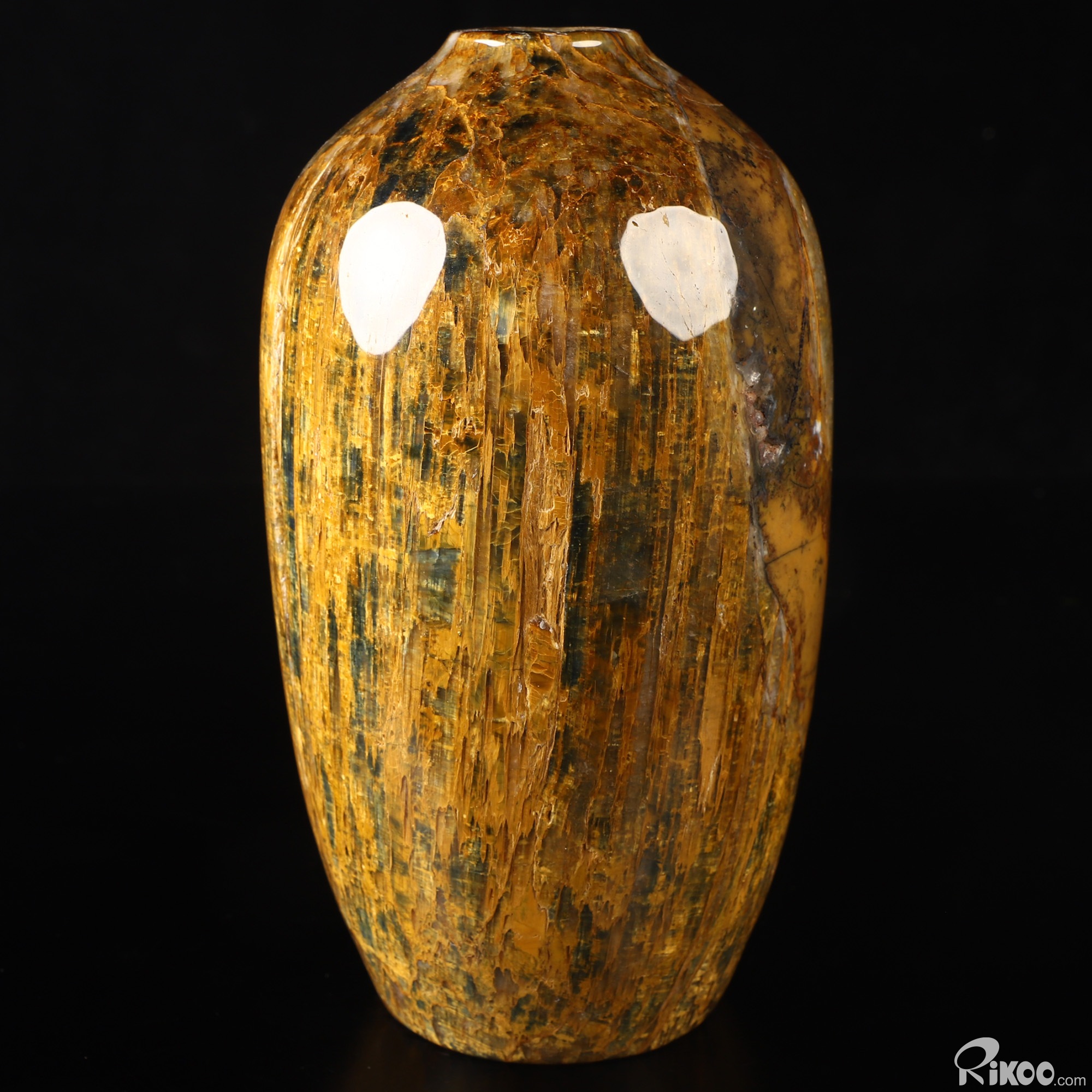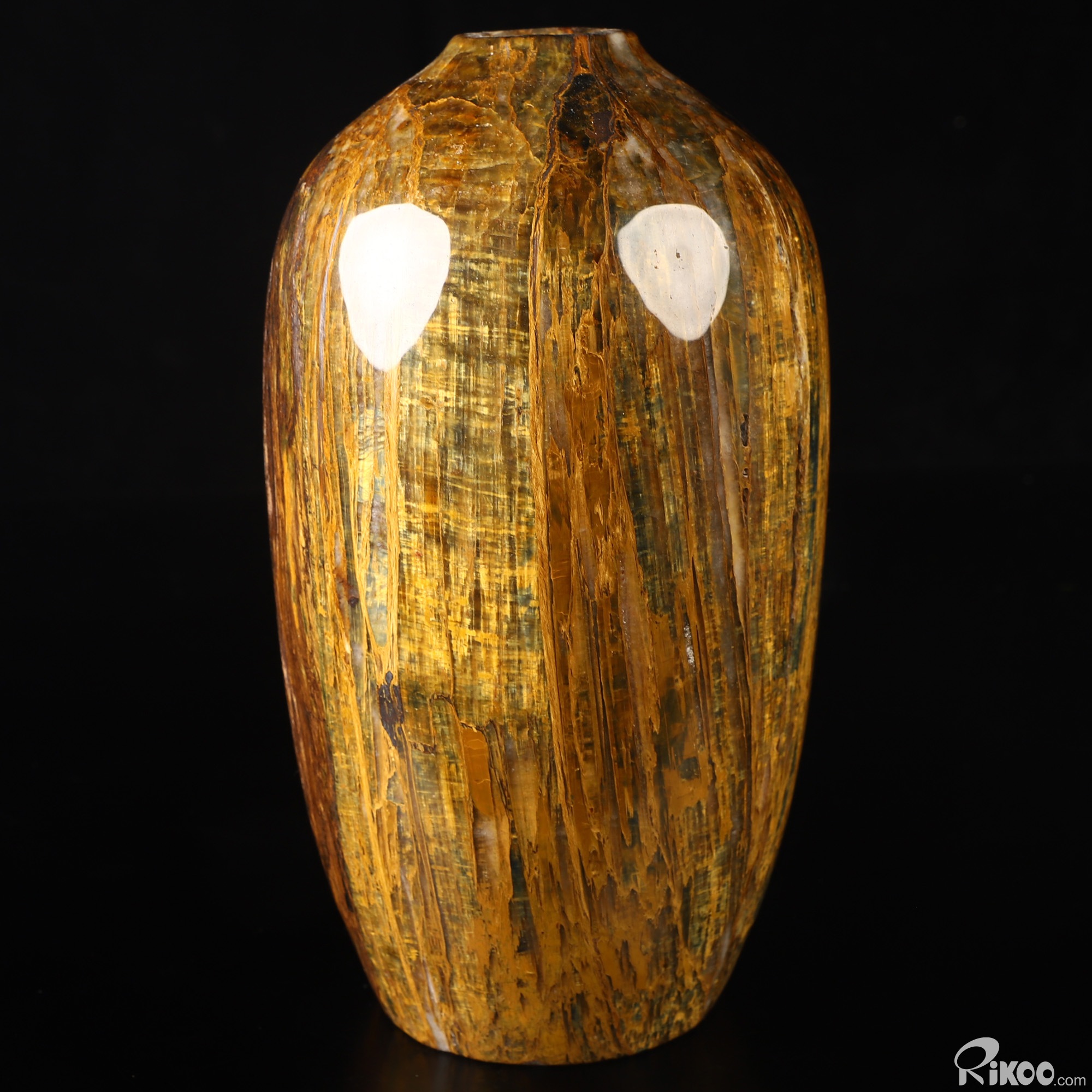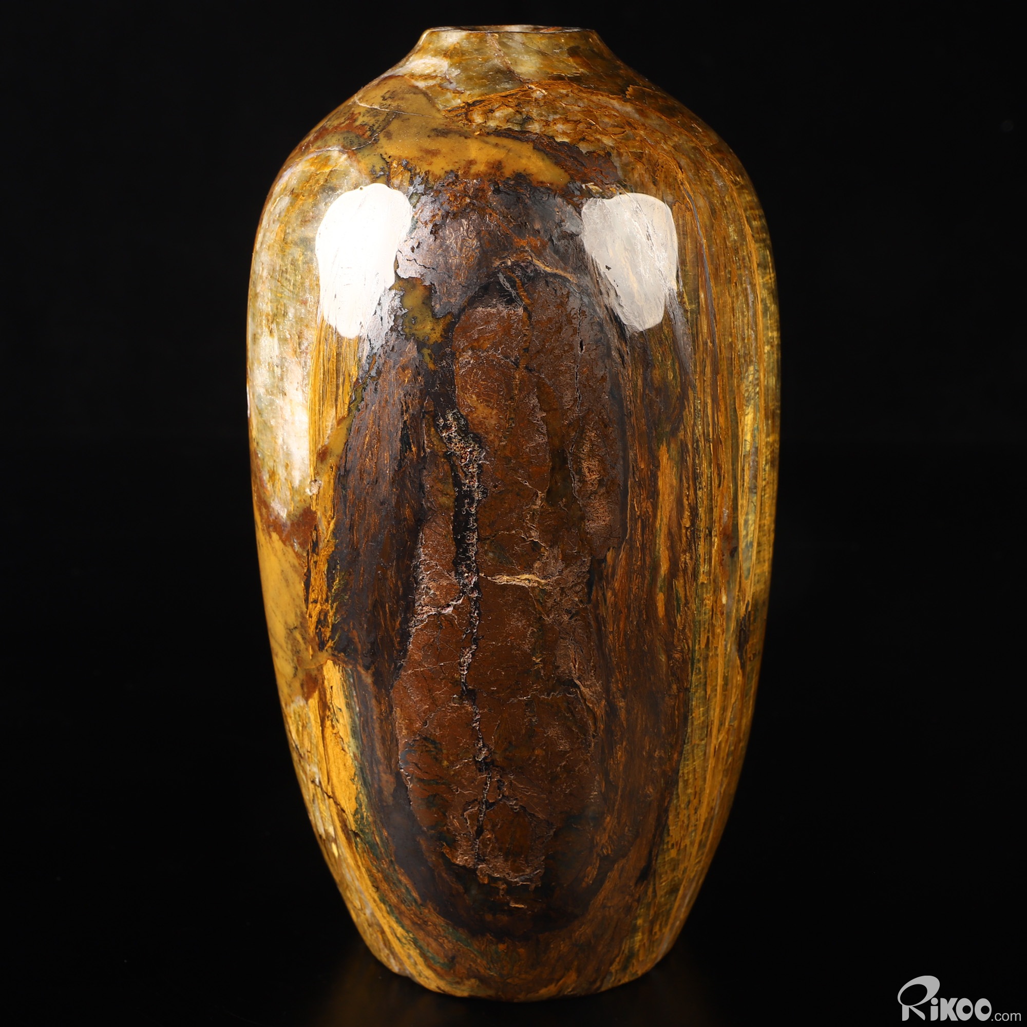 This vase with limited functionality is mainly for display.Pietersite was named in honor of its discovery by Sid Pieters. In 1962, Mr. Pieters was visiting a farm in Namibia, Africa, when he first laid eyes on a sample of this mineral. The stone appeared to be quite heavy for its size, so he took it to his workshop for further study. No sooner than had he cut the stone open, Pieters was stunned by the brilliant rays of his new finding. Mr. Pieters exclaimed, "Of all the gemstones I have seen in the world, this is one of the most beautiful." This stone has come to represent the movement and chaos that break up those energy patterns which are resistant to change. The energy of Pietersite is very forceful and jolts us into personal change. This stone represents change and indicates a need to make changes in your present life. In a lay-out place this stone on the solar plexus chakra, where the flow of energy leads to assimilation and integration.