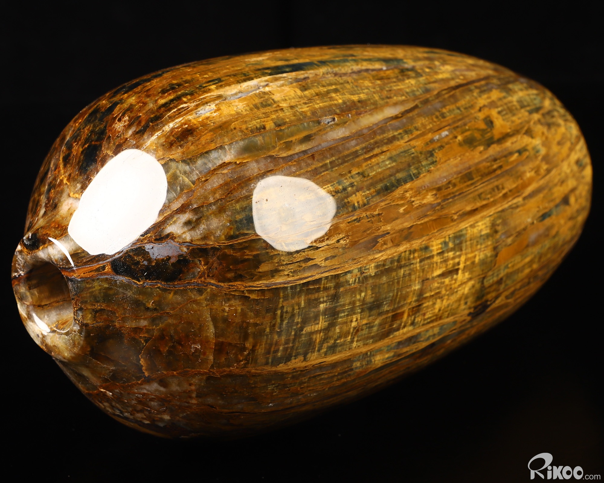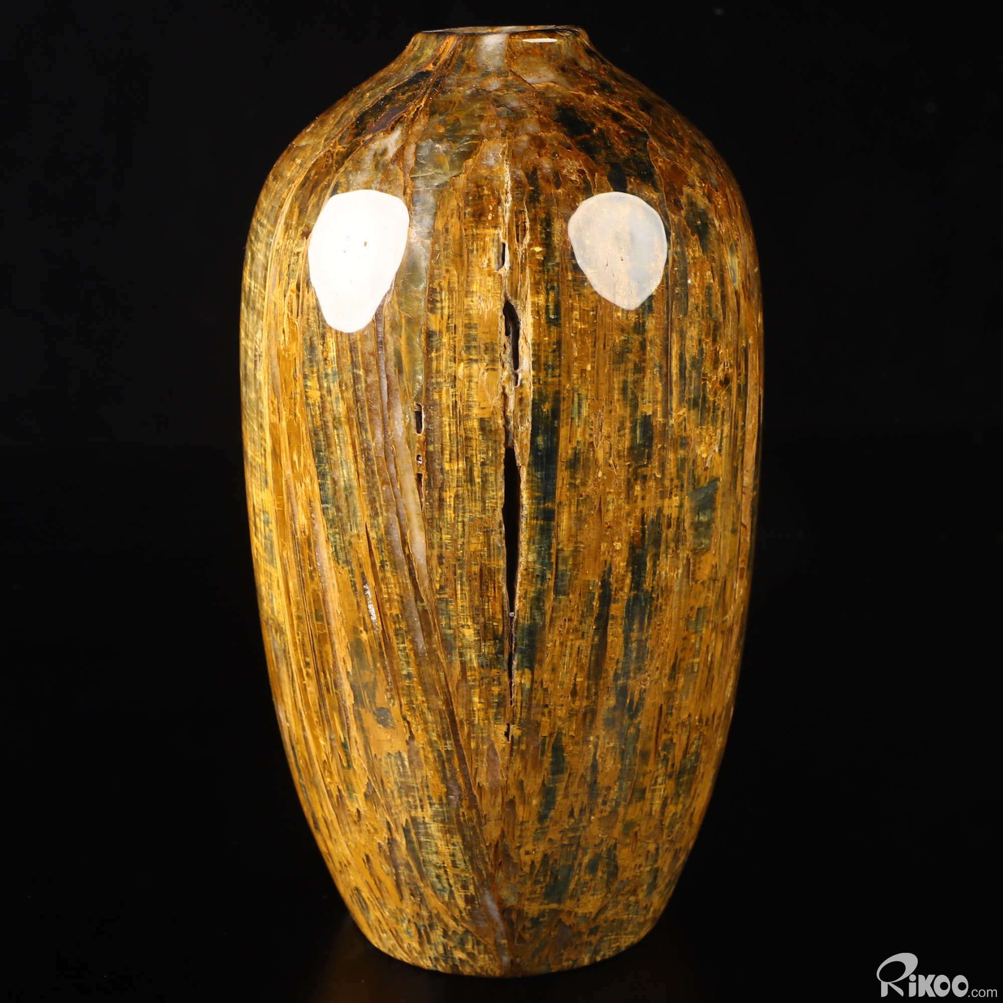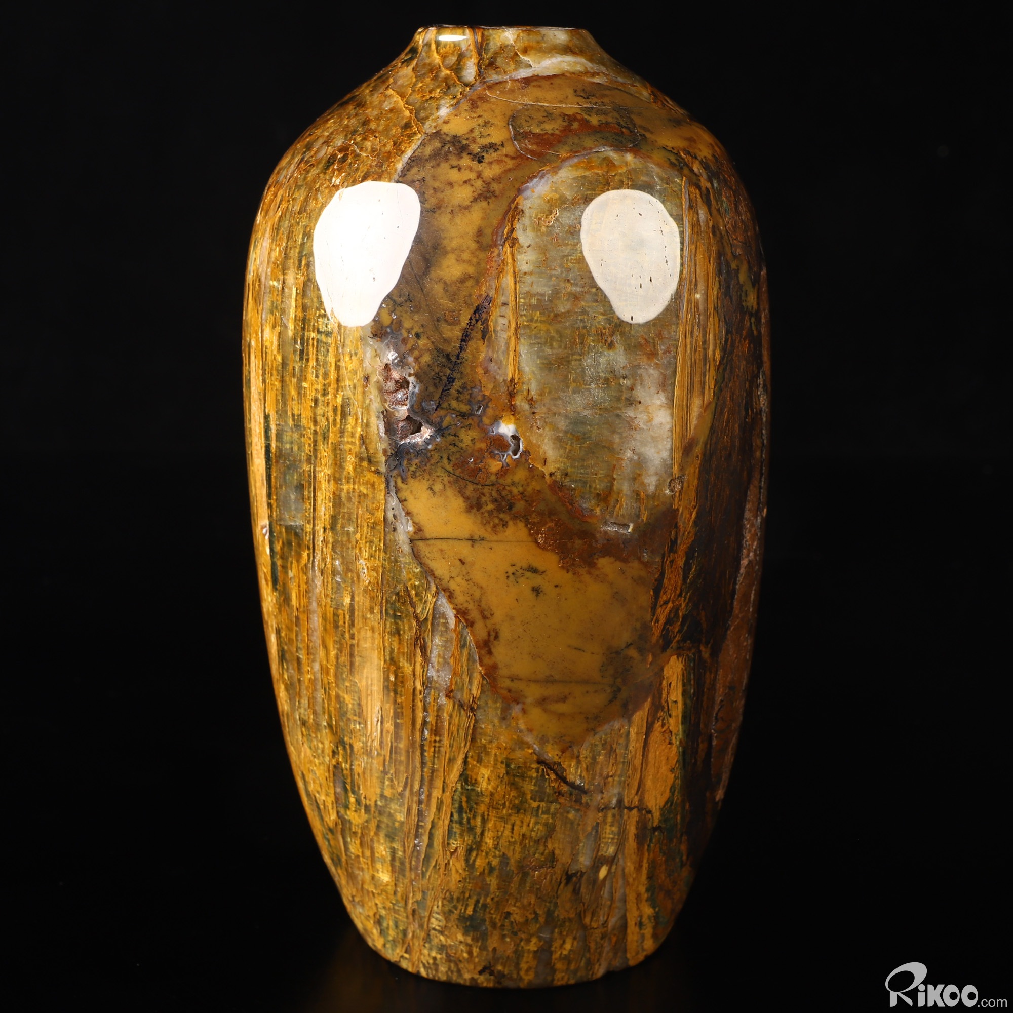 This vase with limited functionality is mainly for display.Pietersite was named in honor of its discovery by Sid Pieters. In 1962, Mr. Pieters was visiting a farm in Namibia, Africa, when he first laid eyes on a sample of this mineral. The stone appeared to be quite heavy for its size, so he took it to his workshop for further study. No sooner than had he cut the stone open, Pieters was stunned by the brilliant rays of his new finding. Mr. Pieters exclaimed, "Of all the gemstones I have seen in the world, this is one of the most beautiful." This stone has come to represent the movement and chaos that break up those energy patterns which are resistant to change. The energy of Pietersite is very forceful and jolts us into personal change. This stone represents change and indicates a need to make changes in your present life. In a lay-out place this stone on the solar plexus chakra, where the flow of energy leads to assimilation and integration.