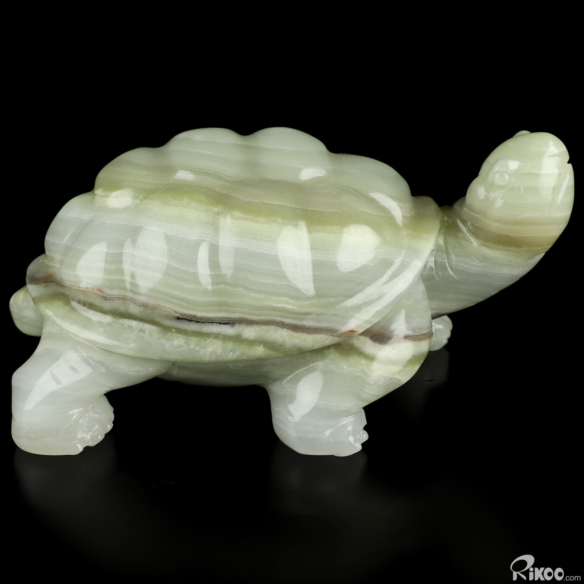 You are looking at an Afghanistan Jade Turtle sculpture. The sculpture is 7.6 inches long.