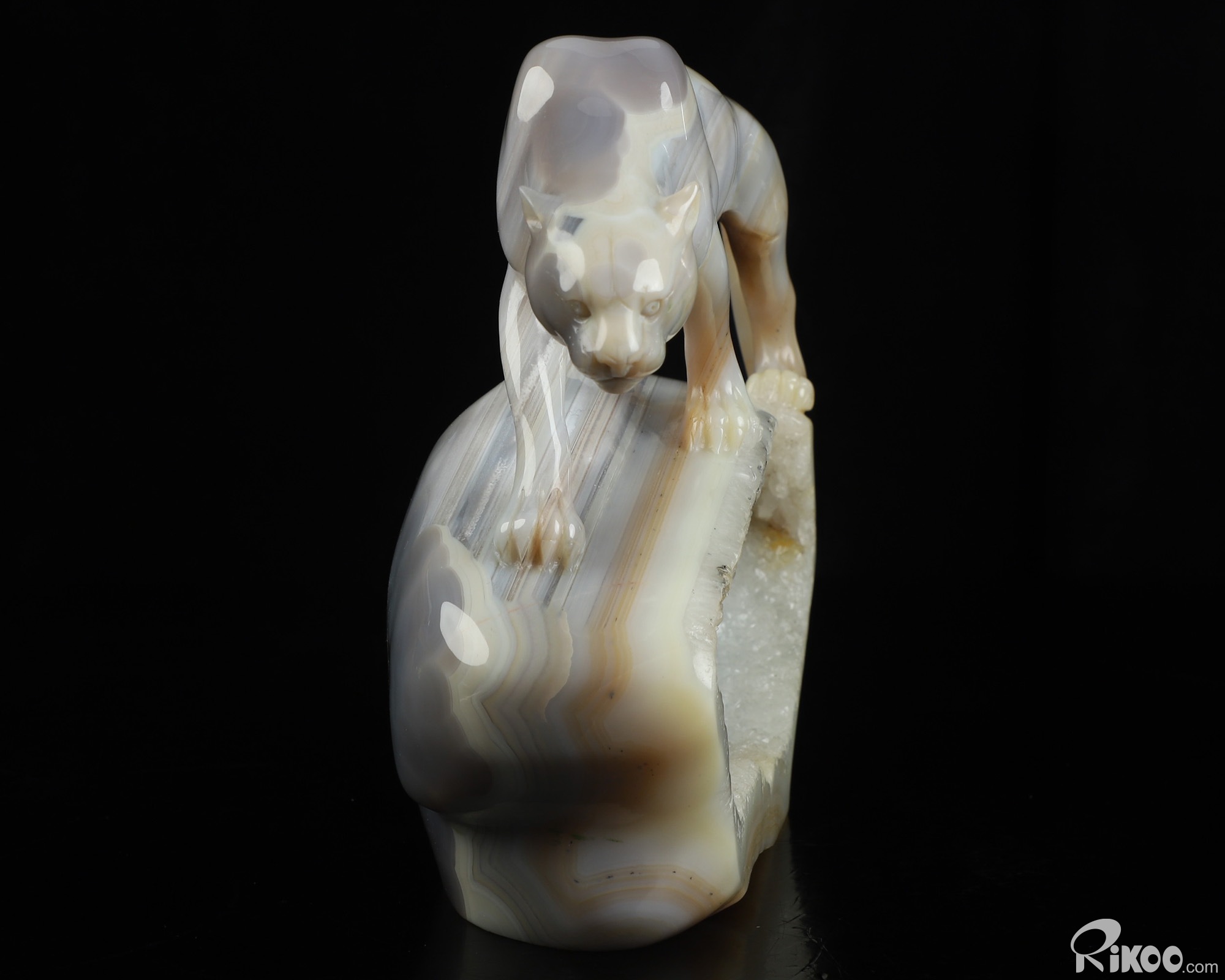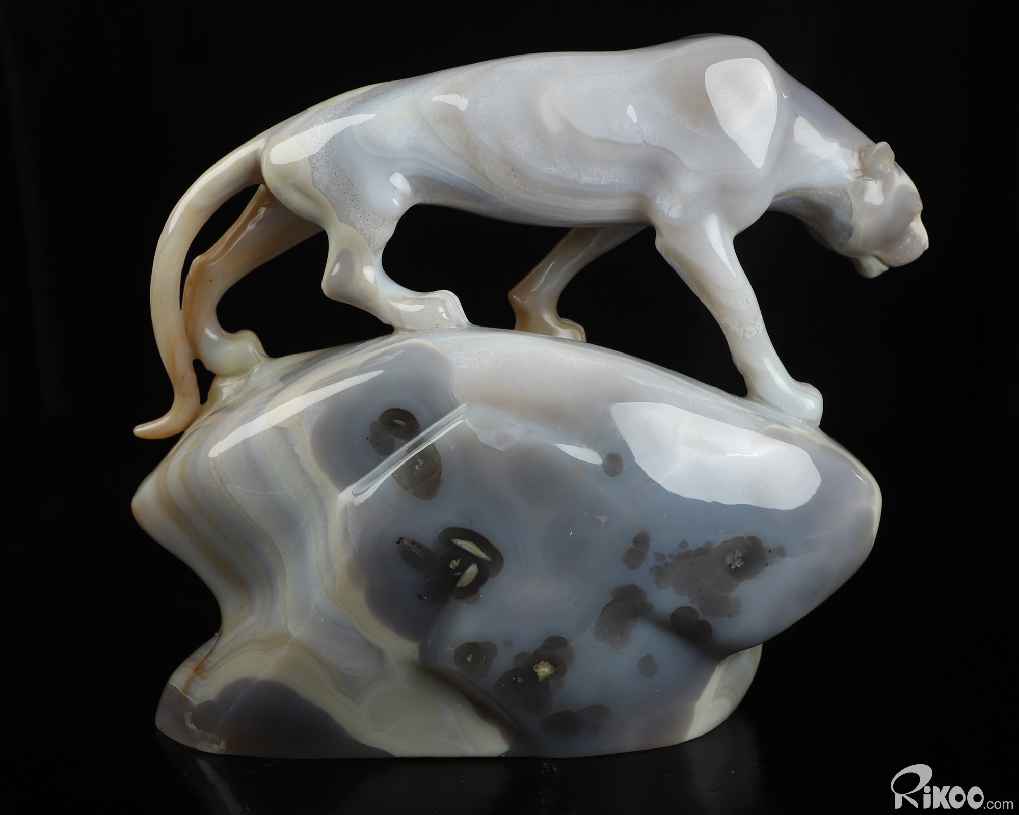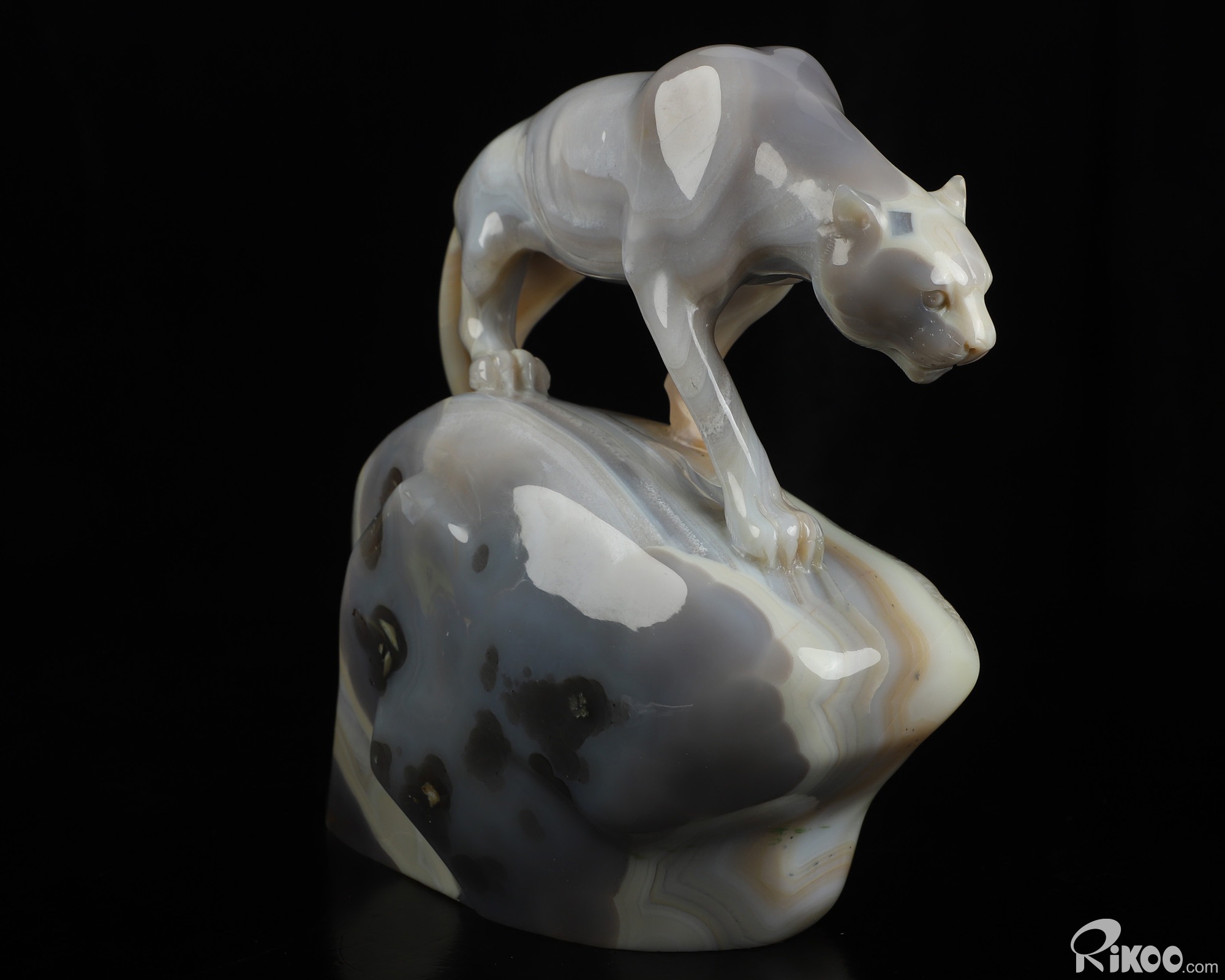 7.6" Agate Hand Carved Crystal Leopard Sculpture, Crystal Healing
