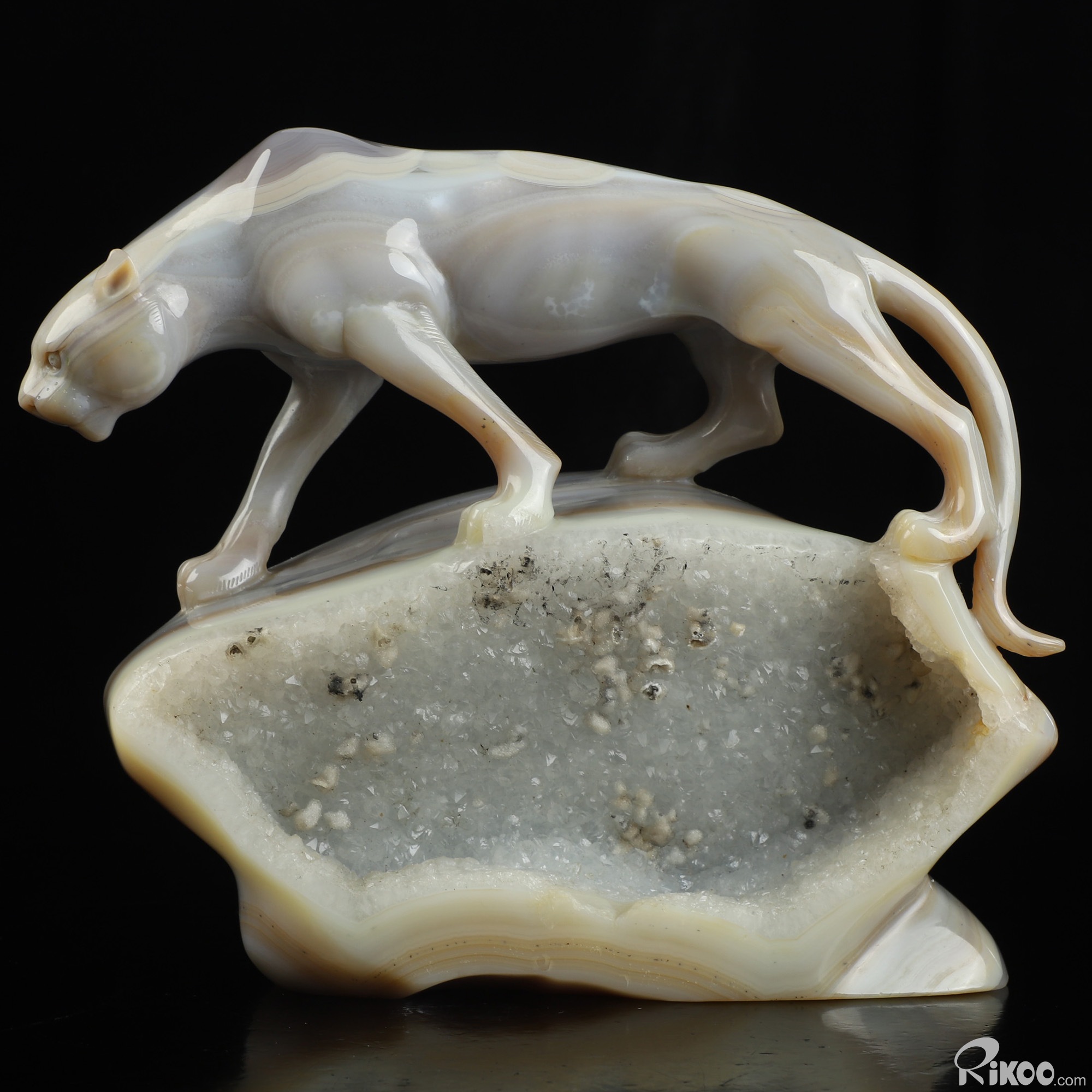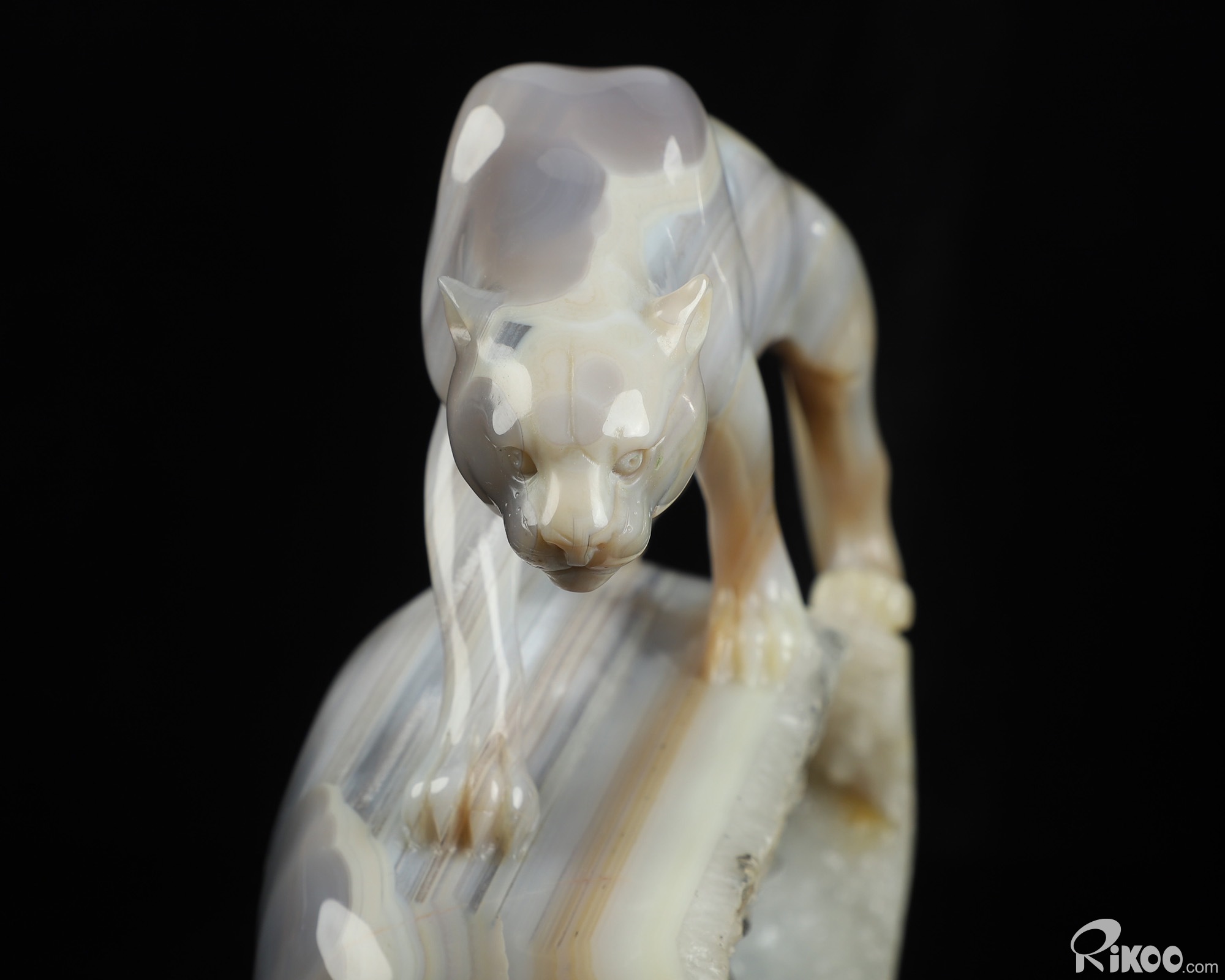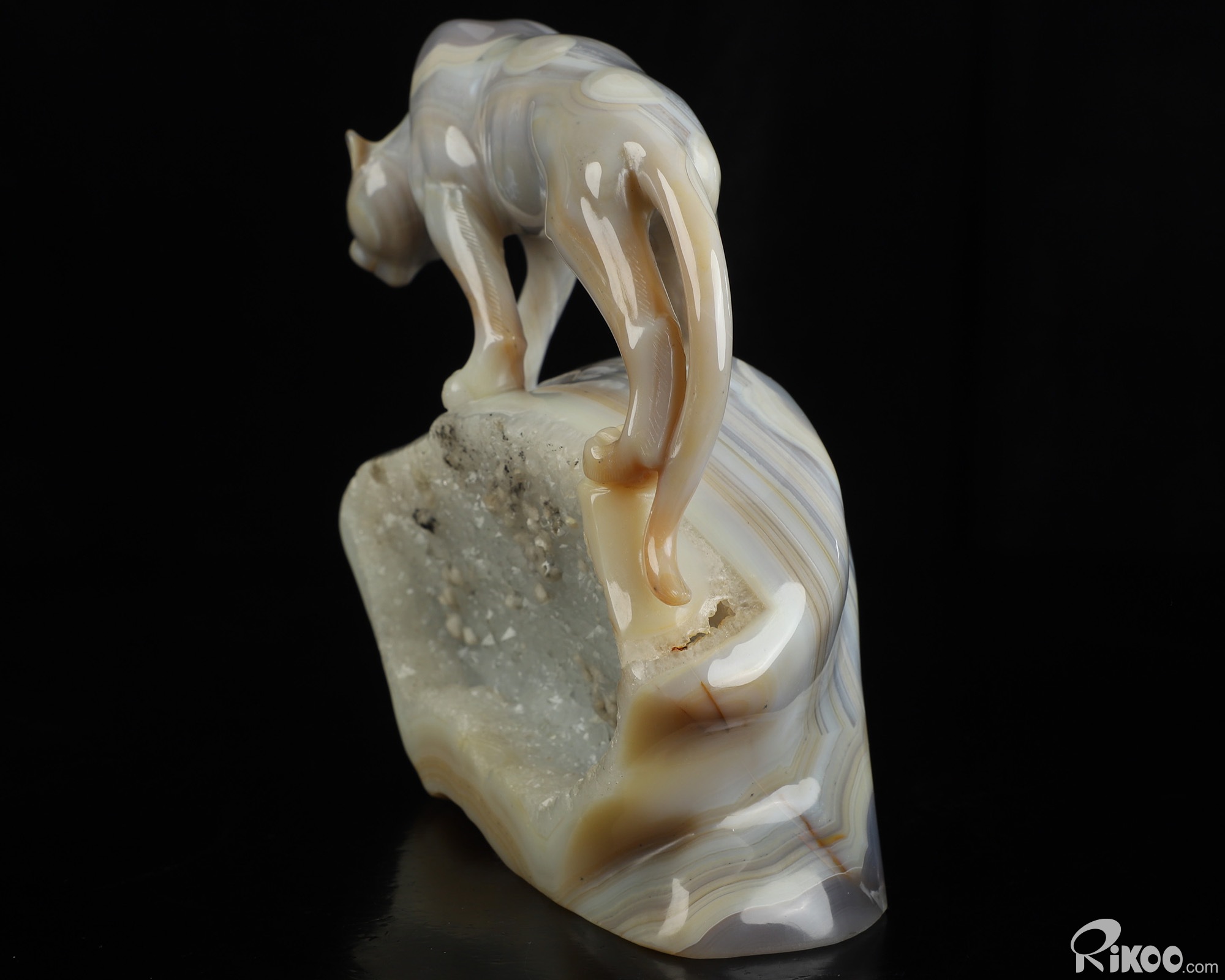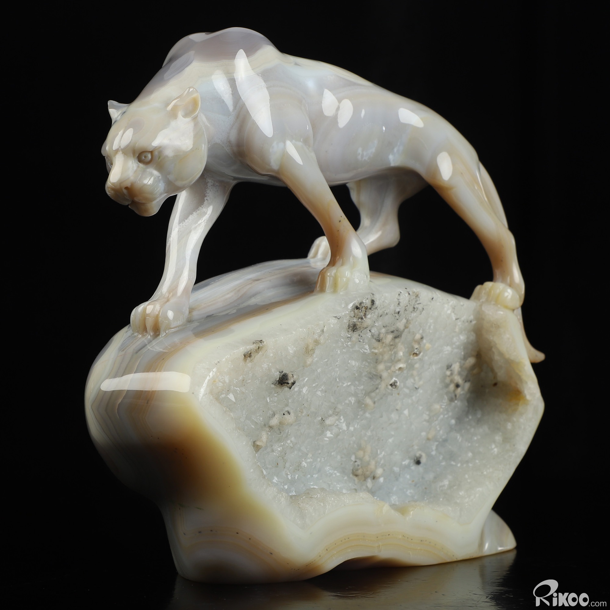 7.6" Agate Hand Carved Crystal Leopard Sculpture, Crystal Healing