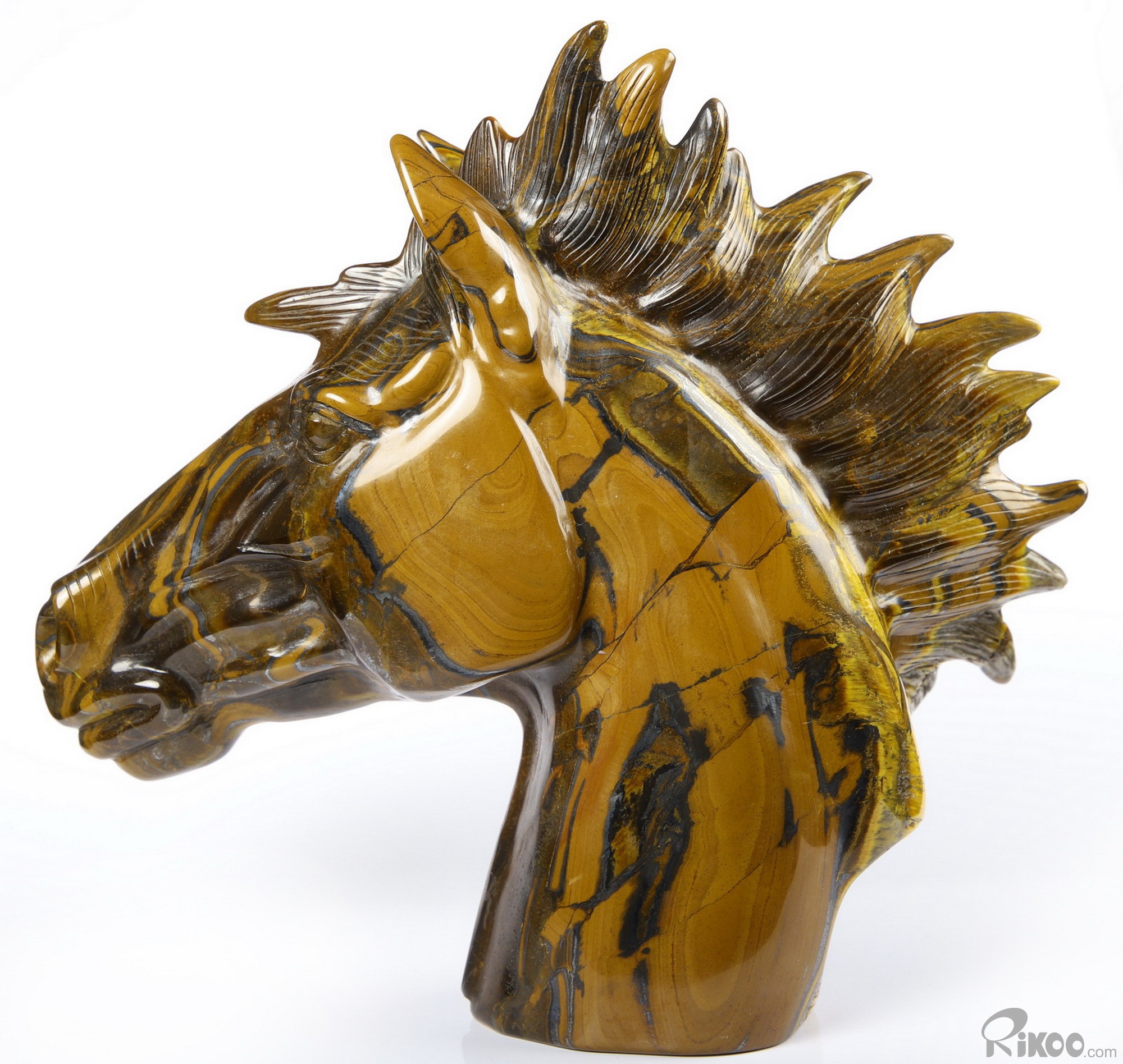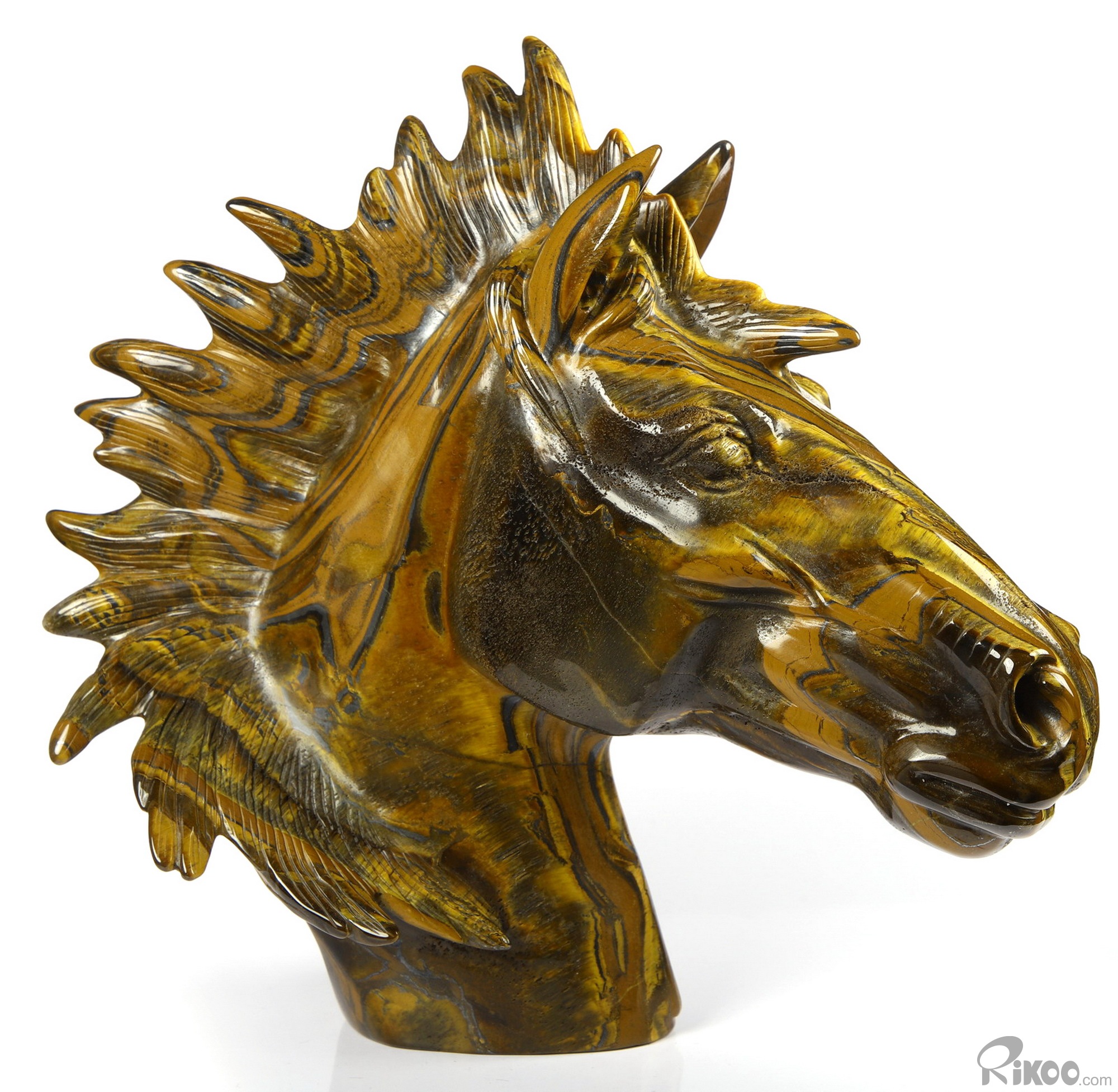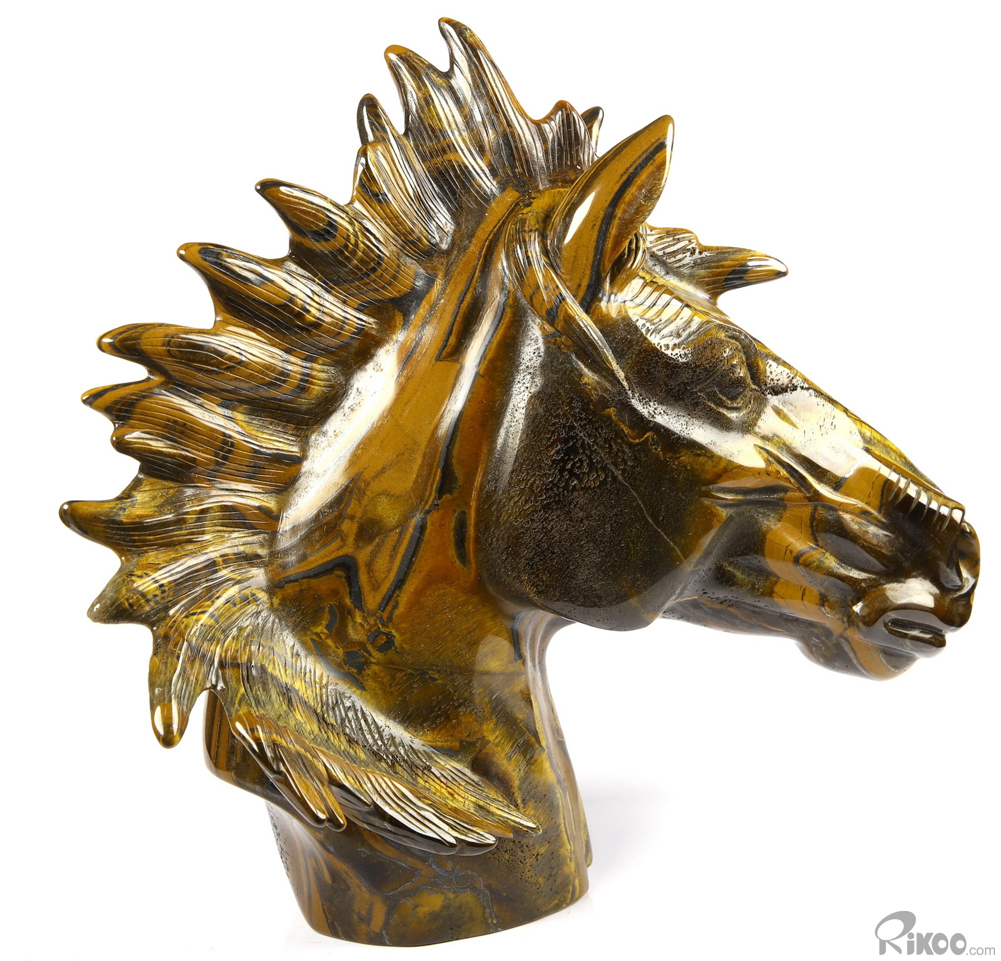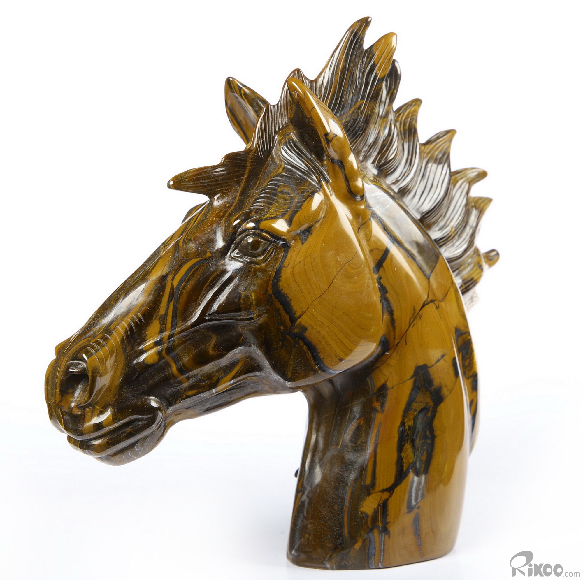 7.6" Tiger Iron Eye Carved Crystal Horse Sculpture, Crystal Healing