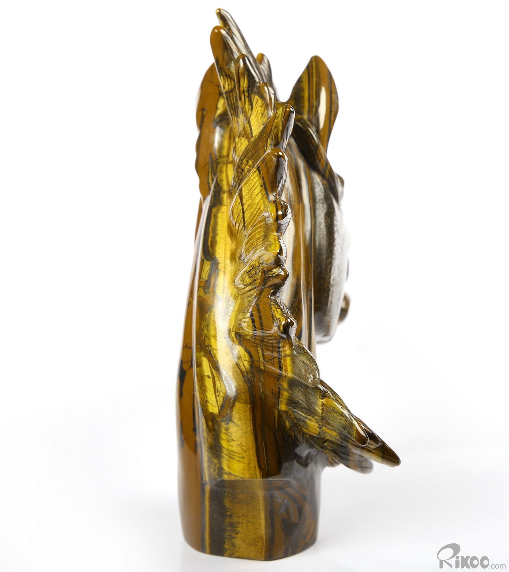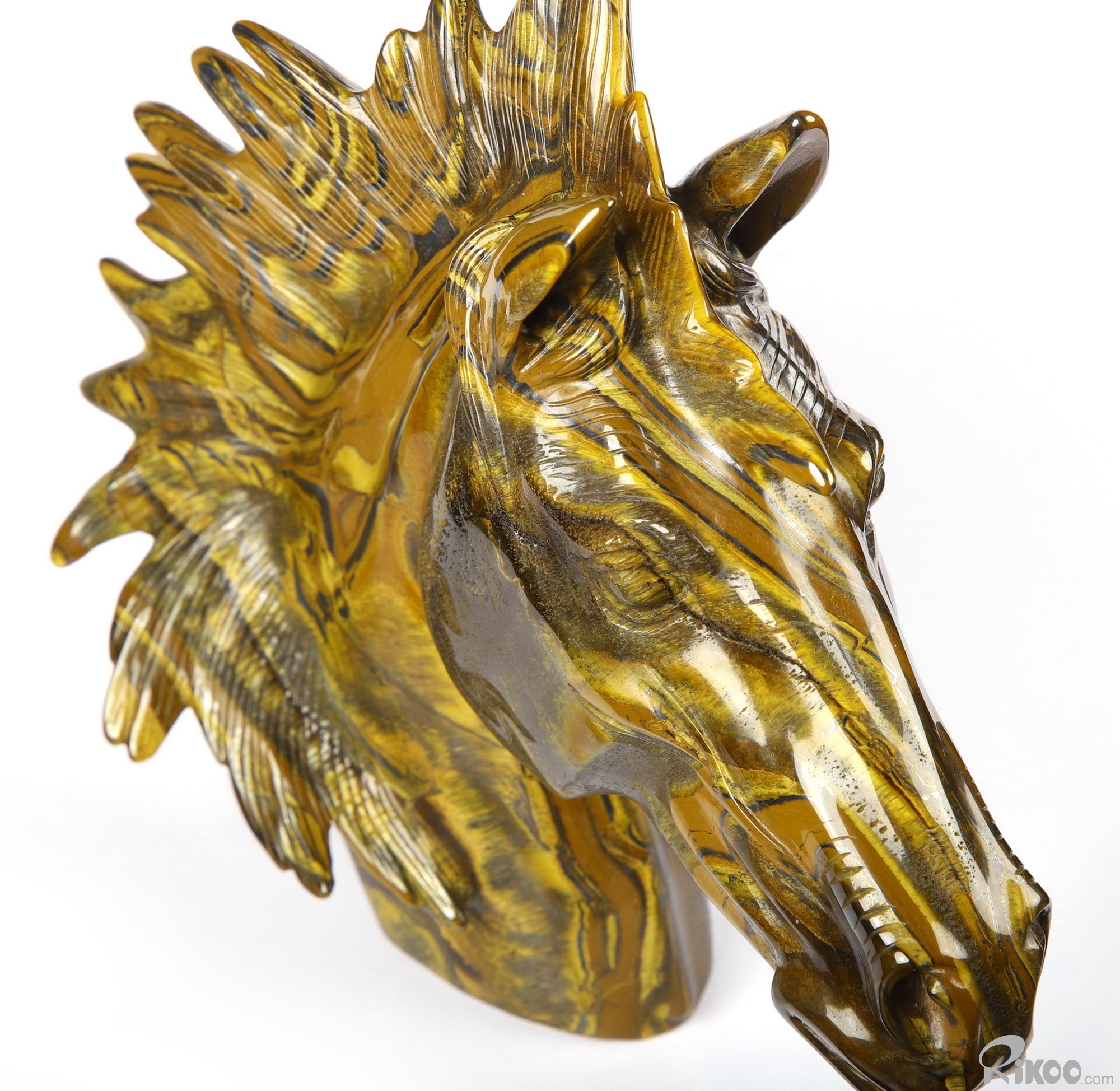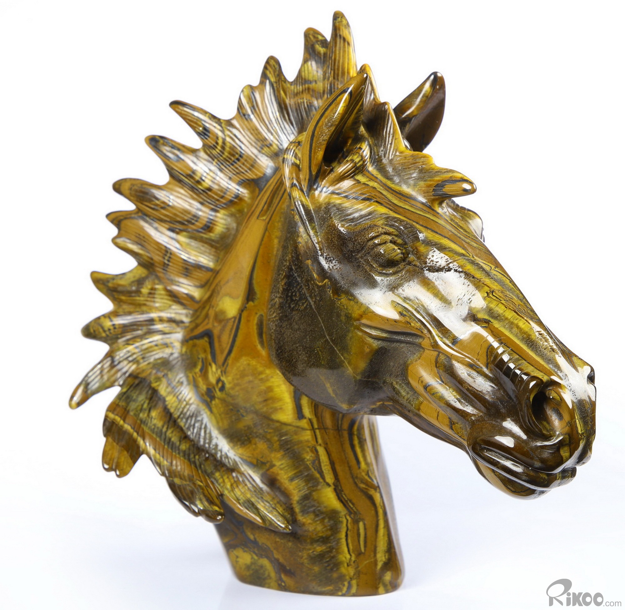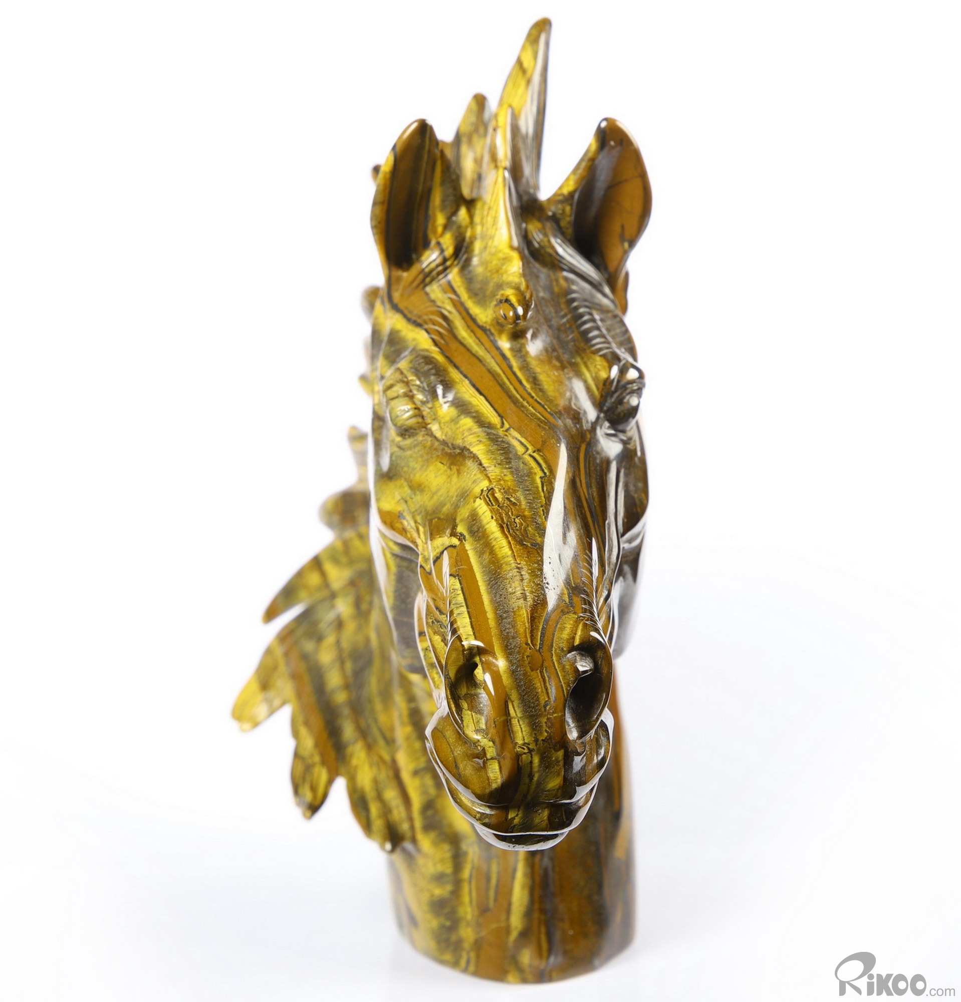 7.6" Tiger Iron Eye Carved Crystal Horse Sculpture, Crystal Healing