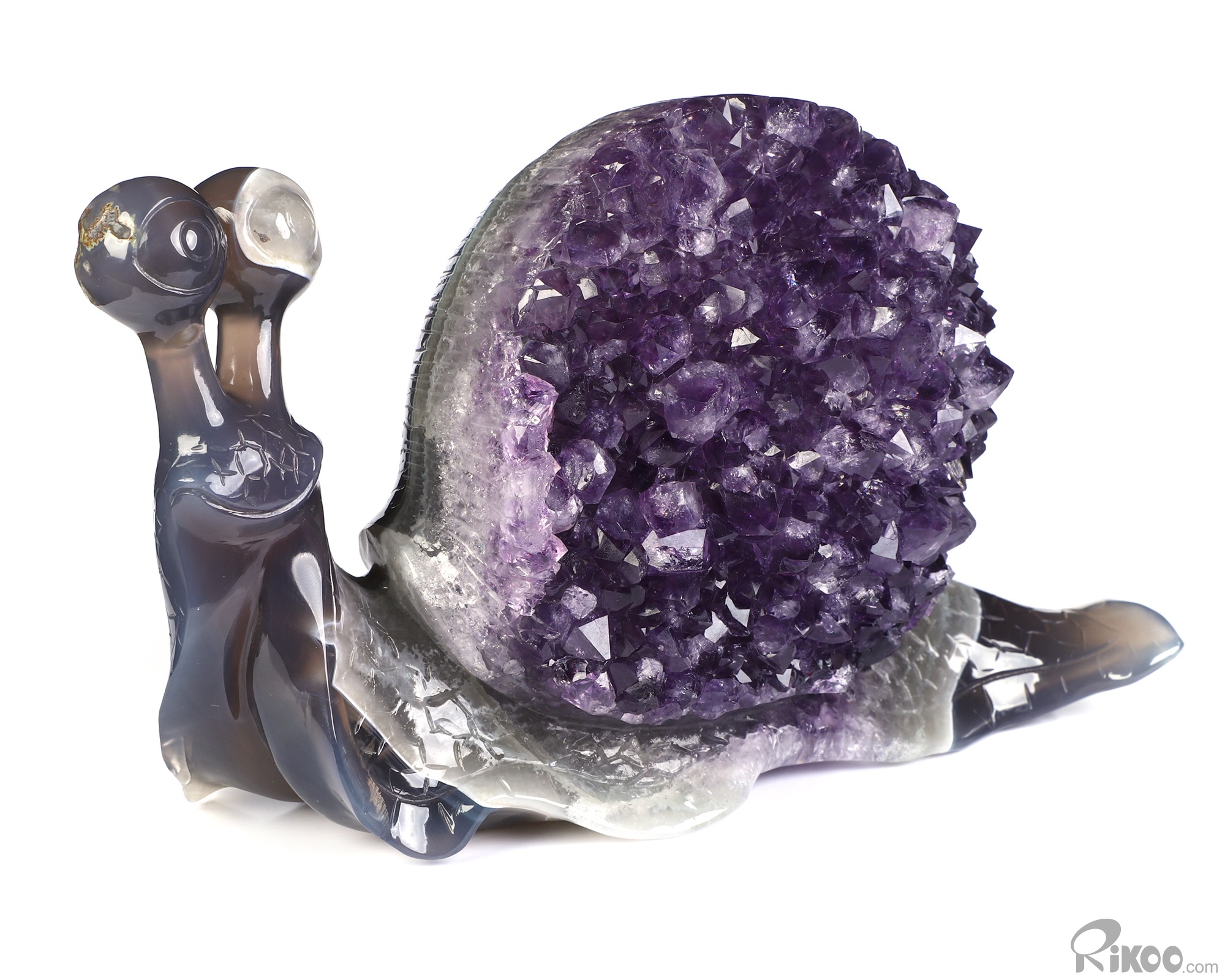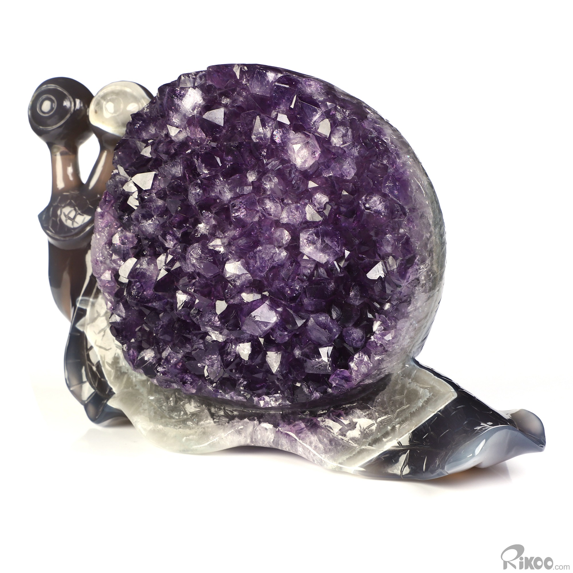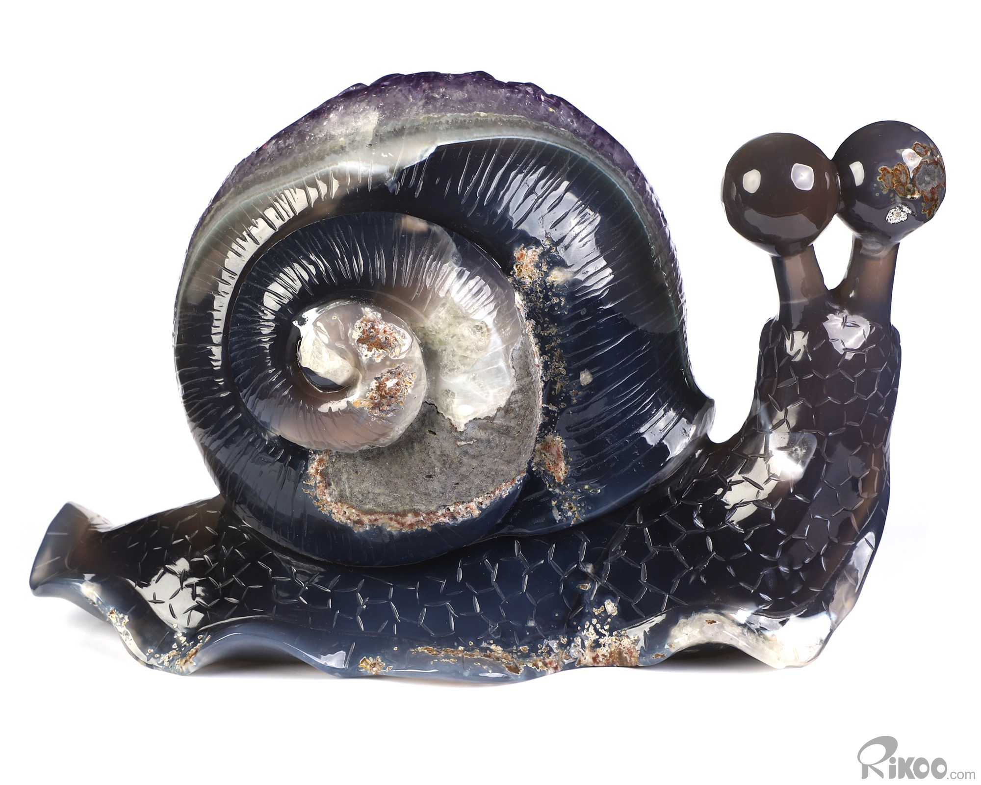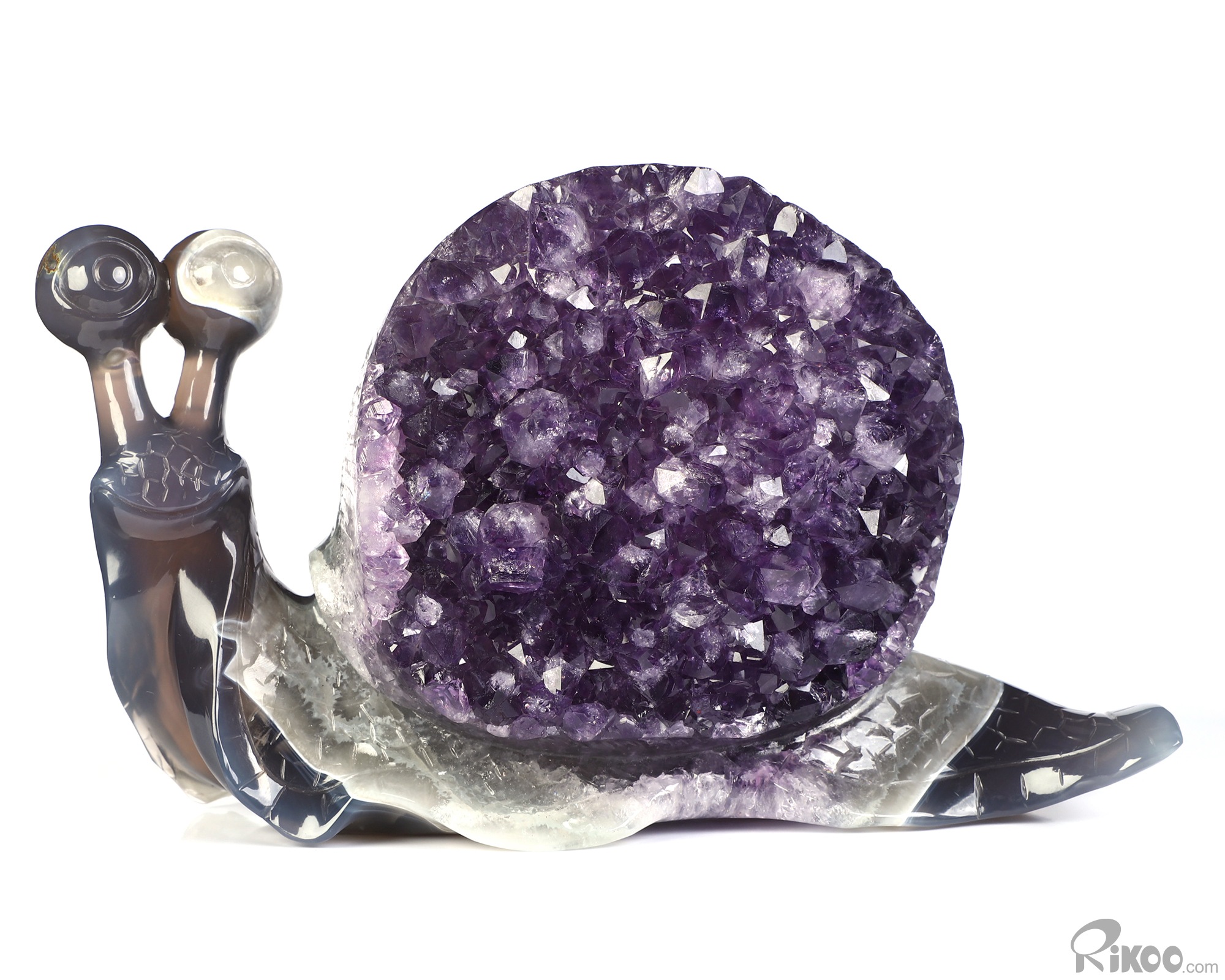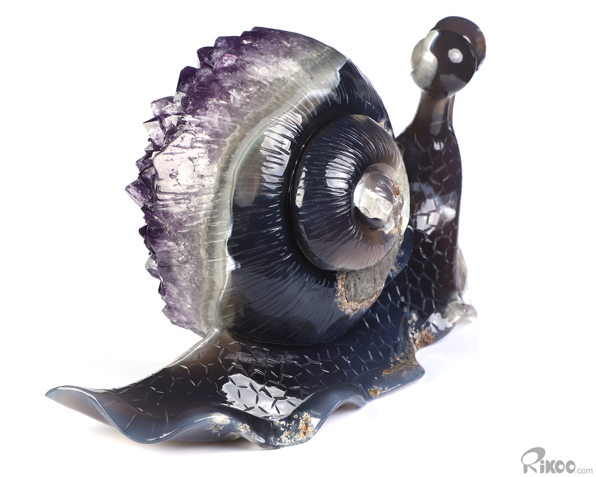 7.7" Agate Amethyst Druse Hand Carved Crystal Snail Sculpture, Crystal Healing