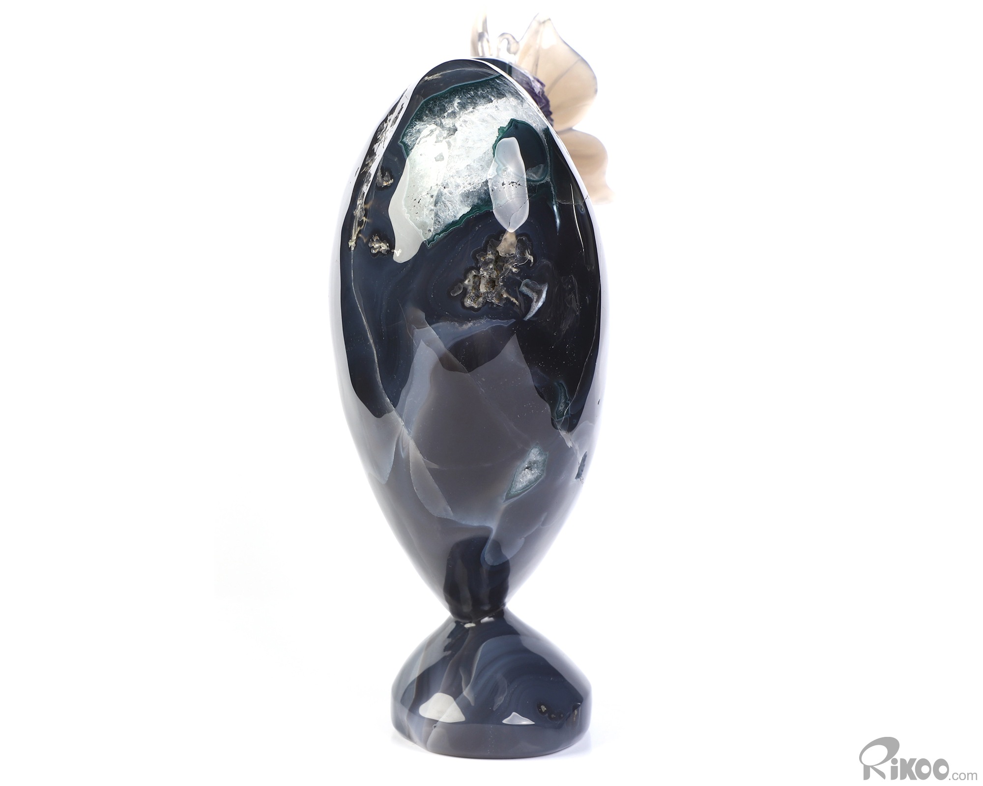 You are looking at an Agate Amethyst Geode sculpture. The sculpture is 7.7 inches long.