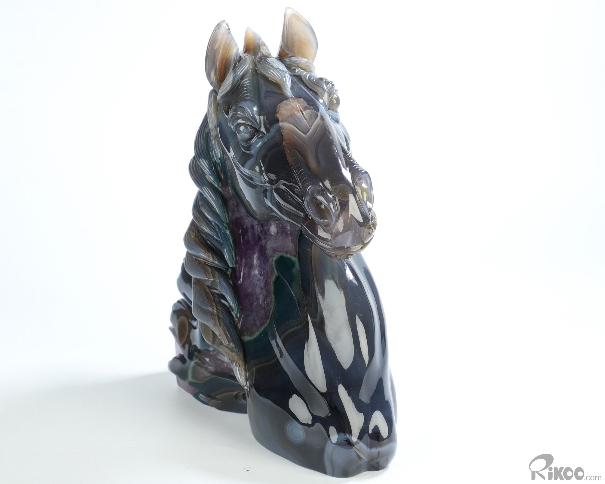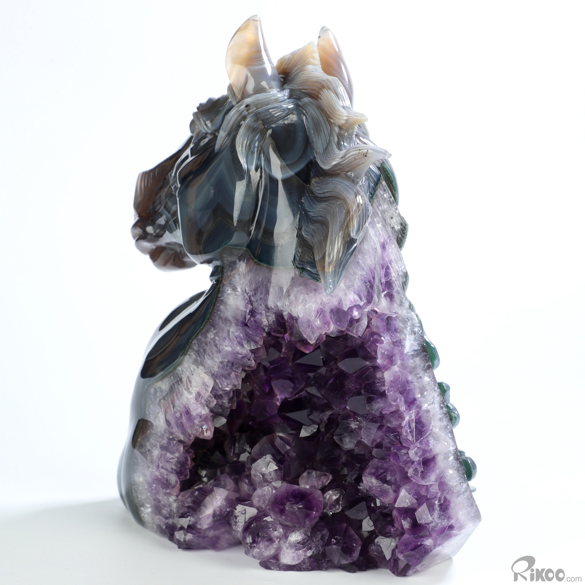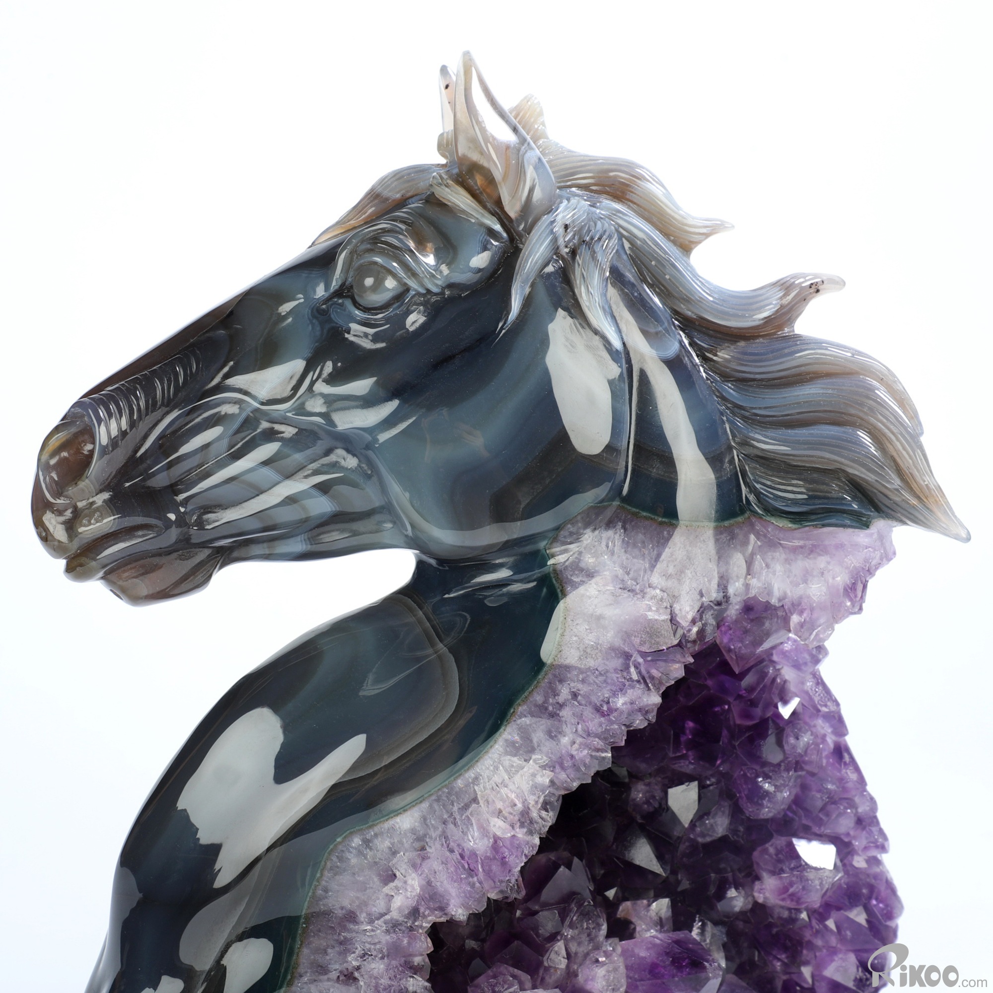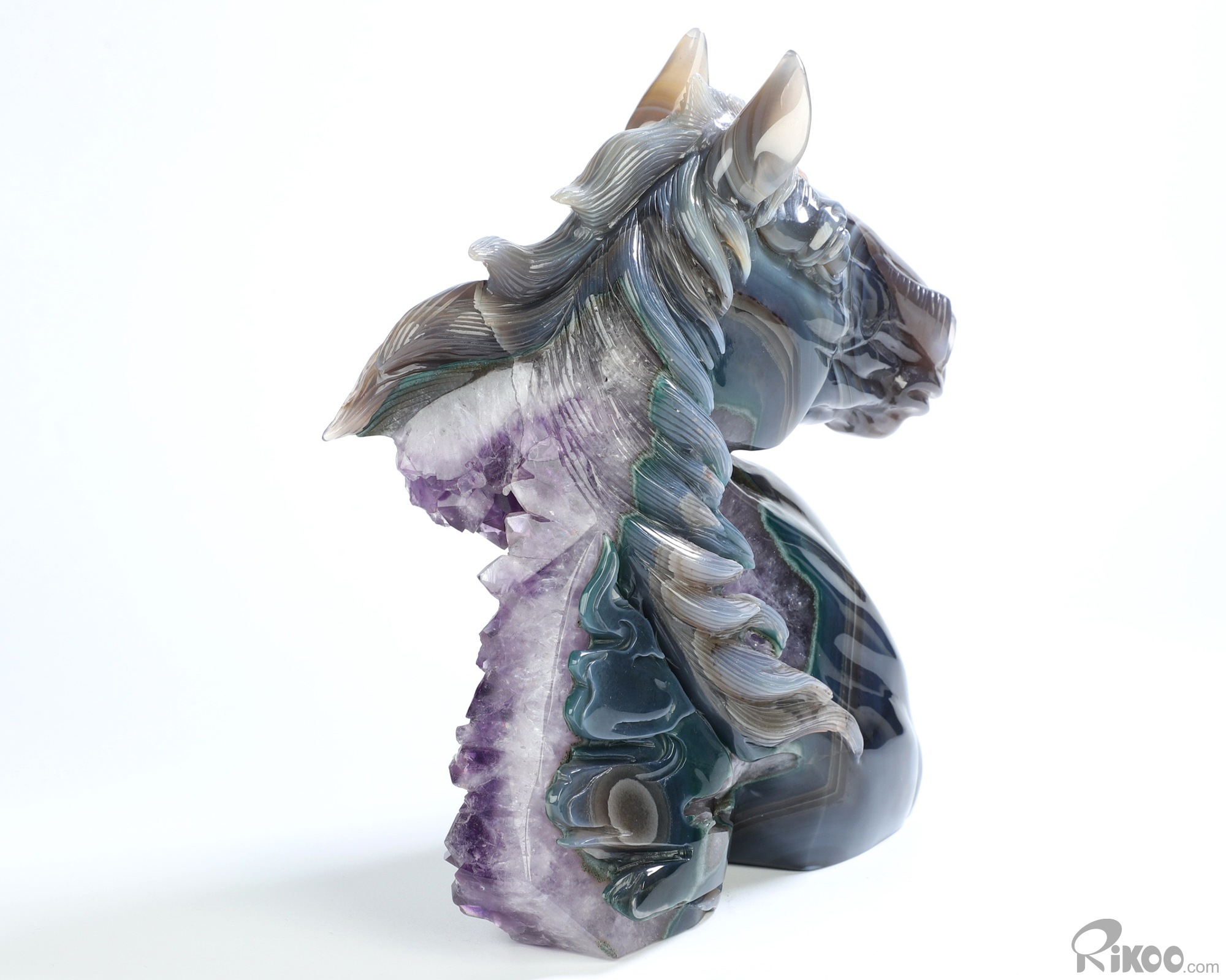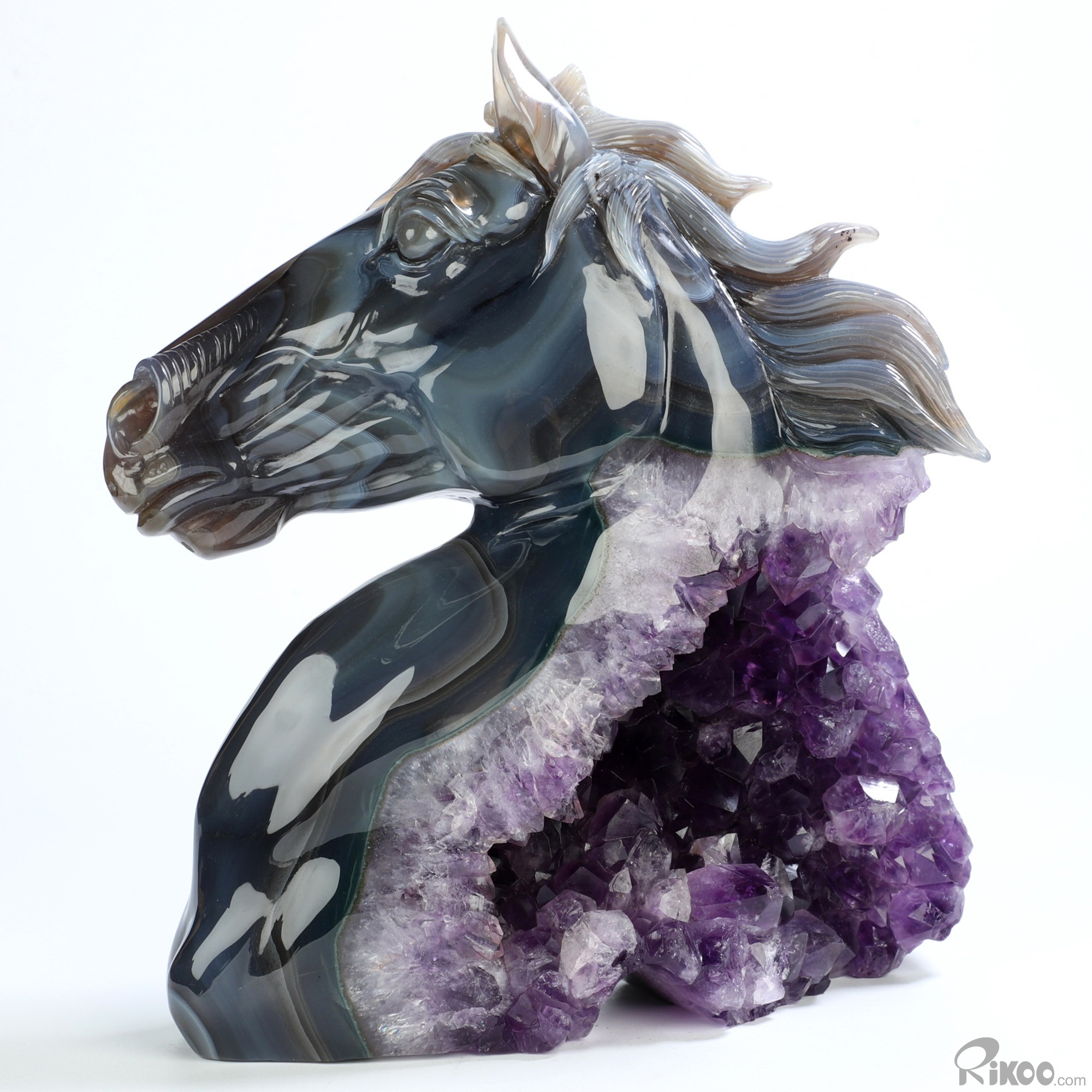 7.7" Agate Amethyst Geode Hand Carved Crystal Horse Sculpture, Crystal Healing