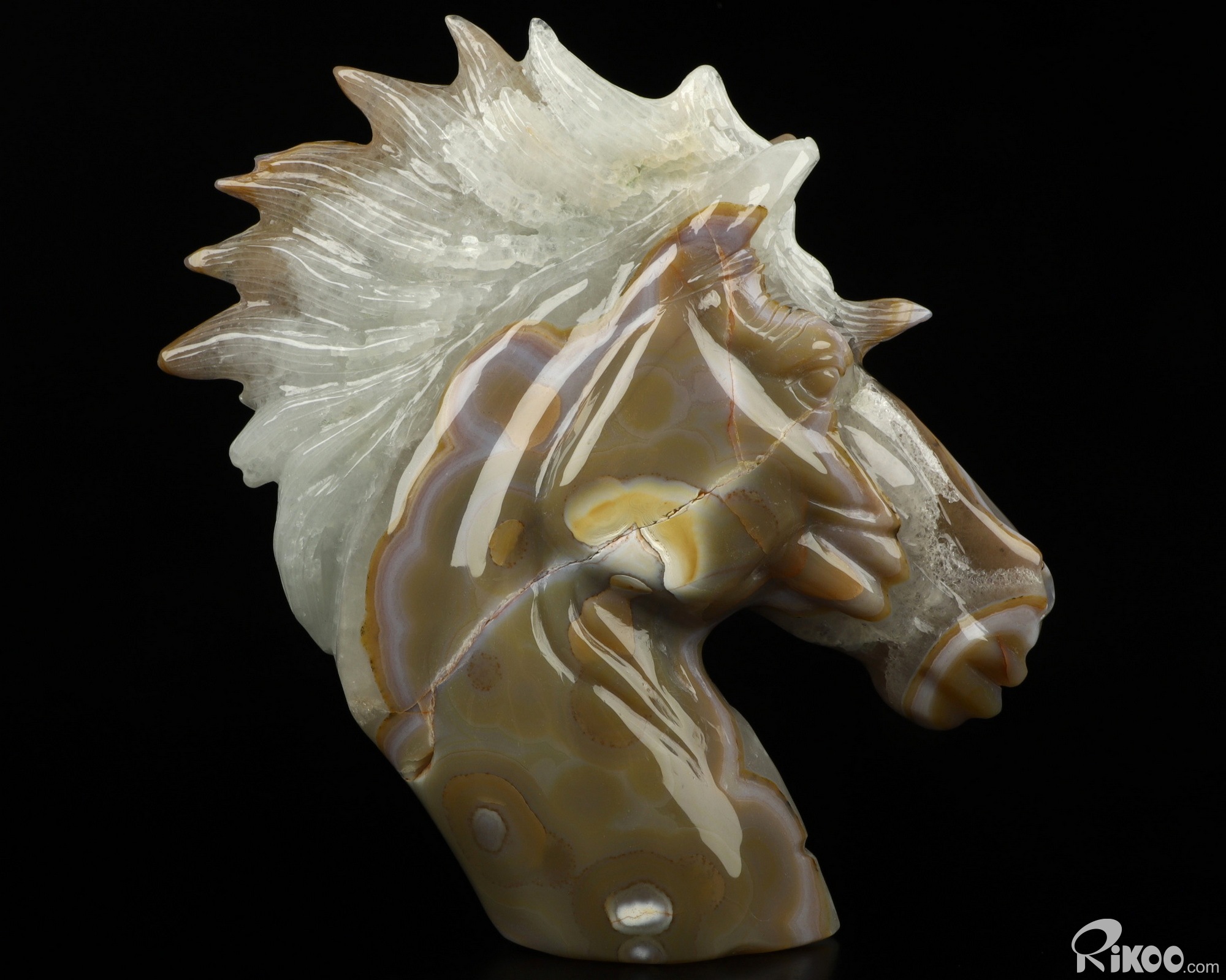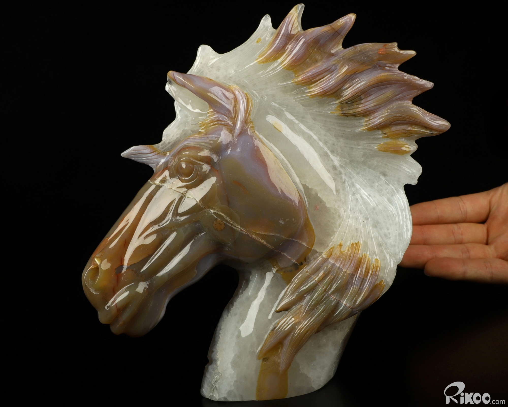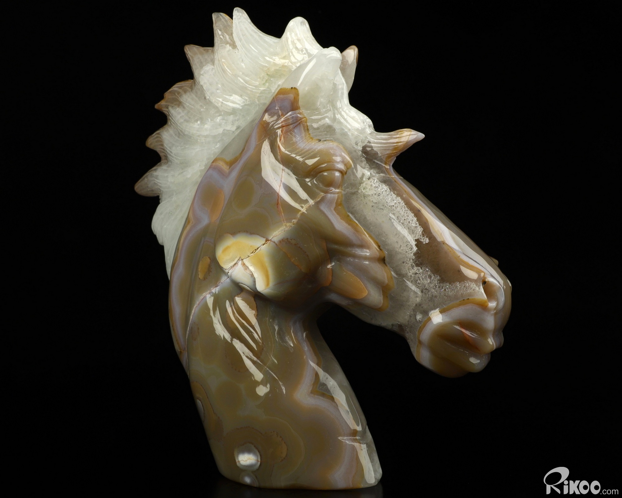 7.7" Agate Carved Crystal Horse Sculpture, Realistic, Crystal Healing