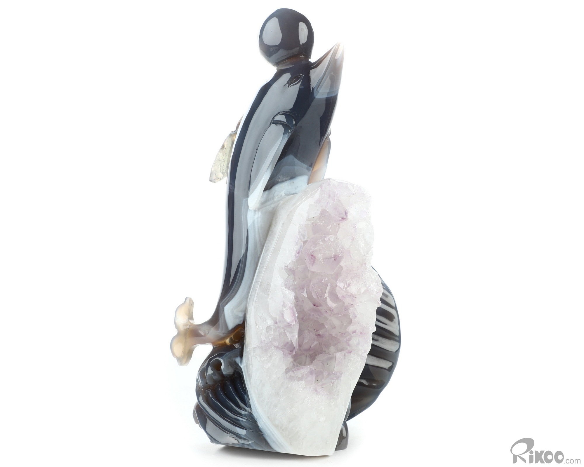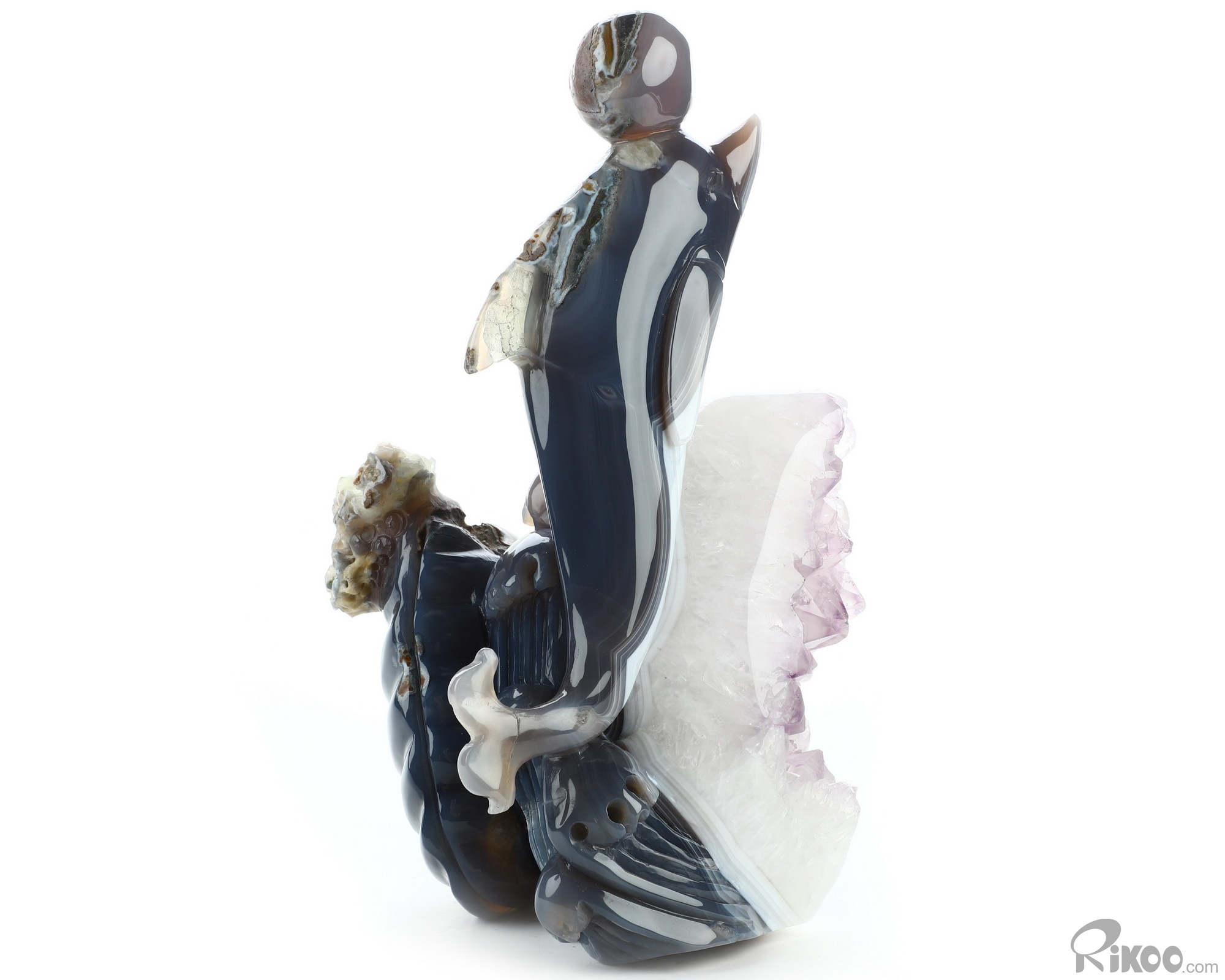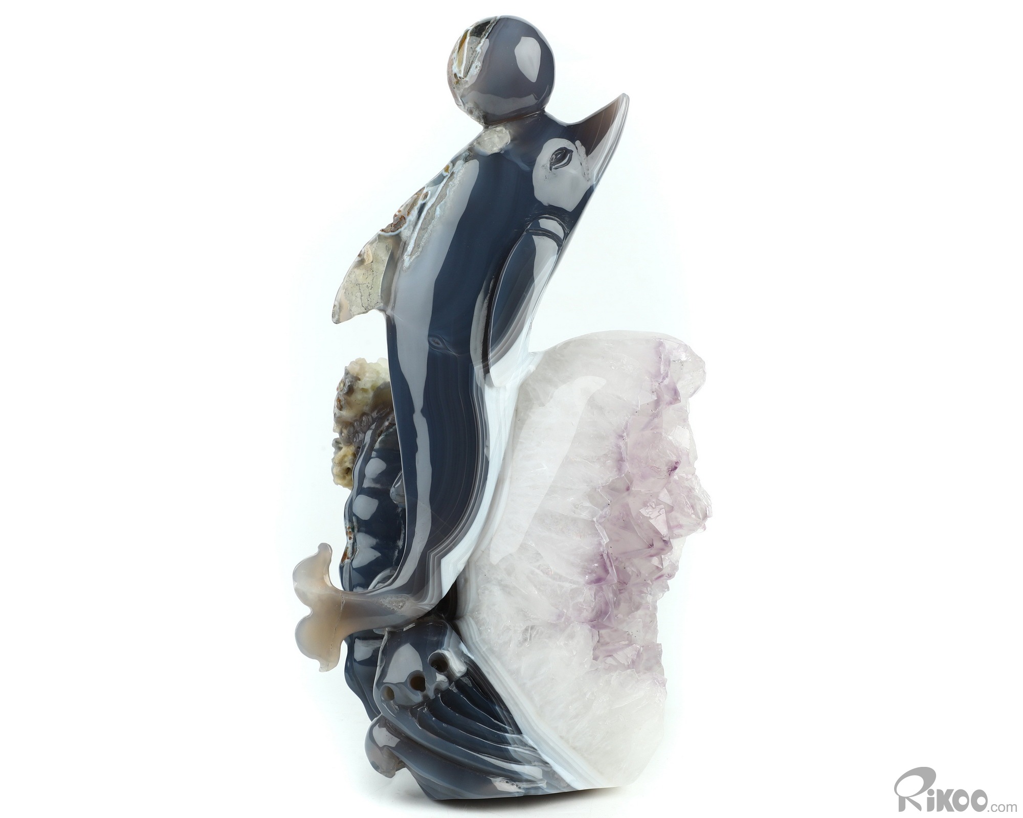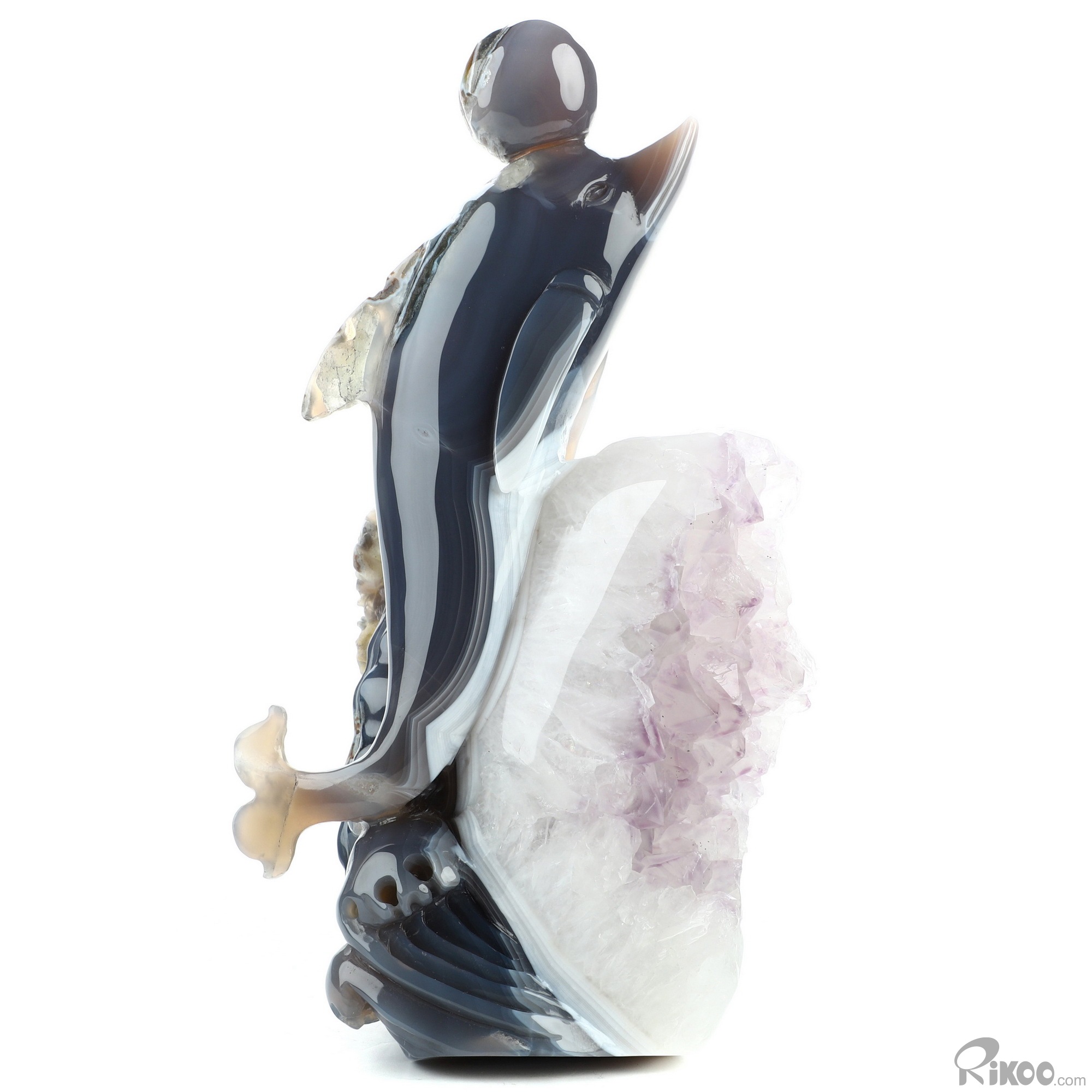 7.7" Amethyst & Agate Hand Carved Crystal Dolphin Sculpture, Crystal Healing