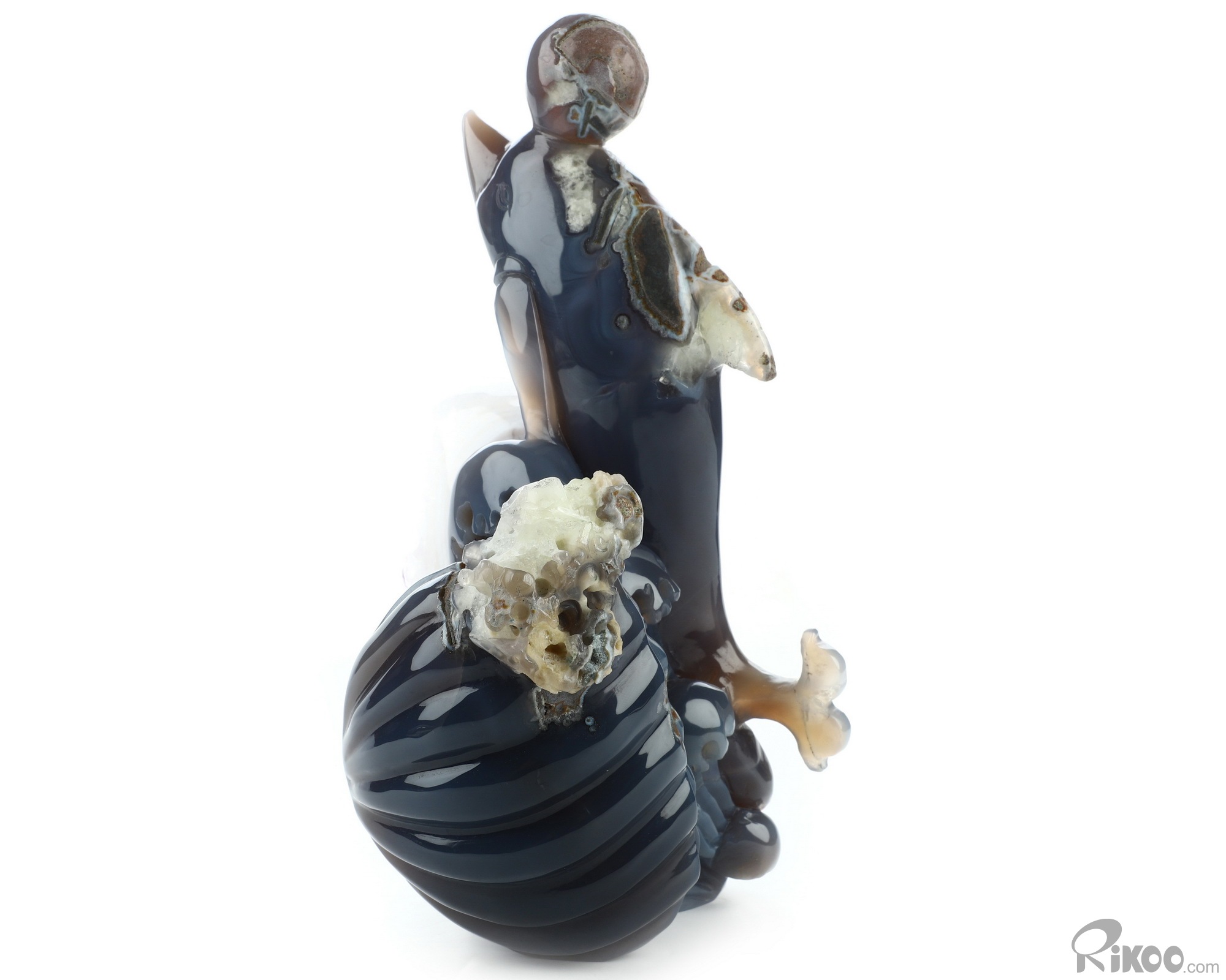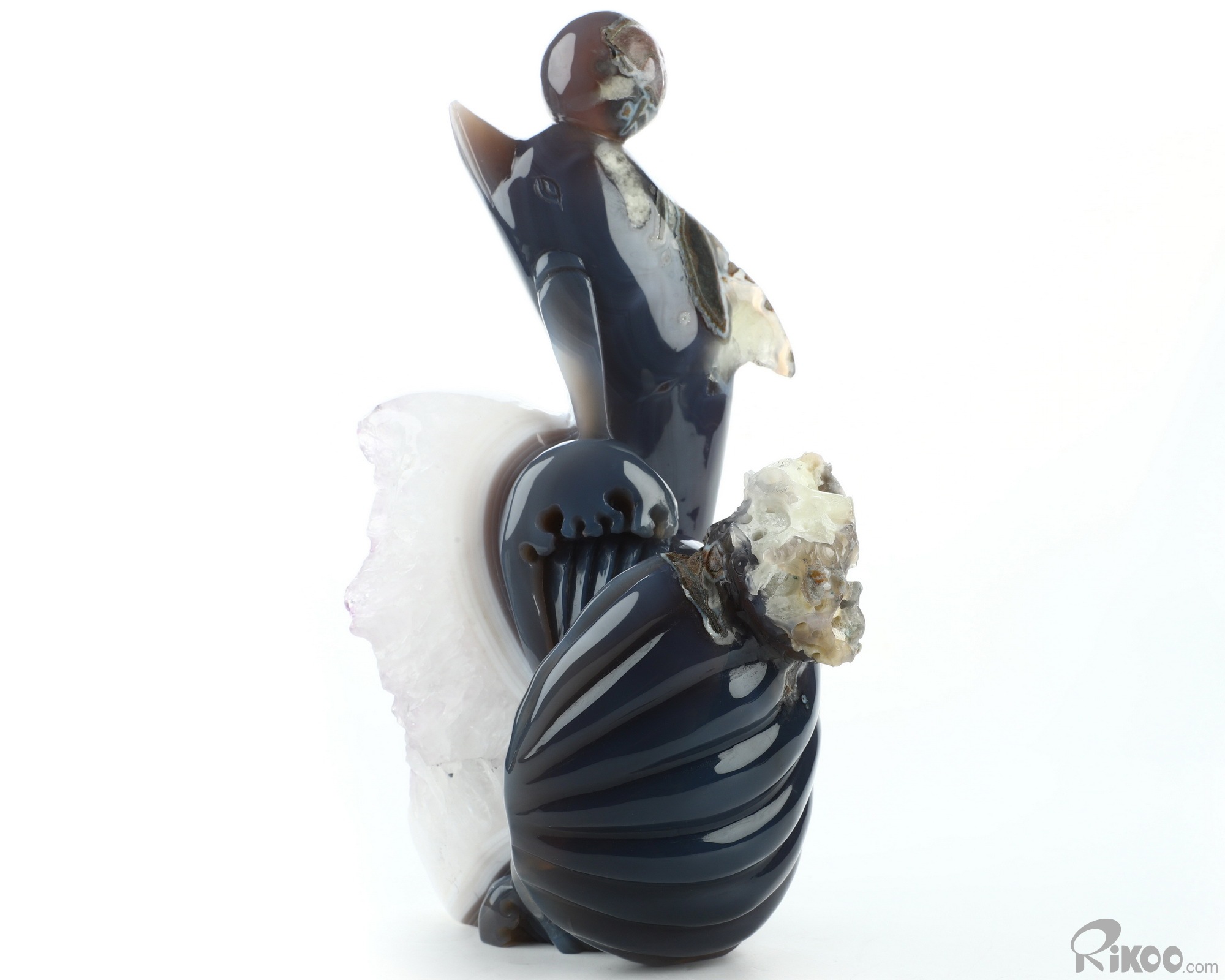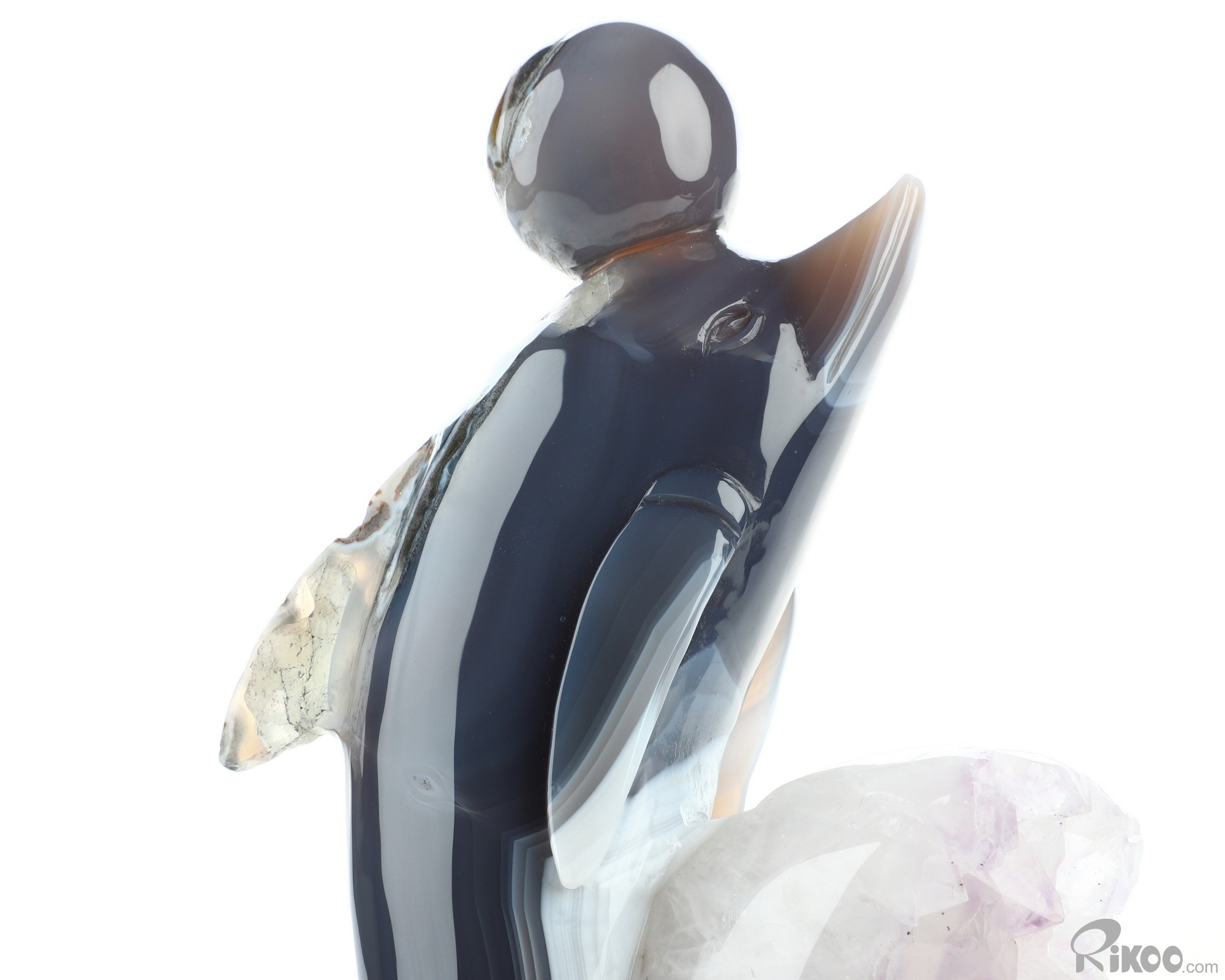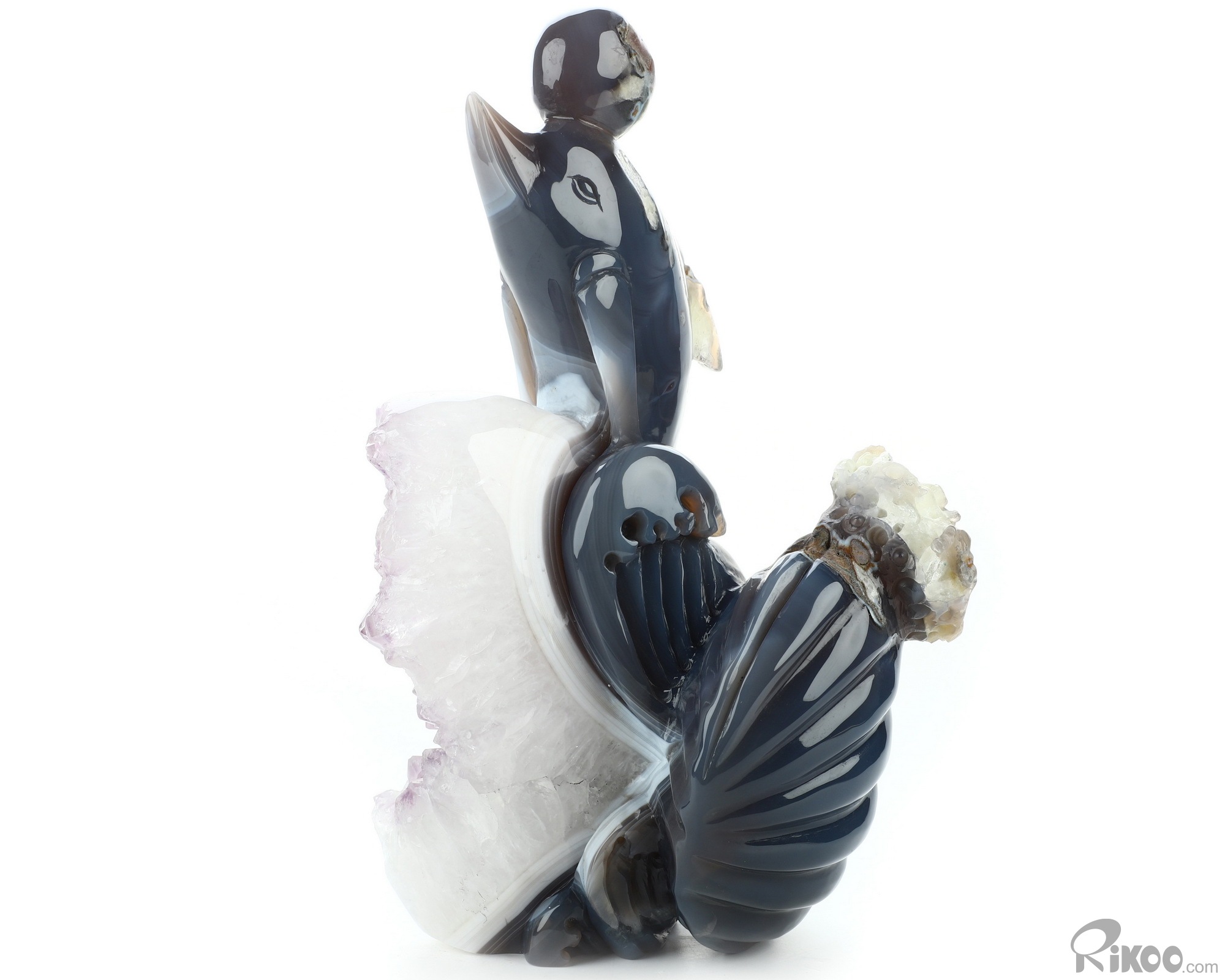 7.7" Amethyst & Agate Hand Carved Crystal Dolphin Sculpture, Crystal Healing