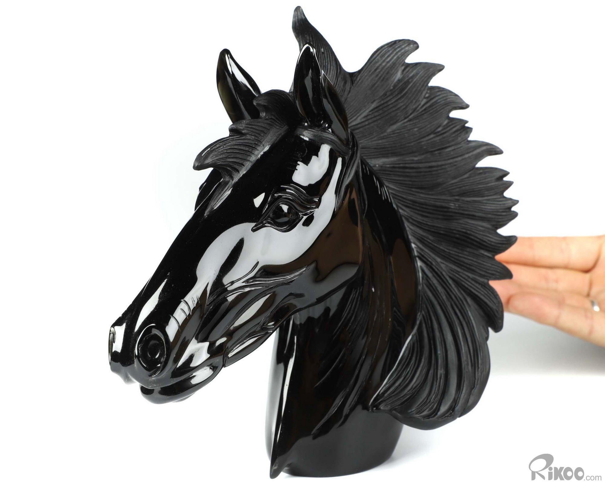 7.7" Black Obsidian Carved Crystal Horse Sculpture, Realistic, Crystal Healing