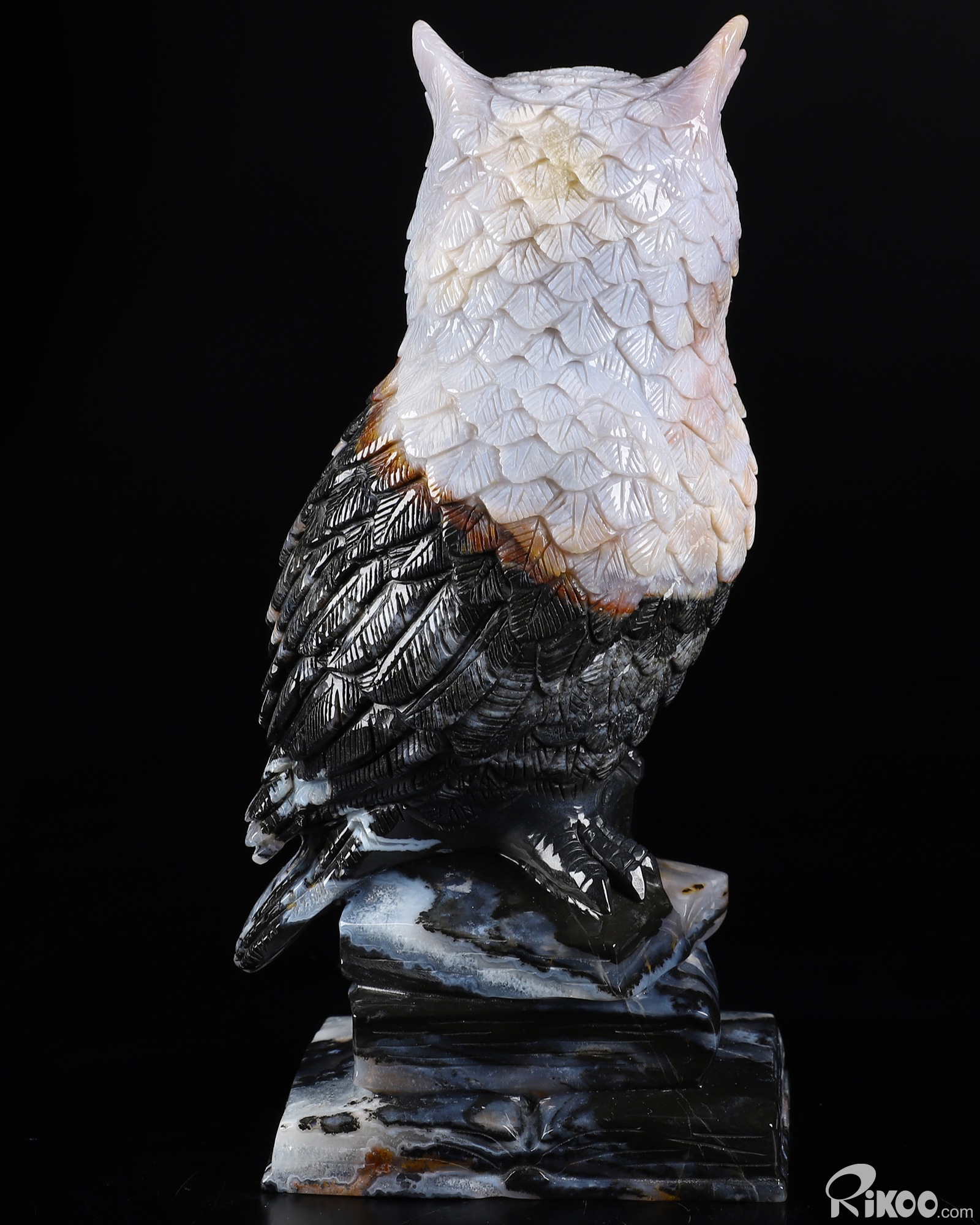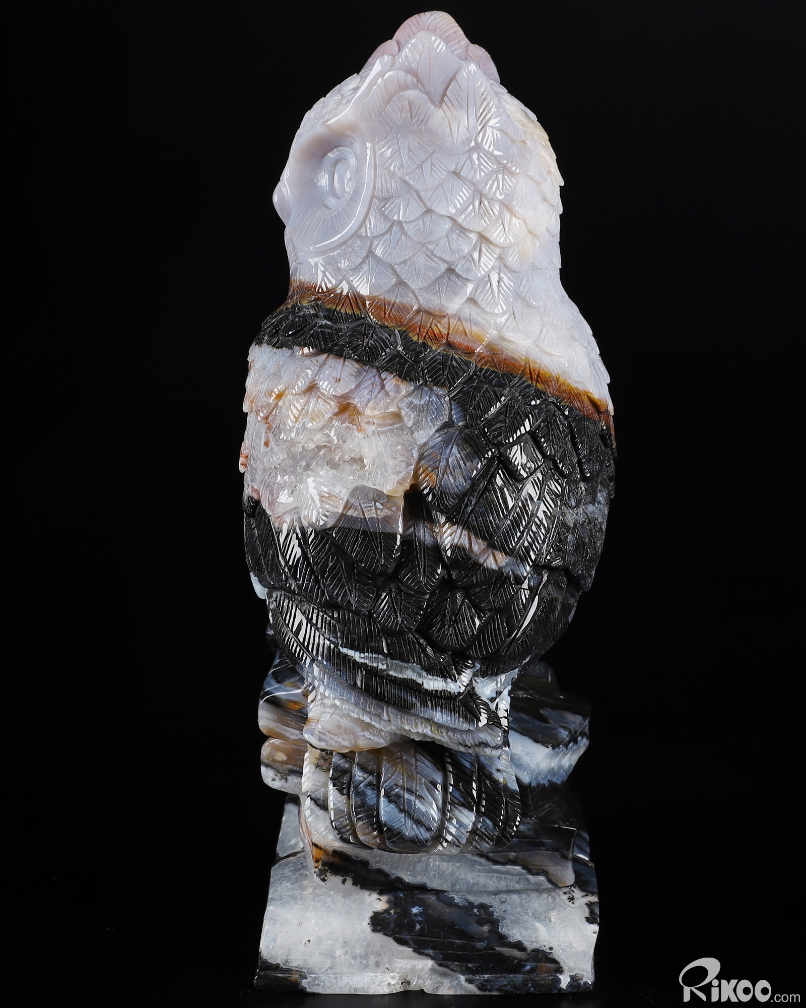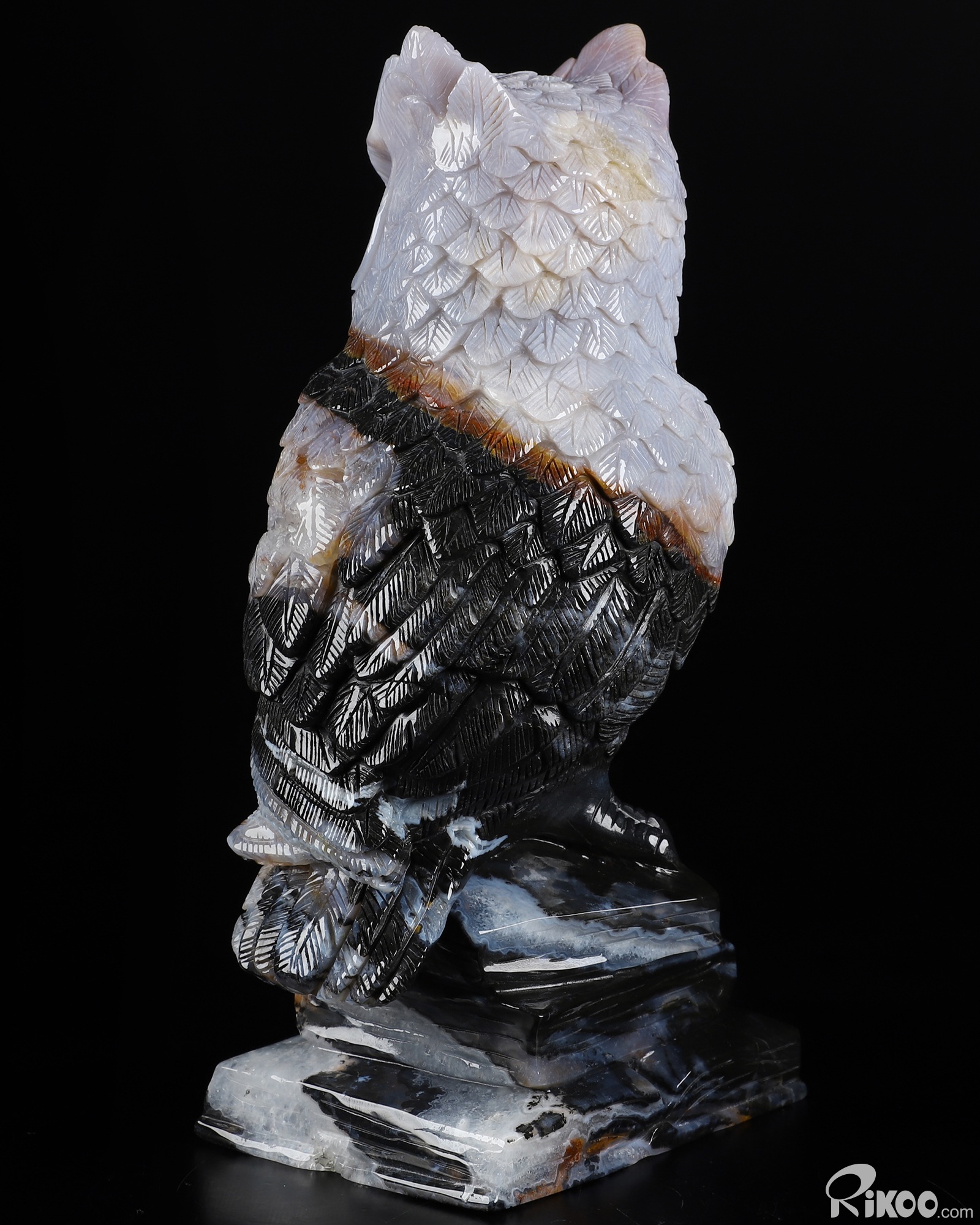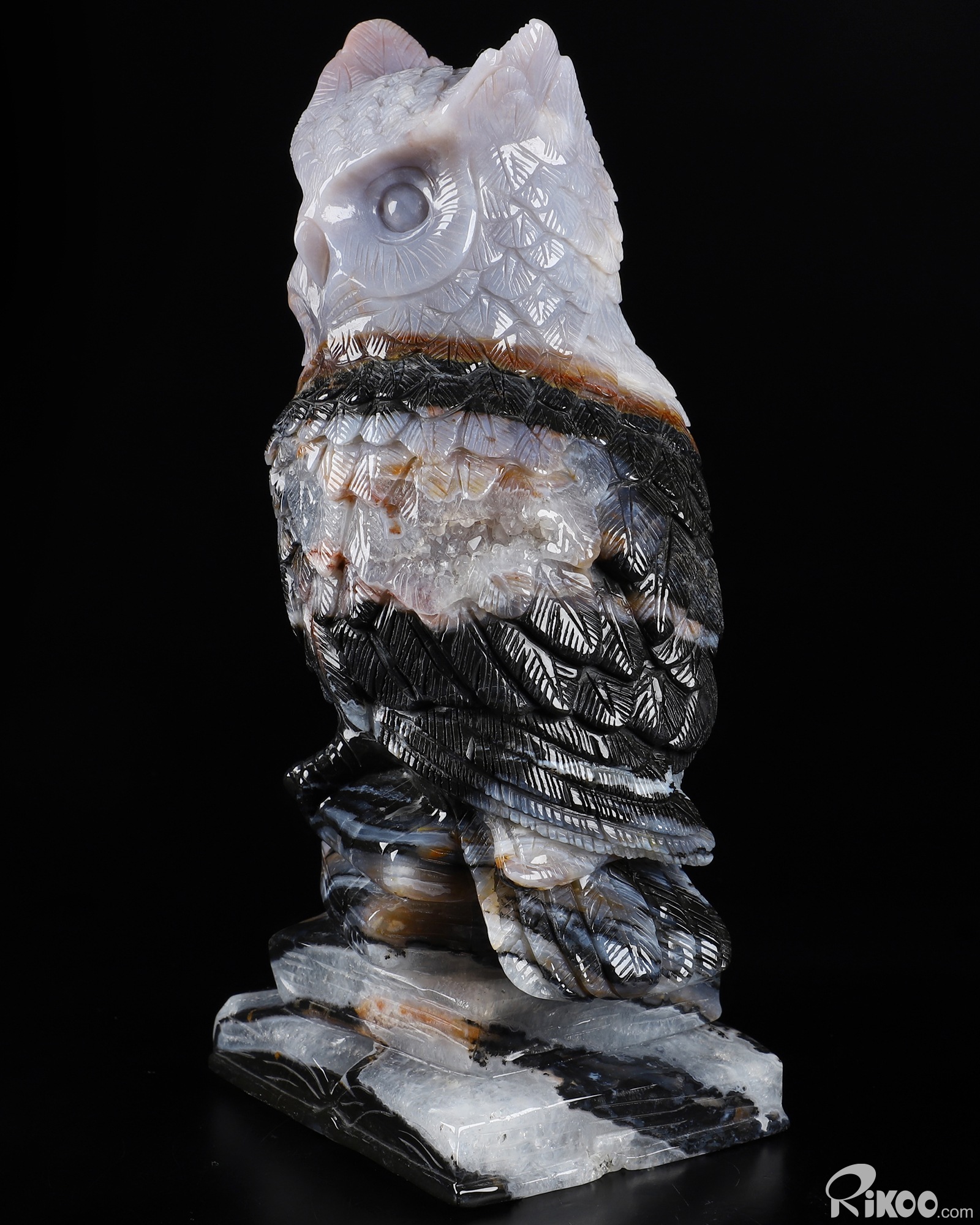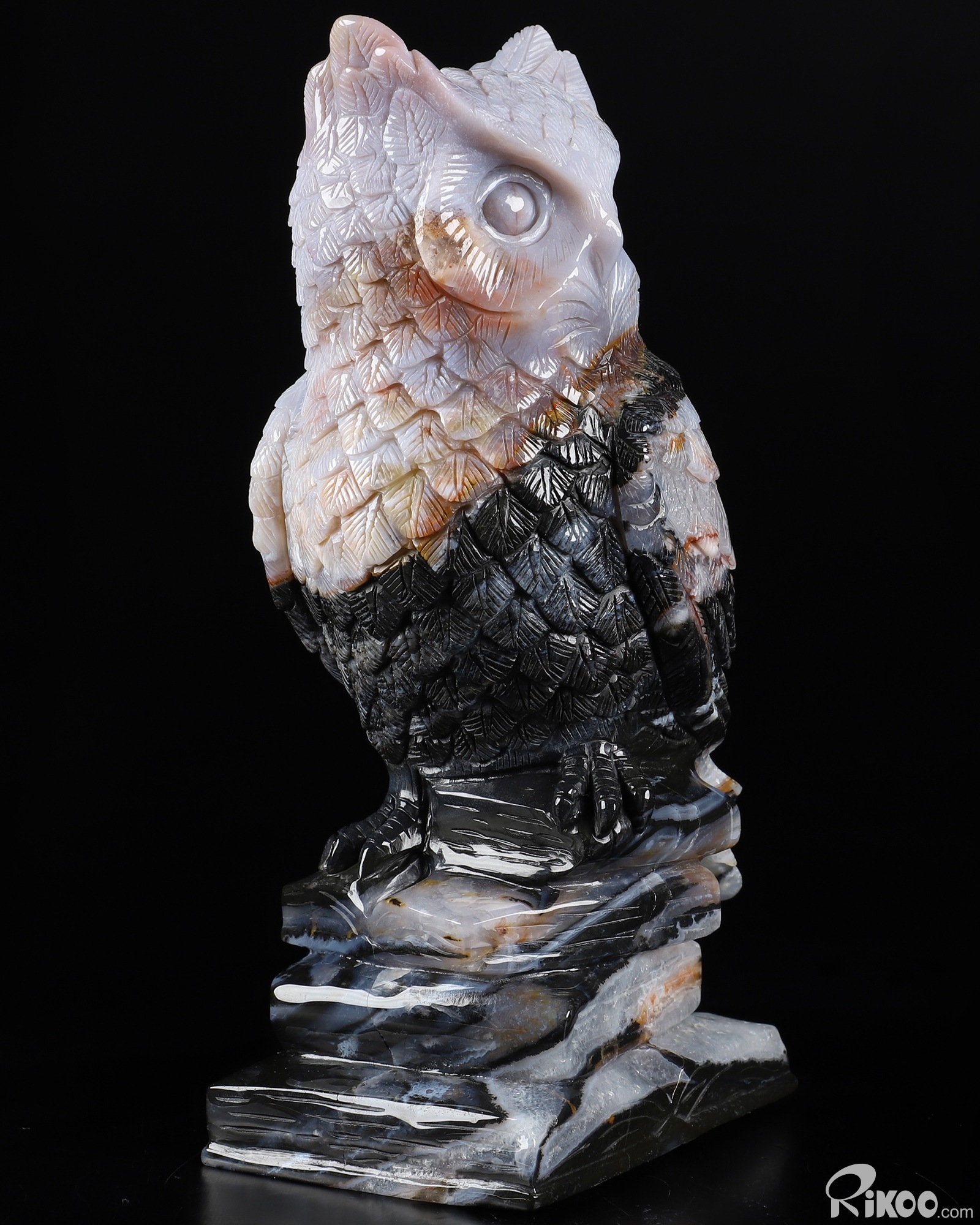 7.7" Black Zebra Agate Carved Crystal Owl Stand On The Book Sculpture, Realistic, Crystal Healing