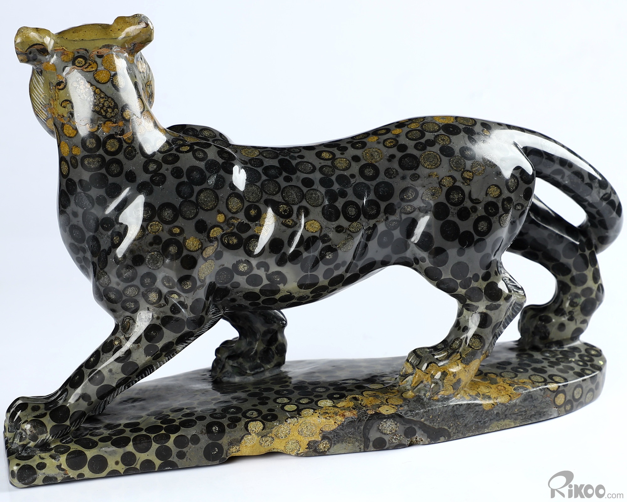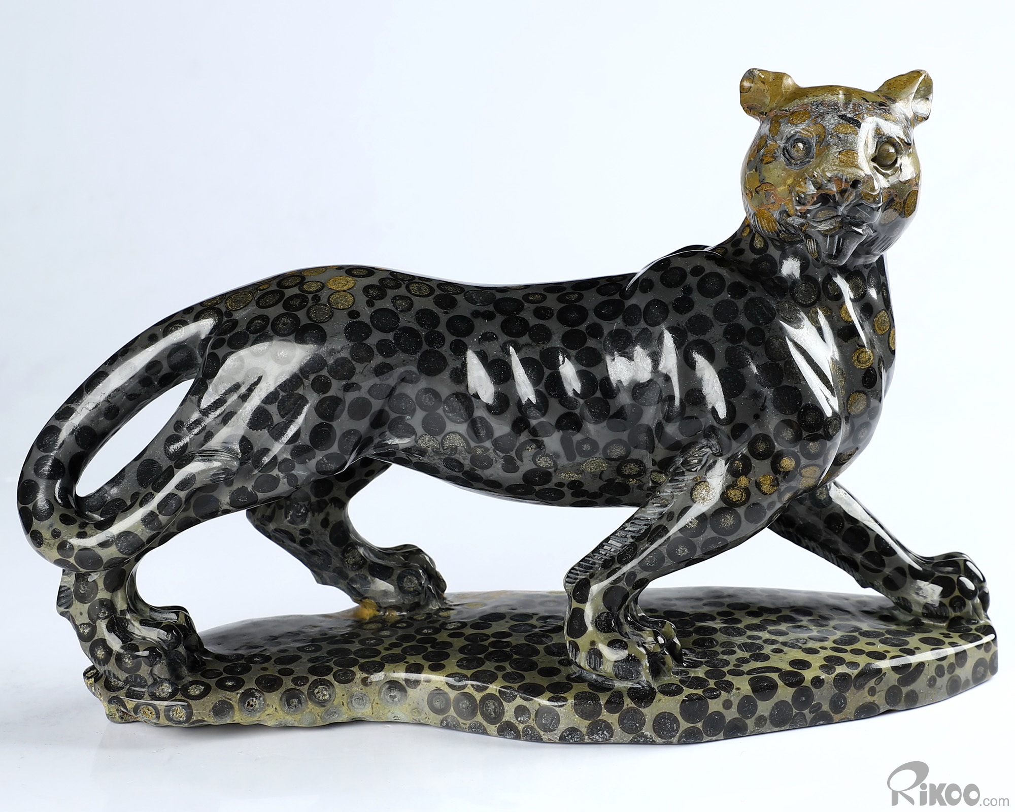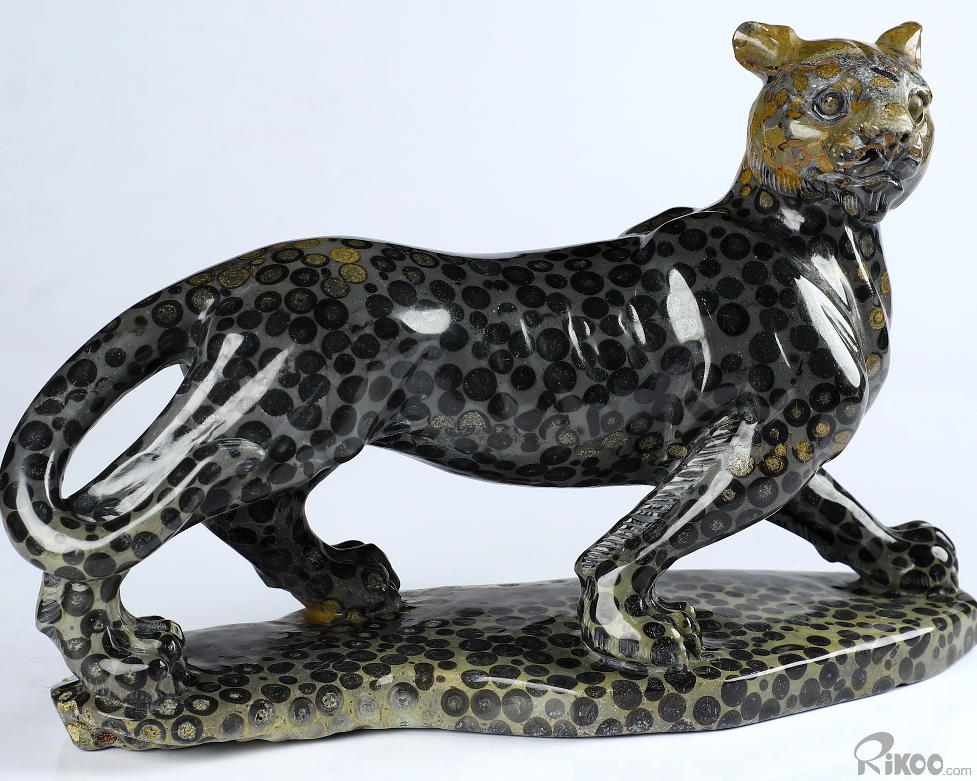 7.7" Coral Fossil Carved Crystal Leopard Sculpture, Crystal Healing