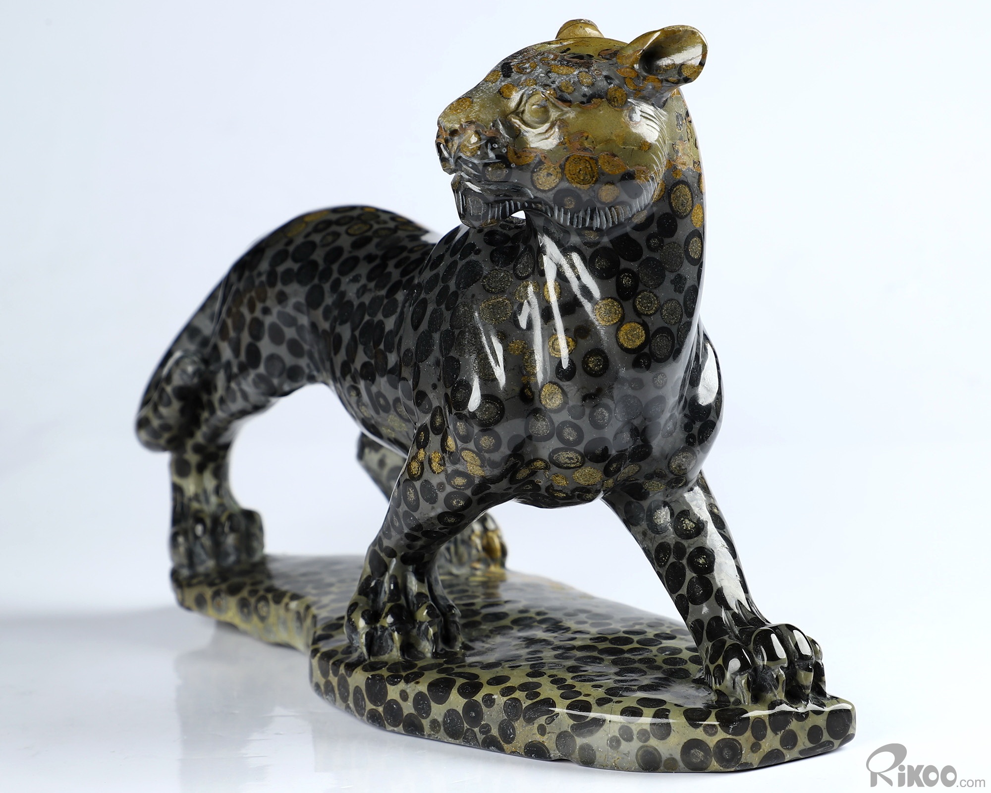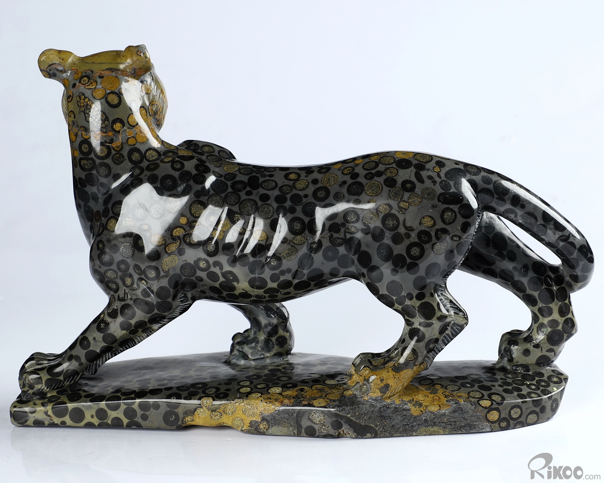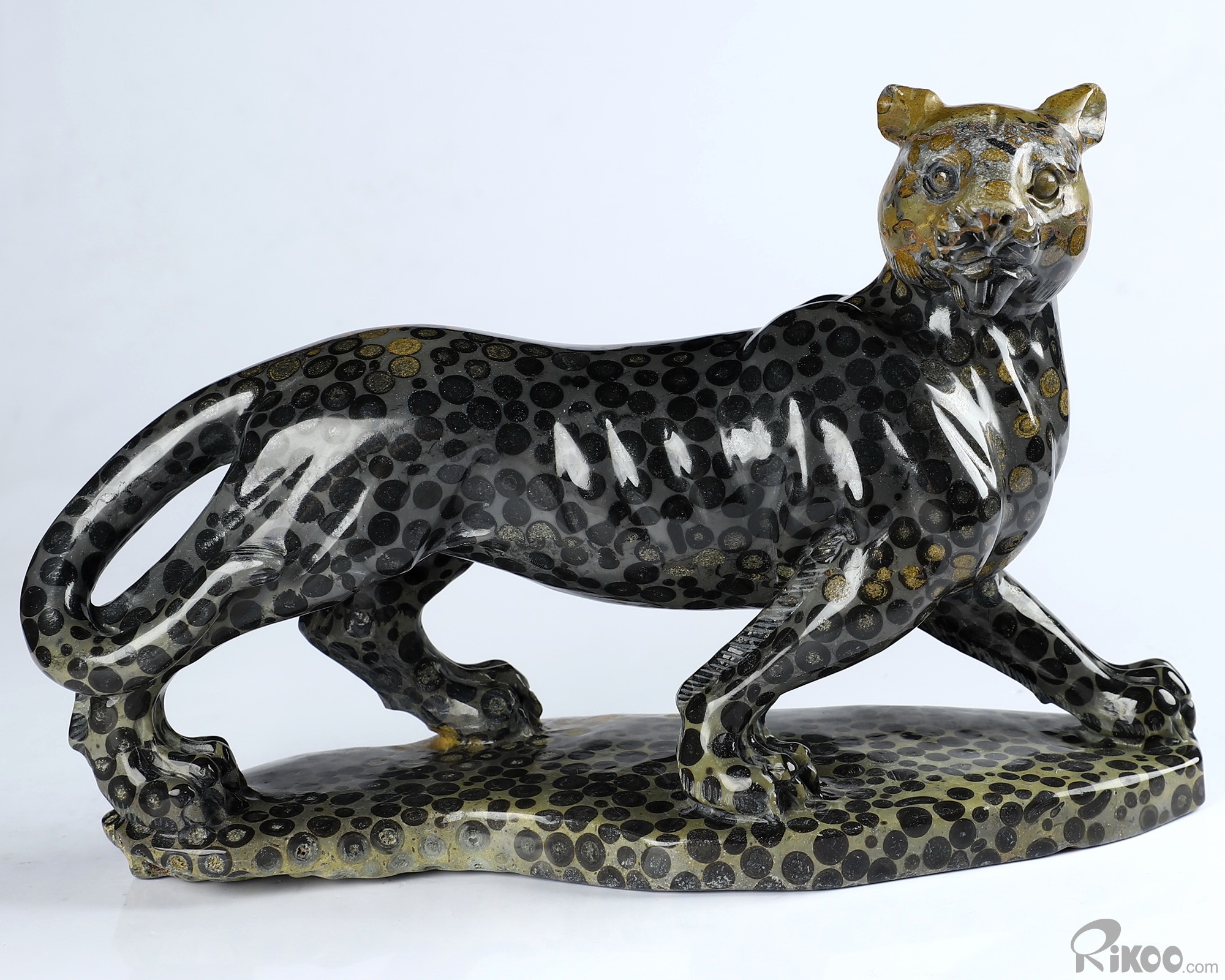 7.7" Coral Fossil Carved Crystal Leopard Sculpture, Crystal Healing