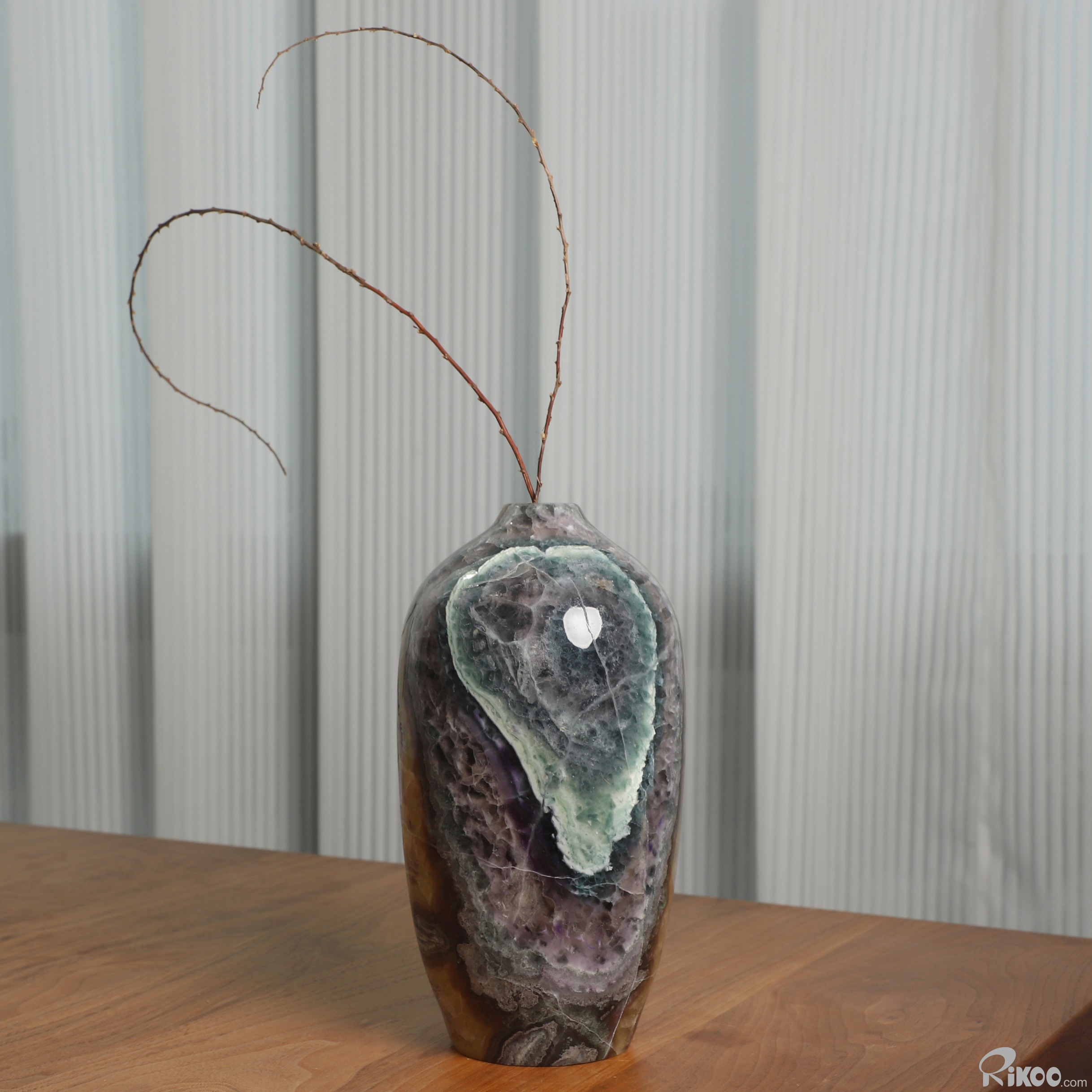 7.7" Fluorite Hand Carved Crystal Vase Sculpture, Crystal Healing