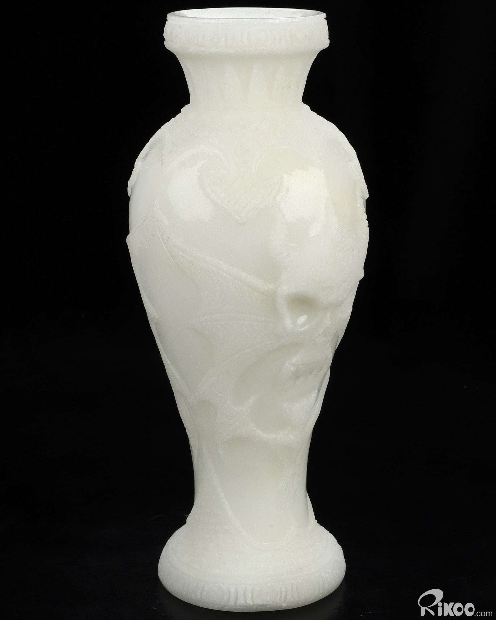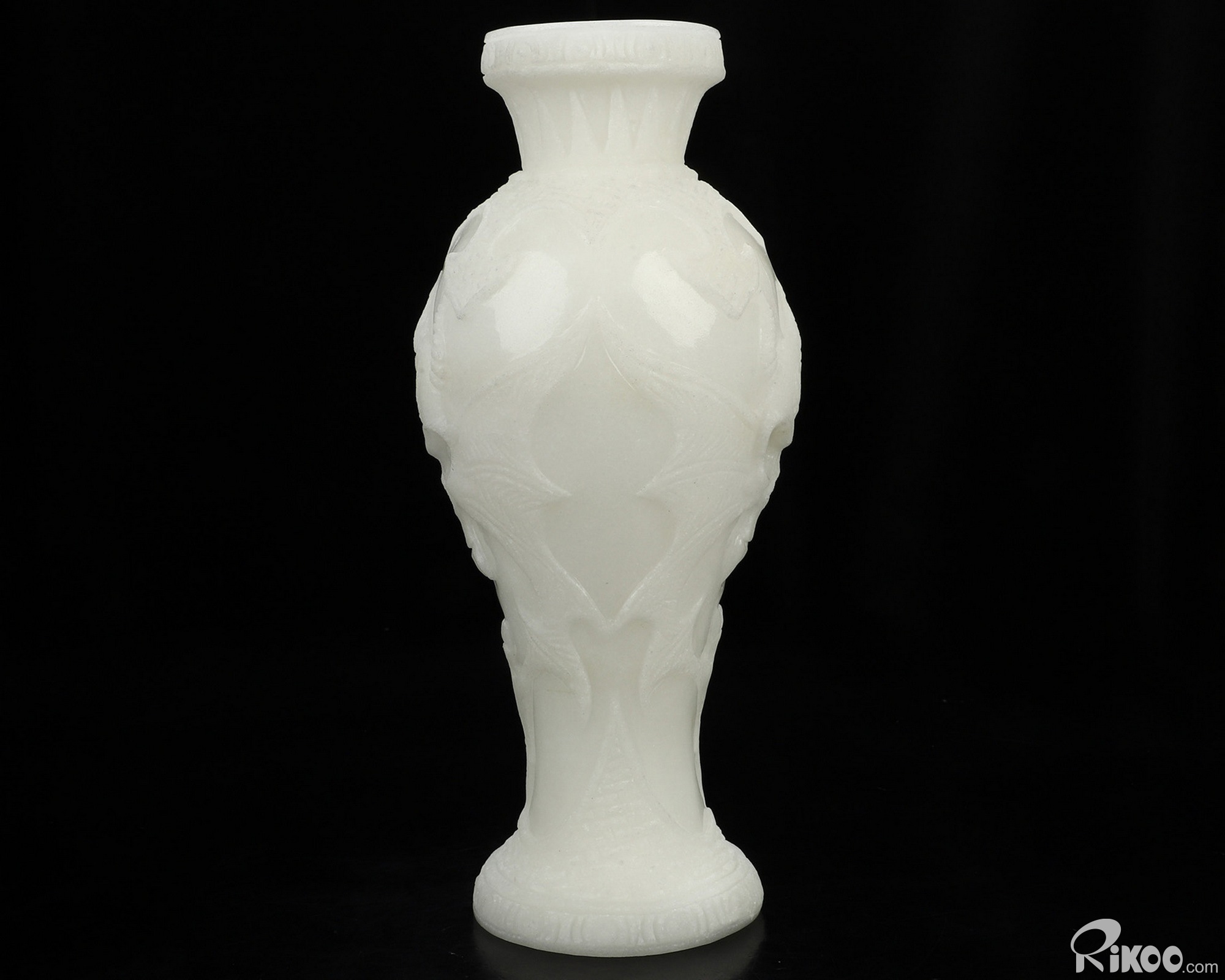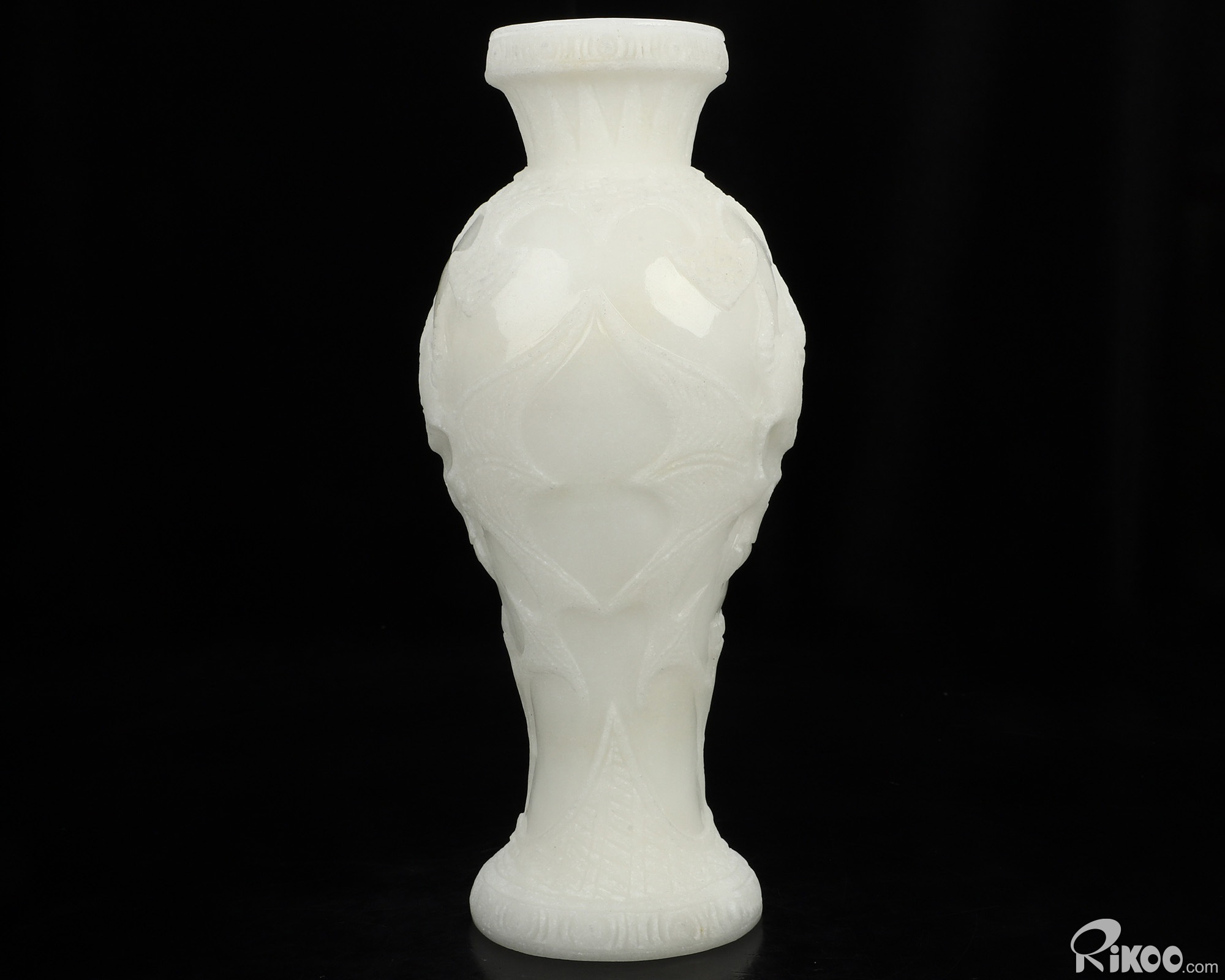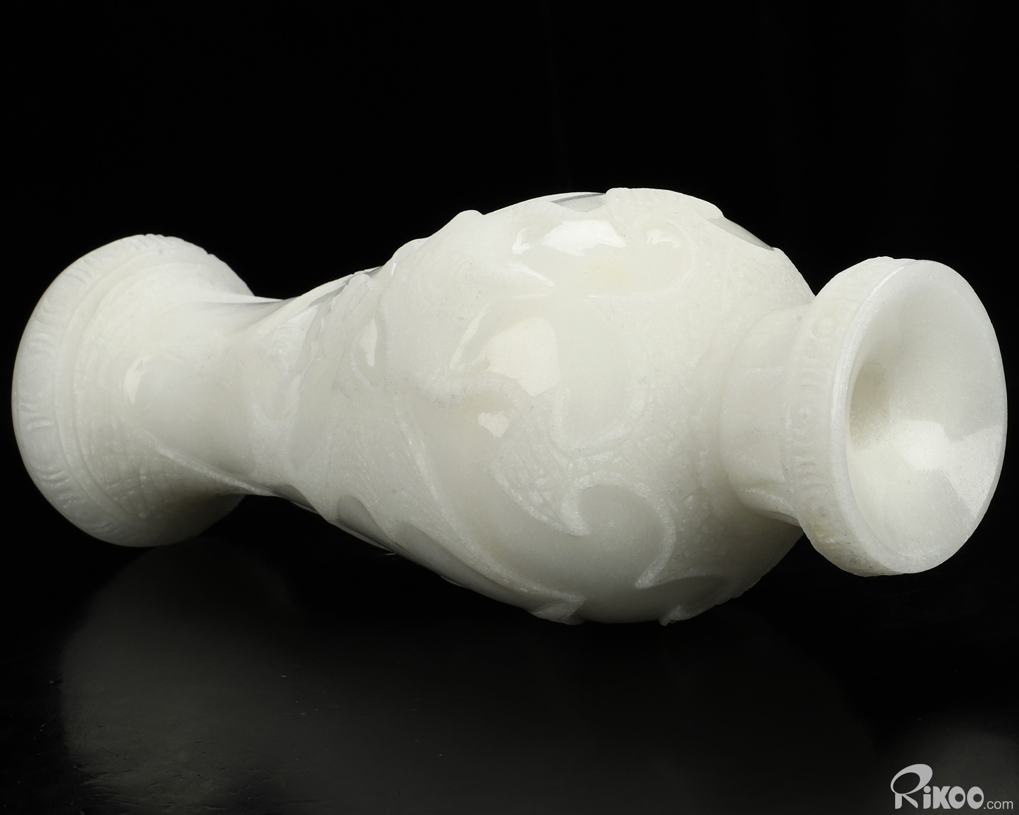 7.7" White Jade Hand Carved Crystal Vase Sculpture, Crystal Healing