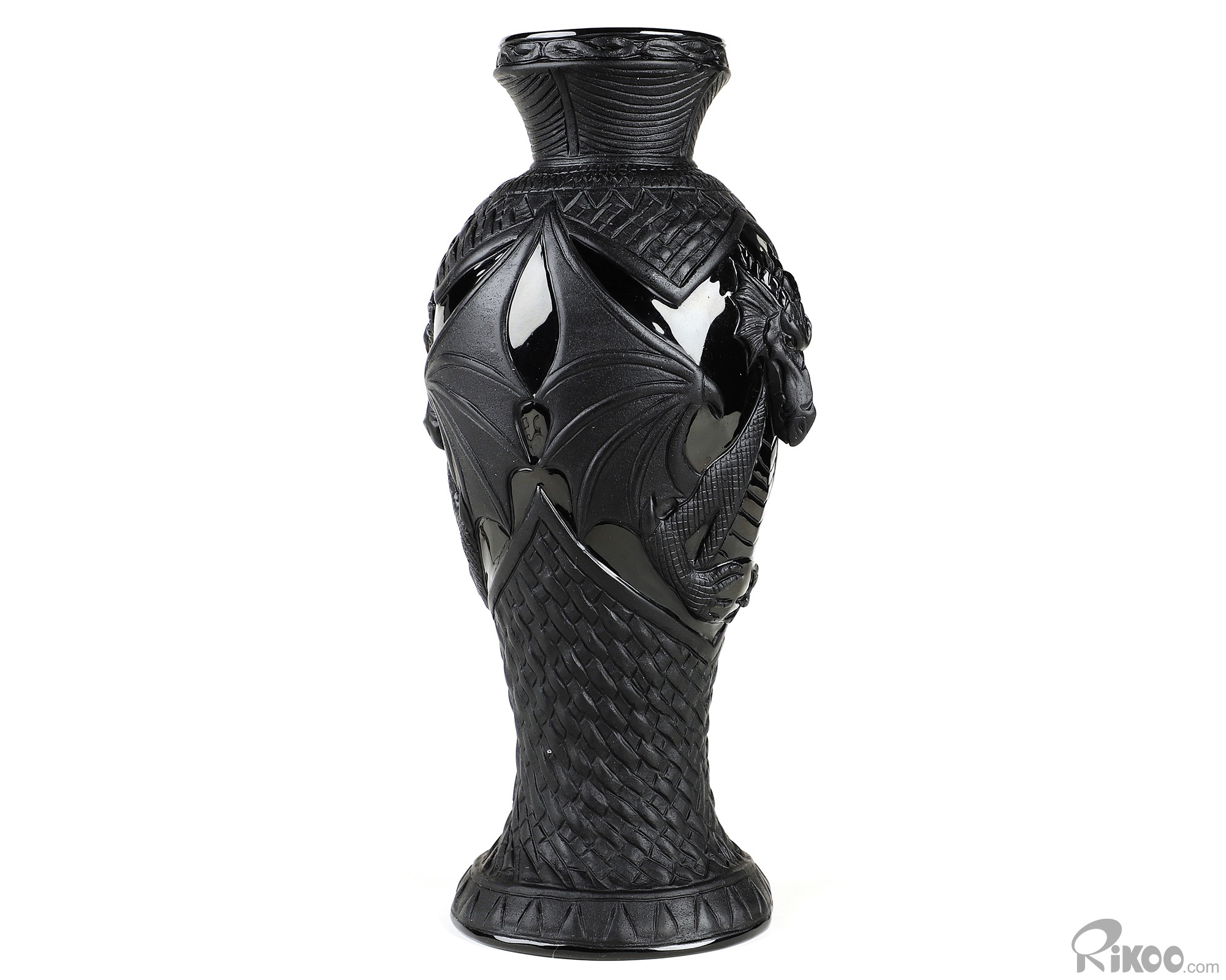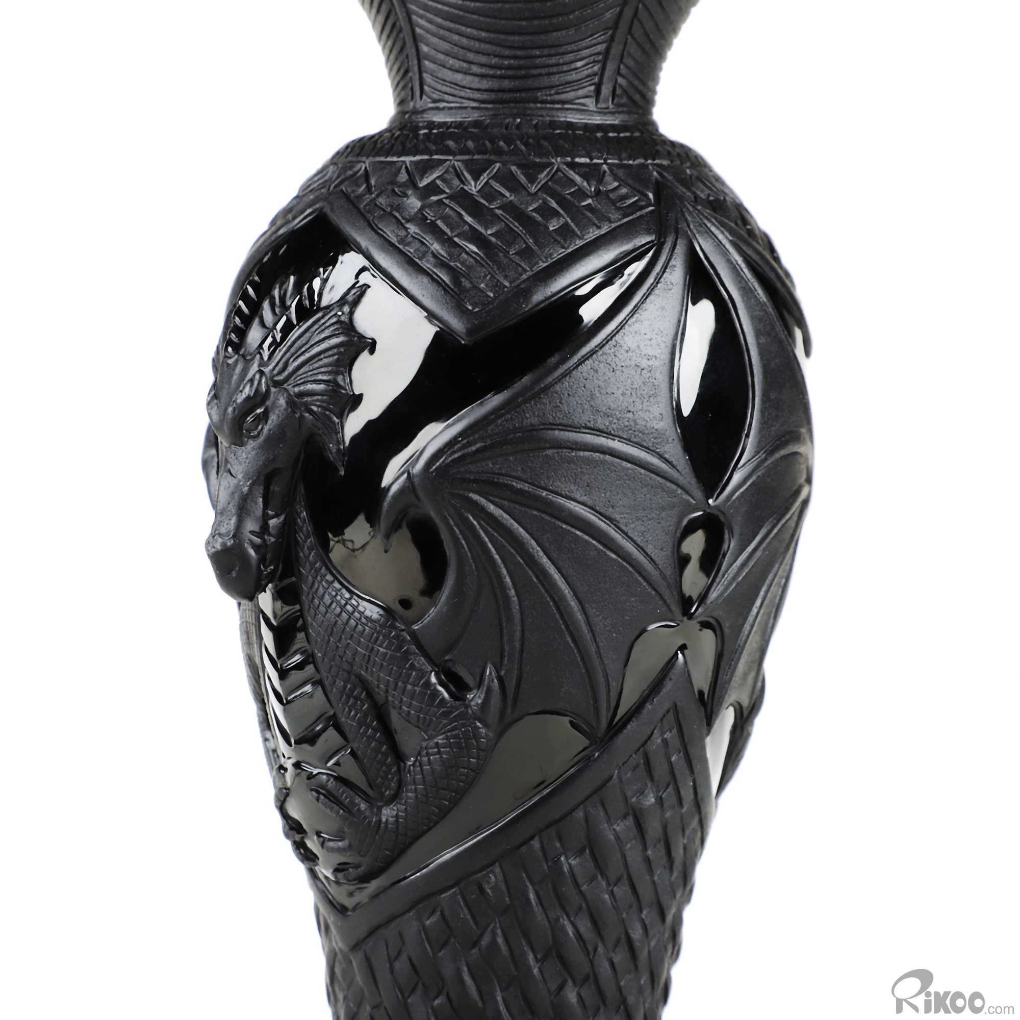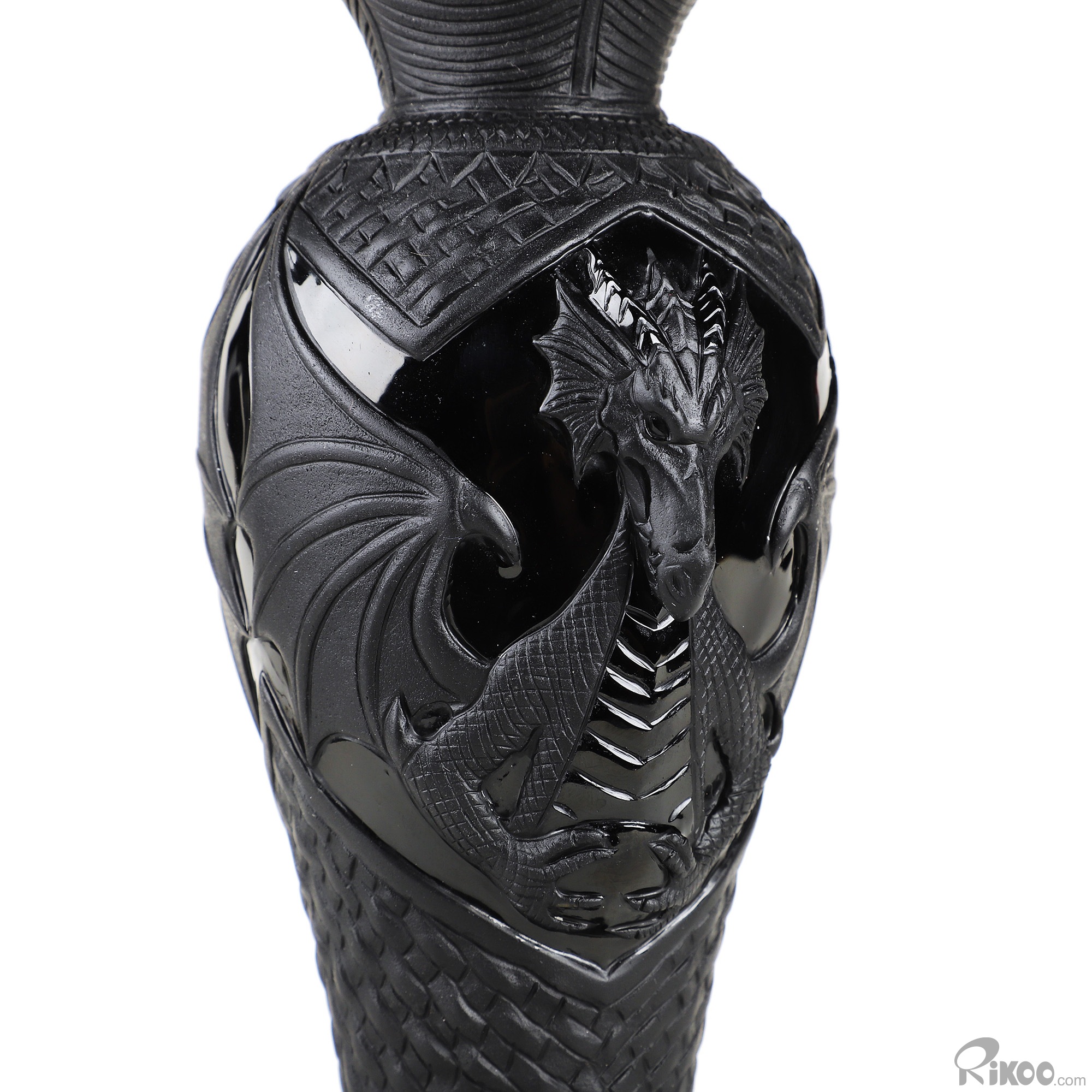 7.8" Black Obsidian Hand Carved Crystal Dragon Vase Sculpture, Crystal Healing