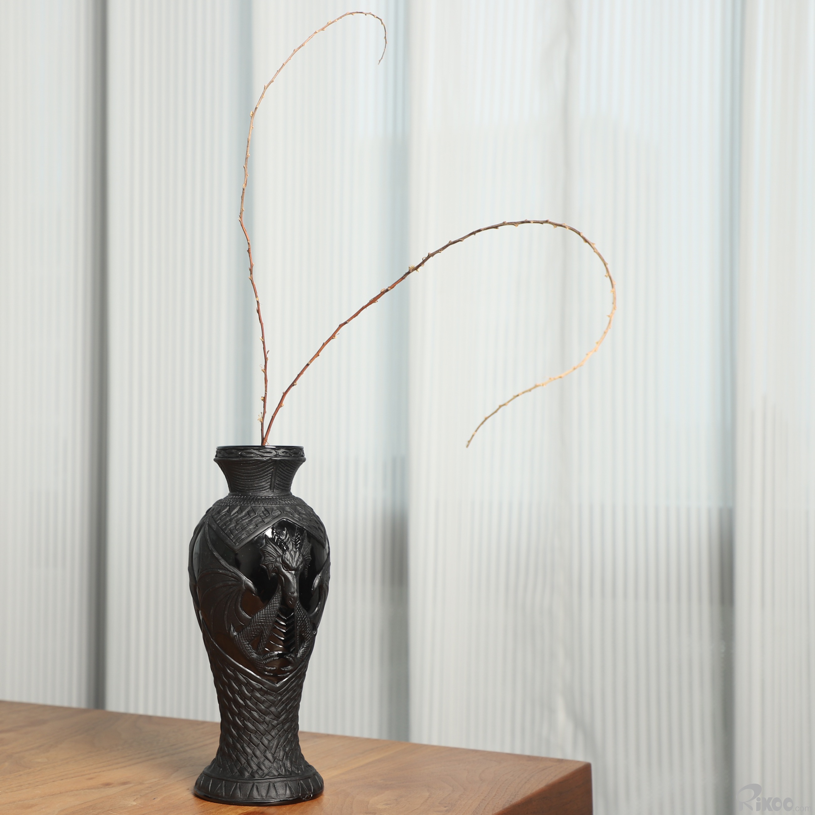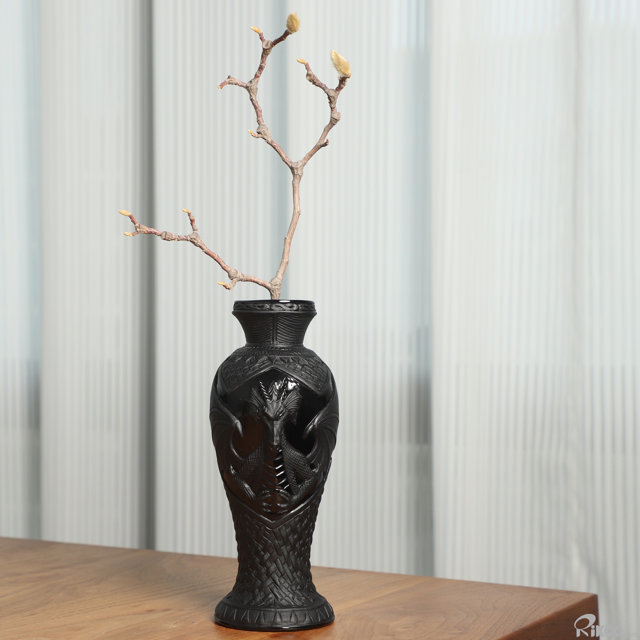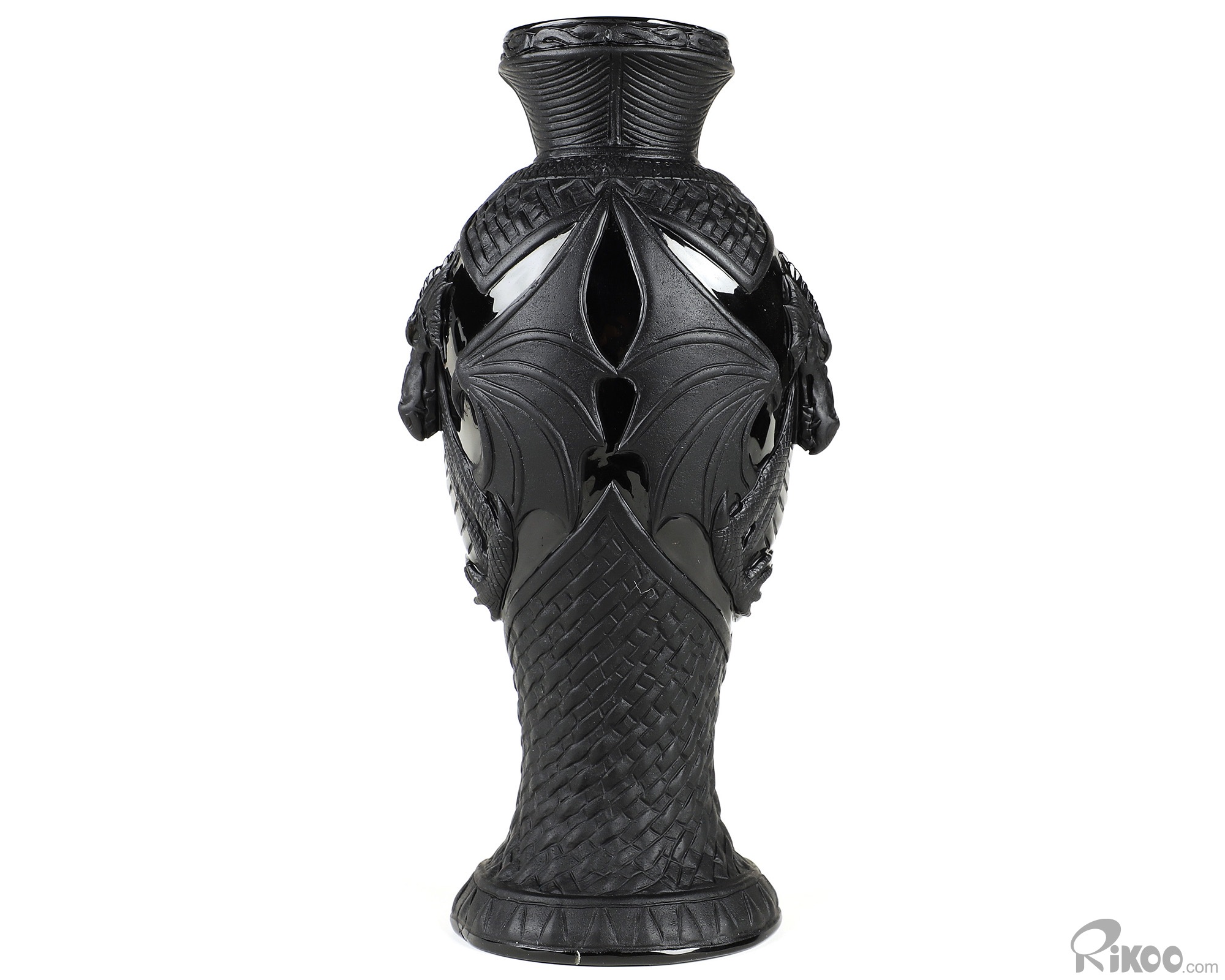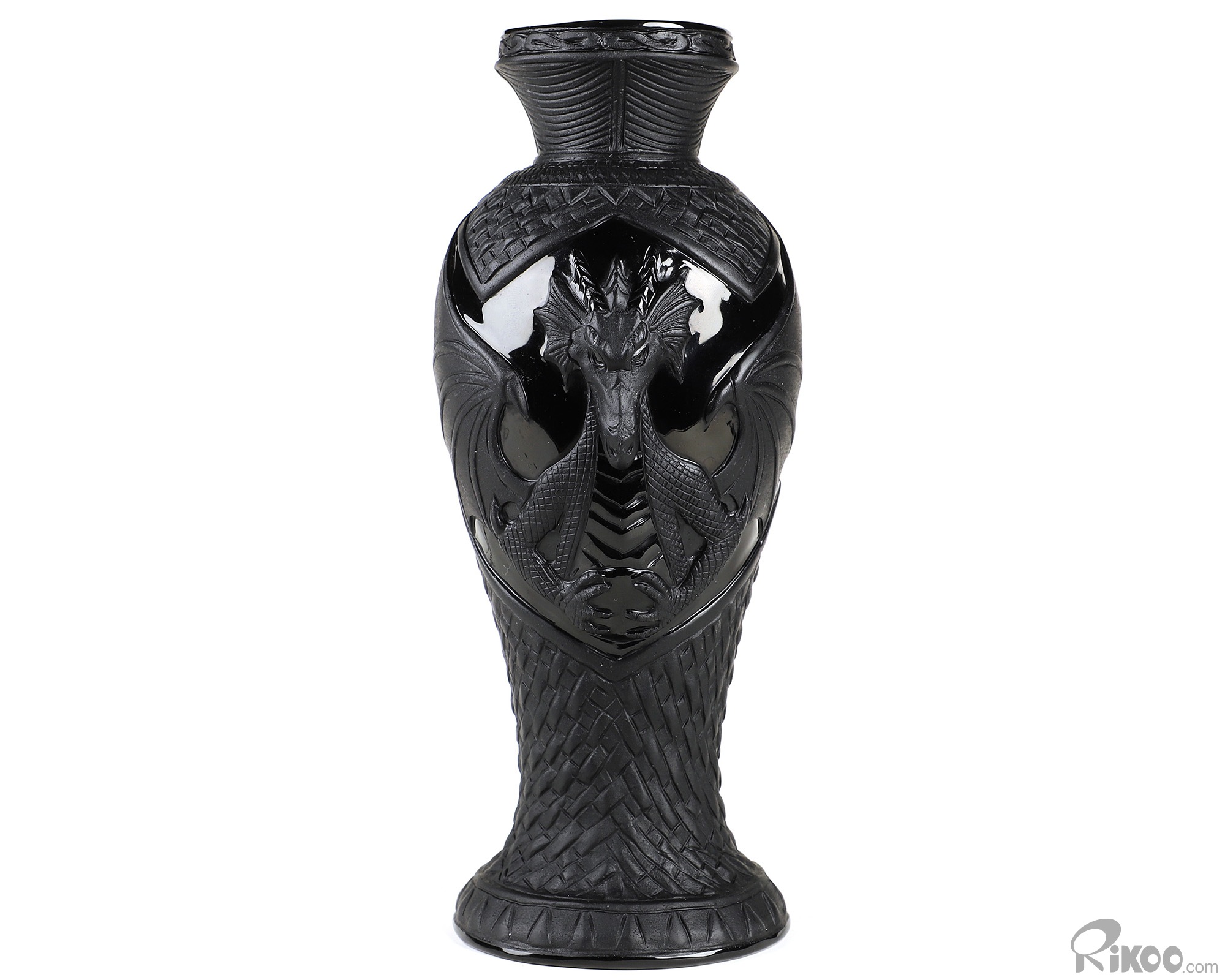 7.8" Black Obsidian Hand Carved Crystal Dragon Vase Sculpture, Crystal Healing