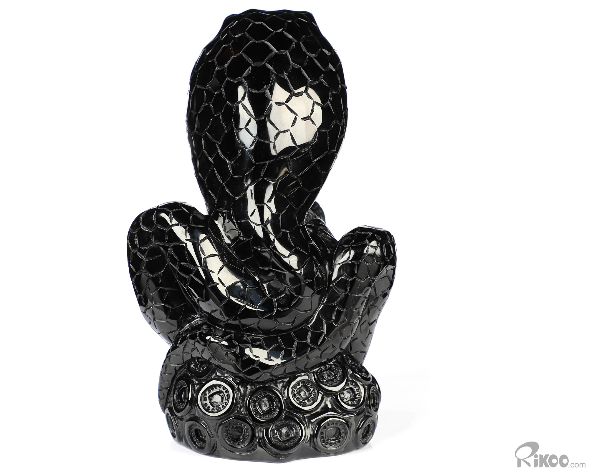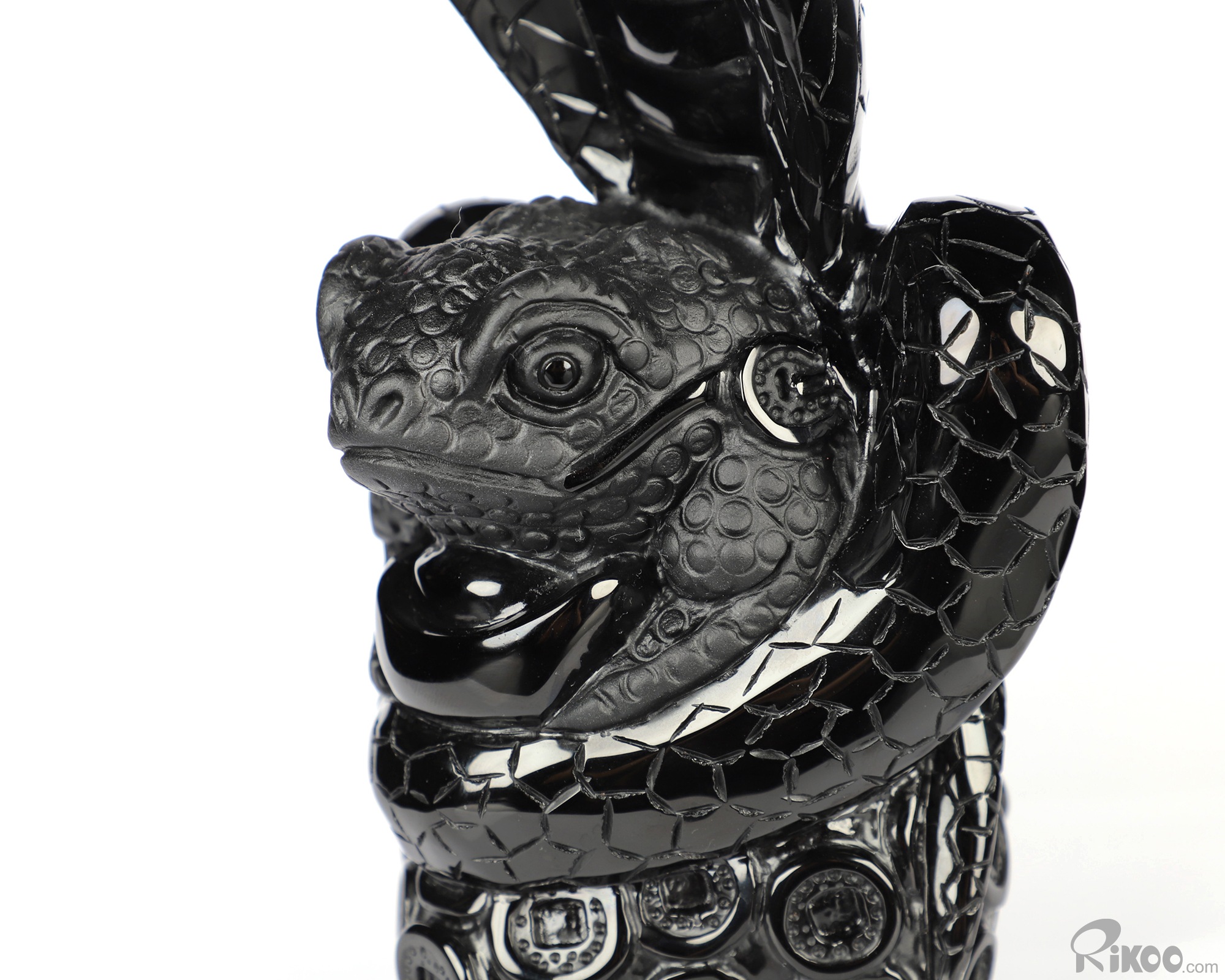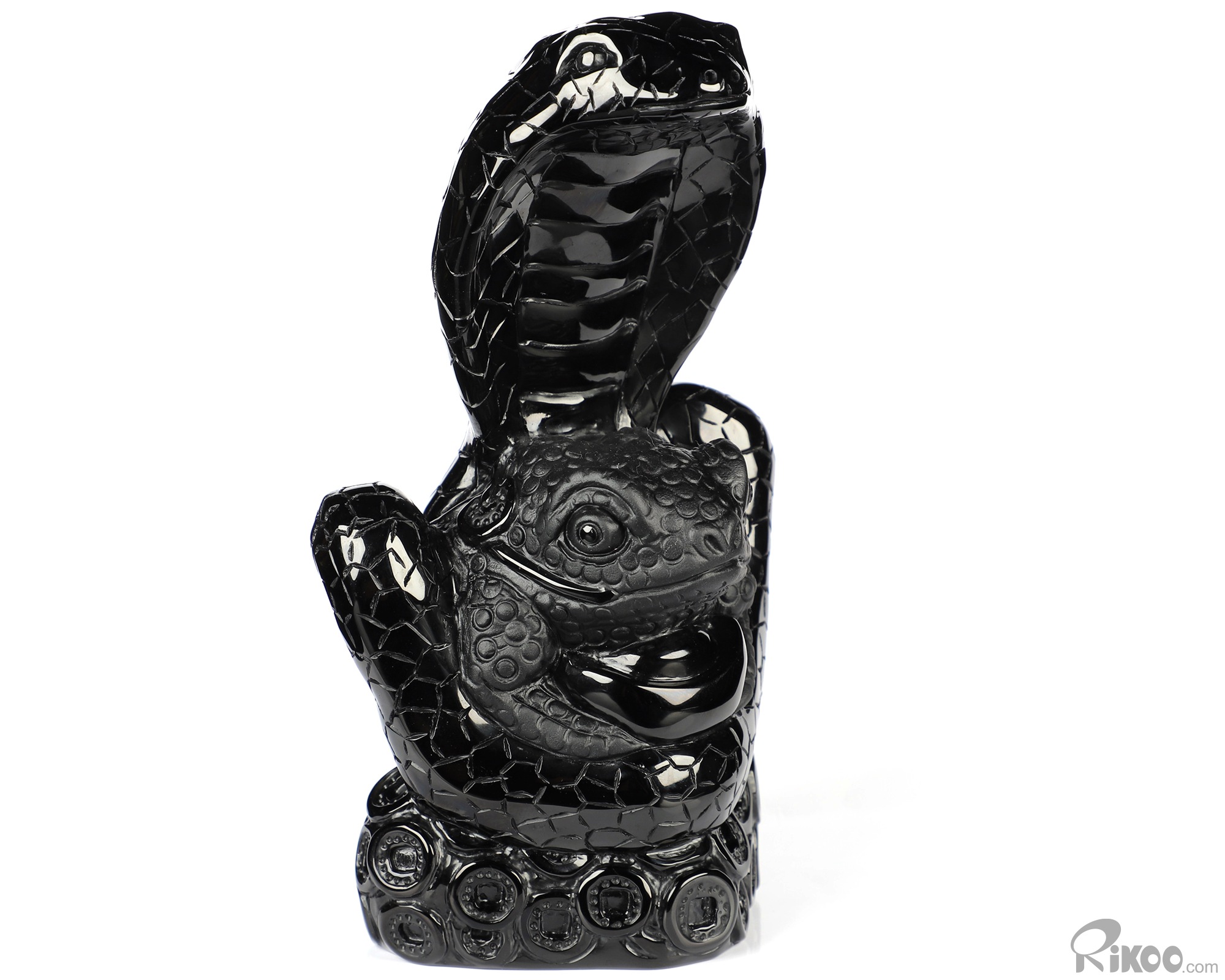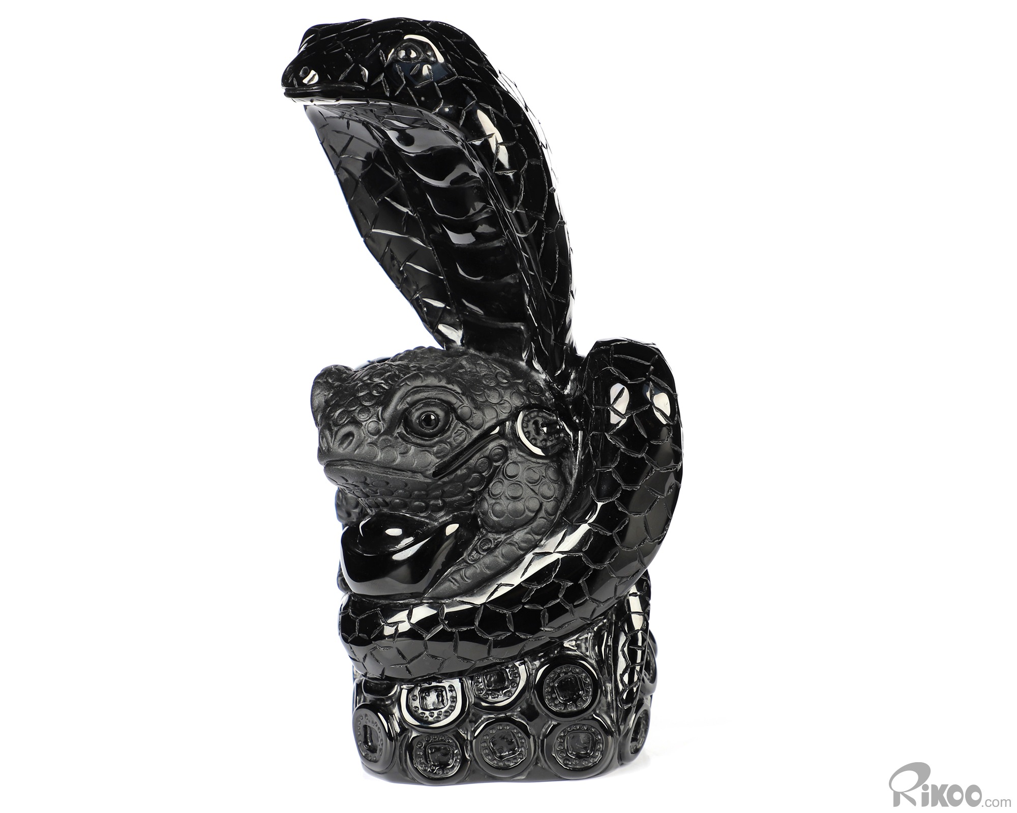 7.8" Black Obsidian Hand Carved Crystal Snake and Toad Sculpture, Crystal Healing