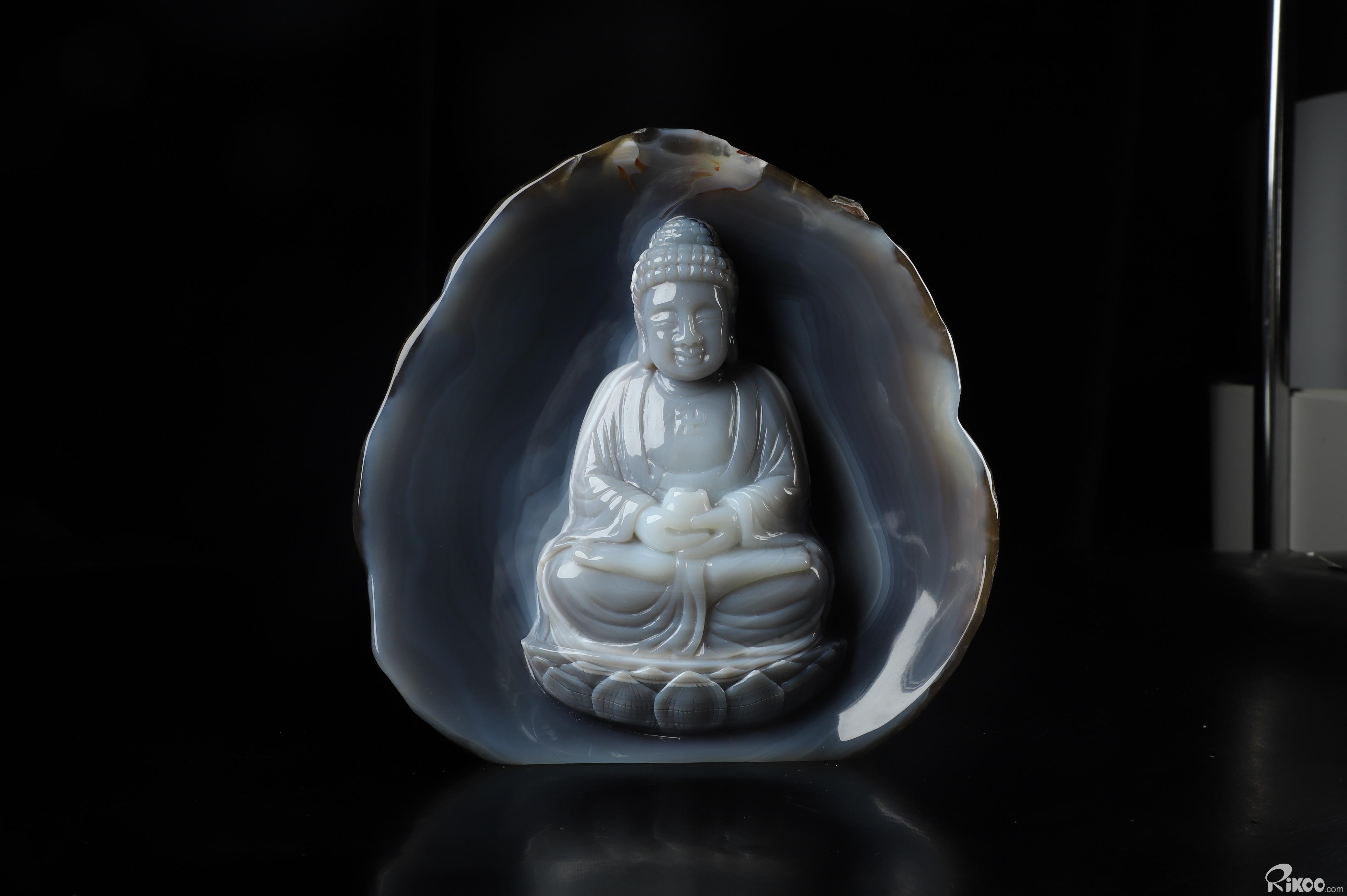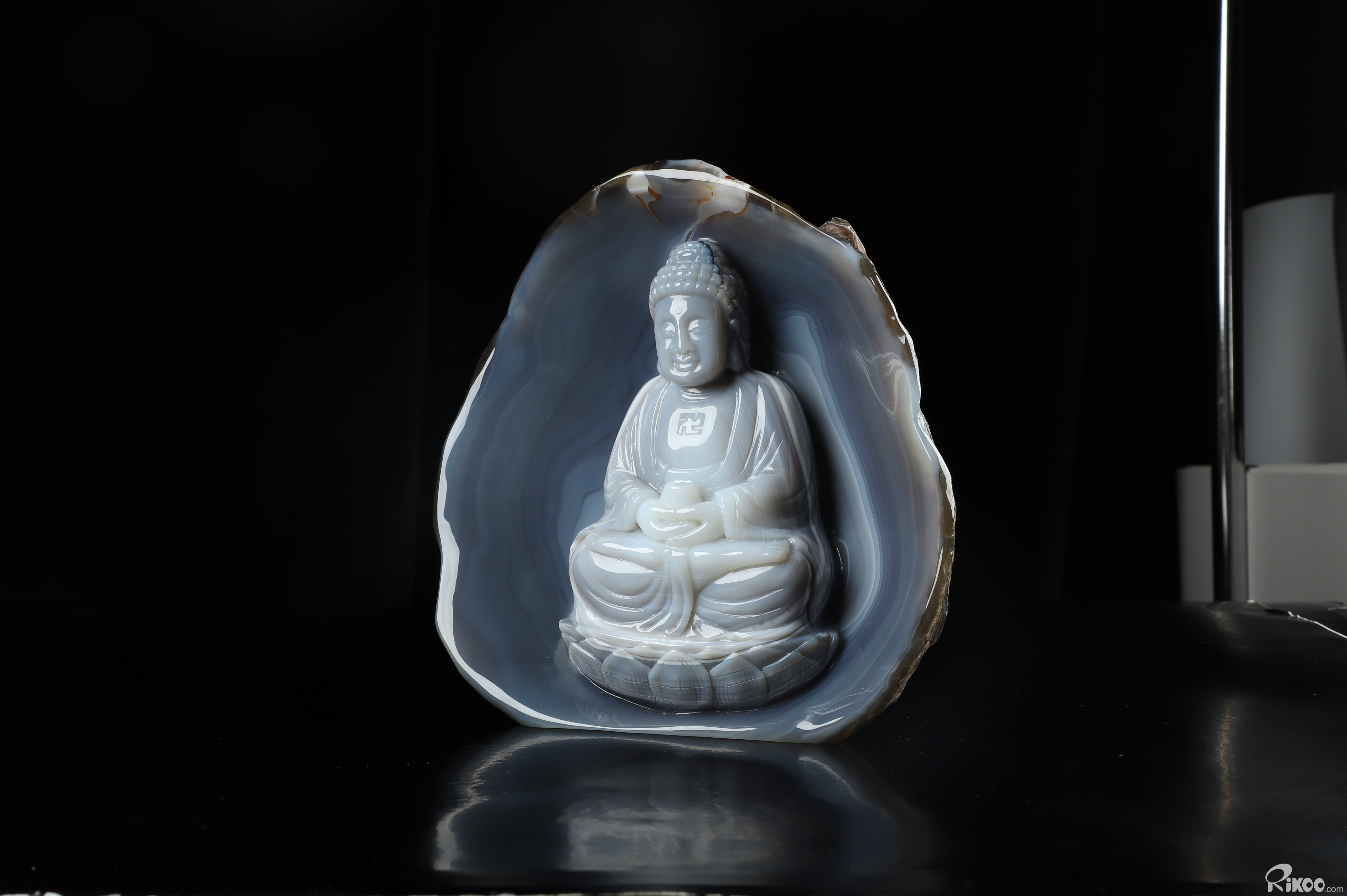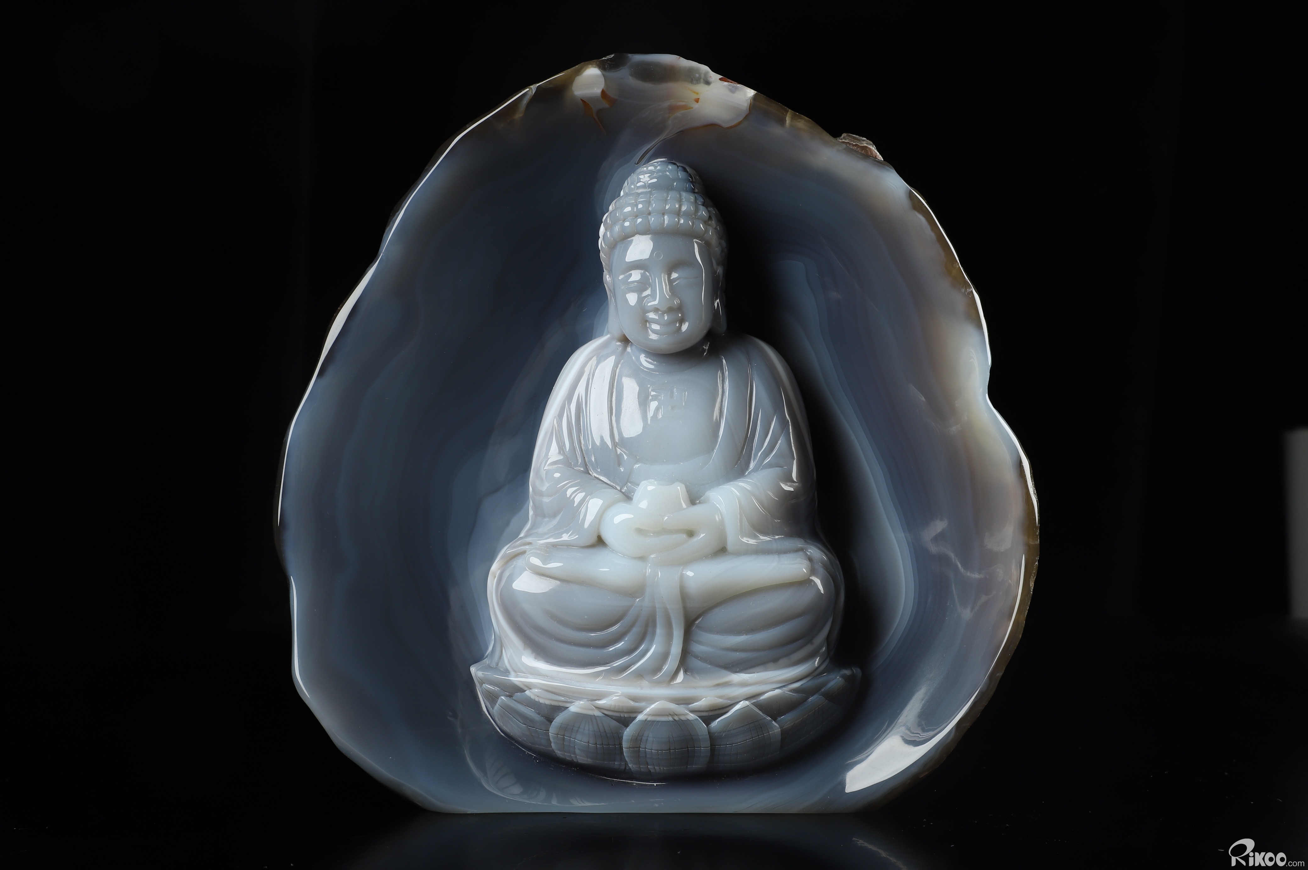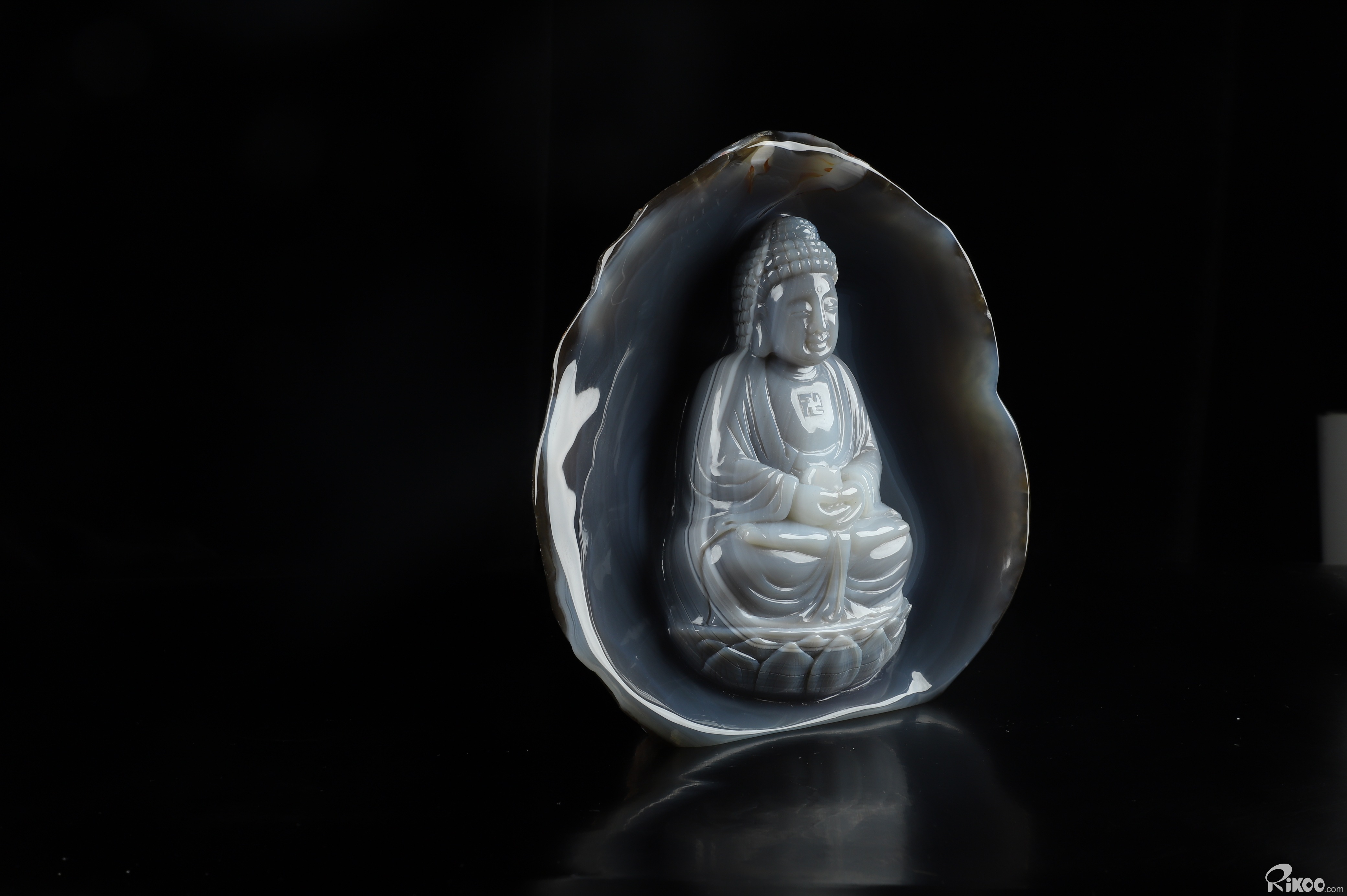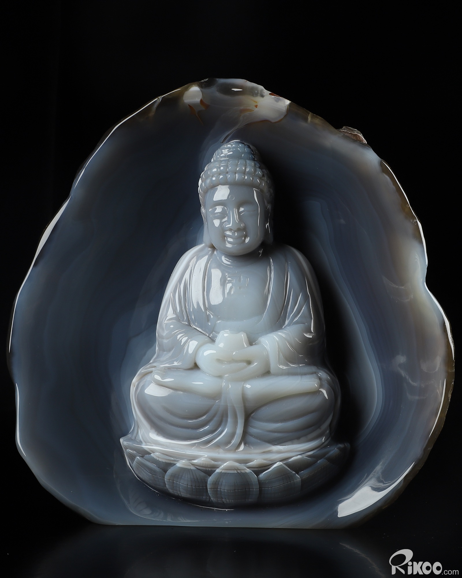You are looking at a Gray & White Agate kwan-yin. The kwan-yin is 7.8 inches long from top to bottom.