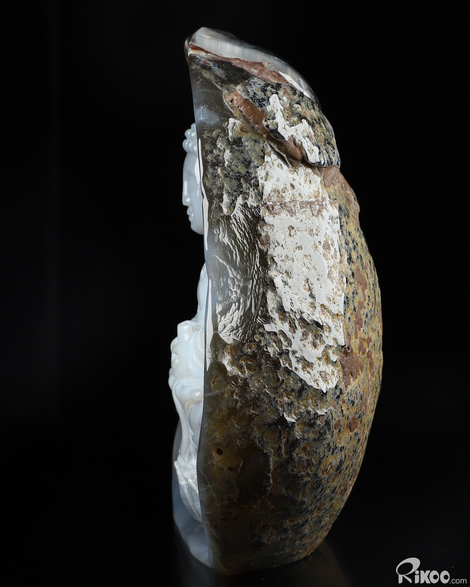 7.8" Gray & White Agate Hand Carved Crystal Kwan-yin Sculpture, Crystal Healing