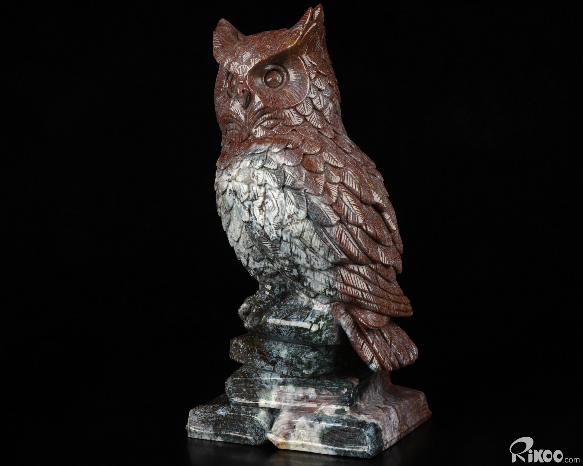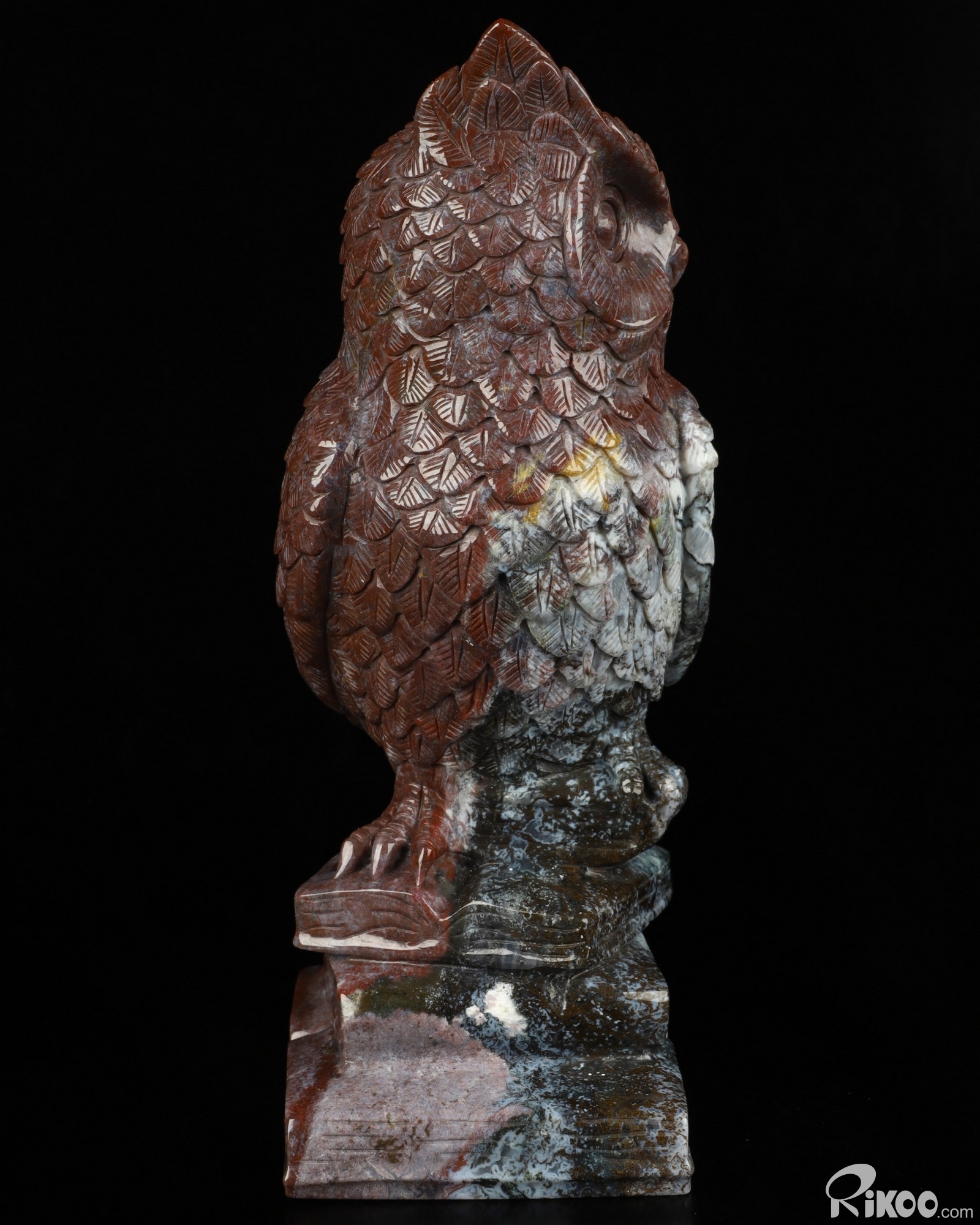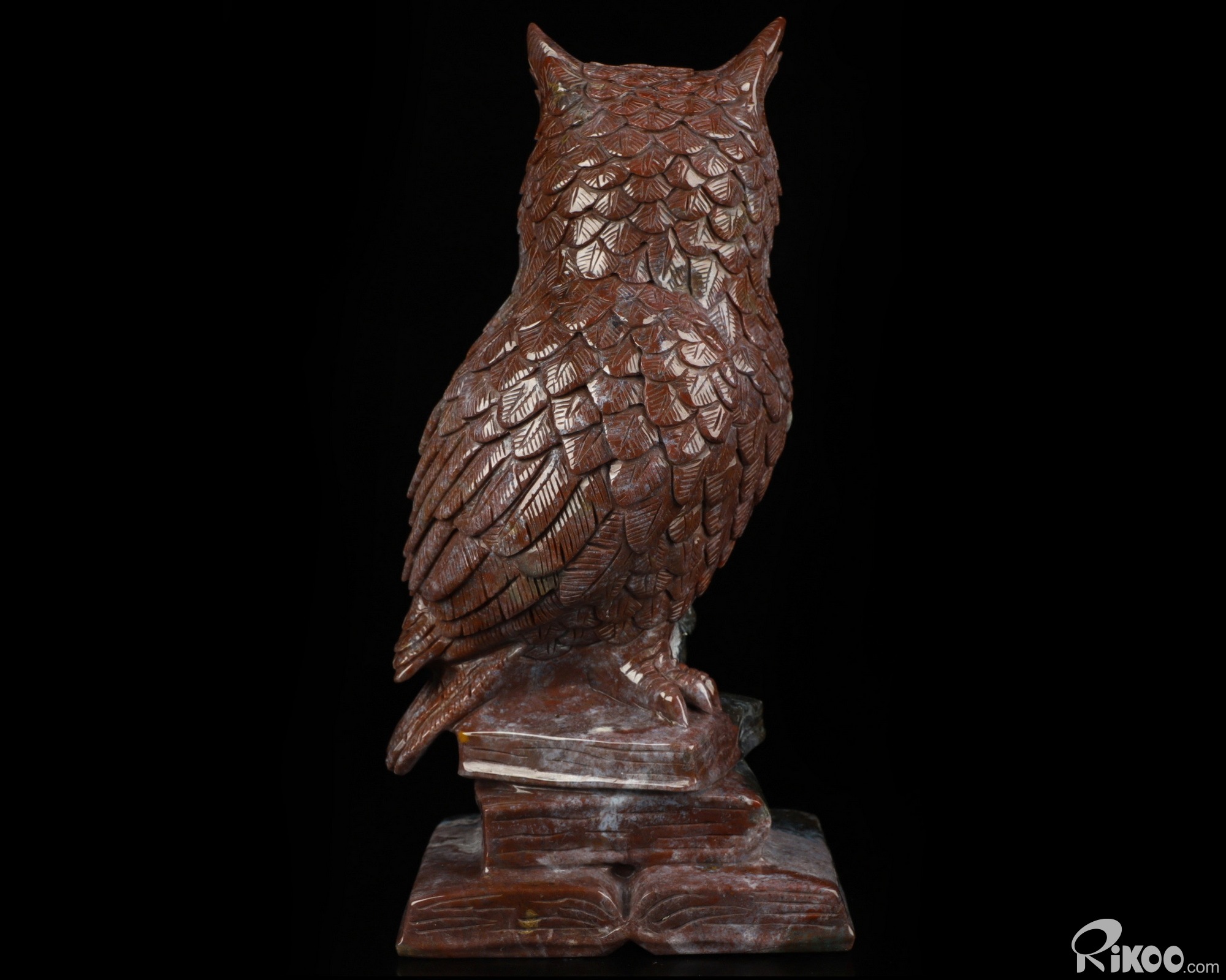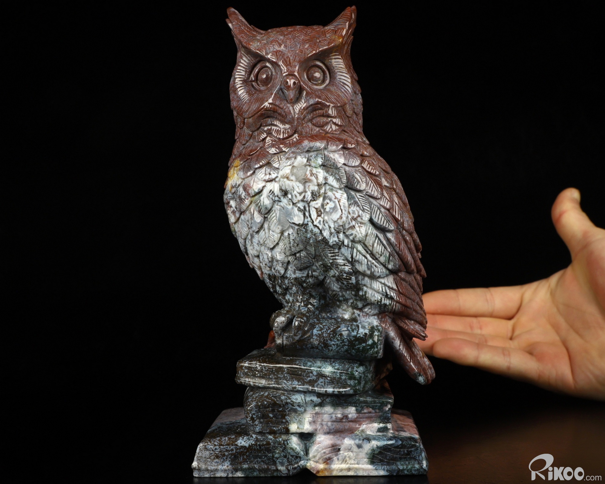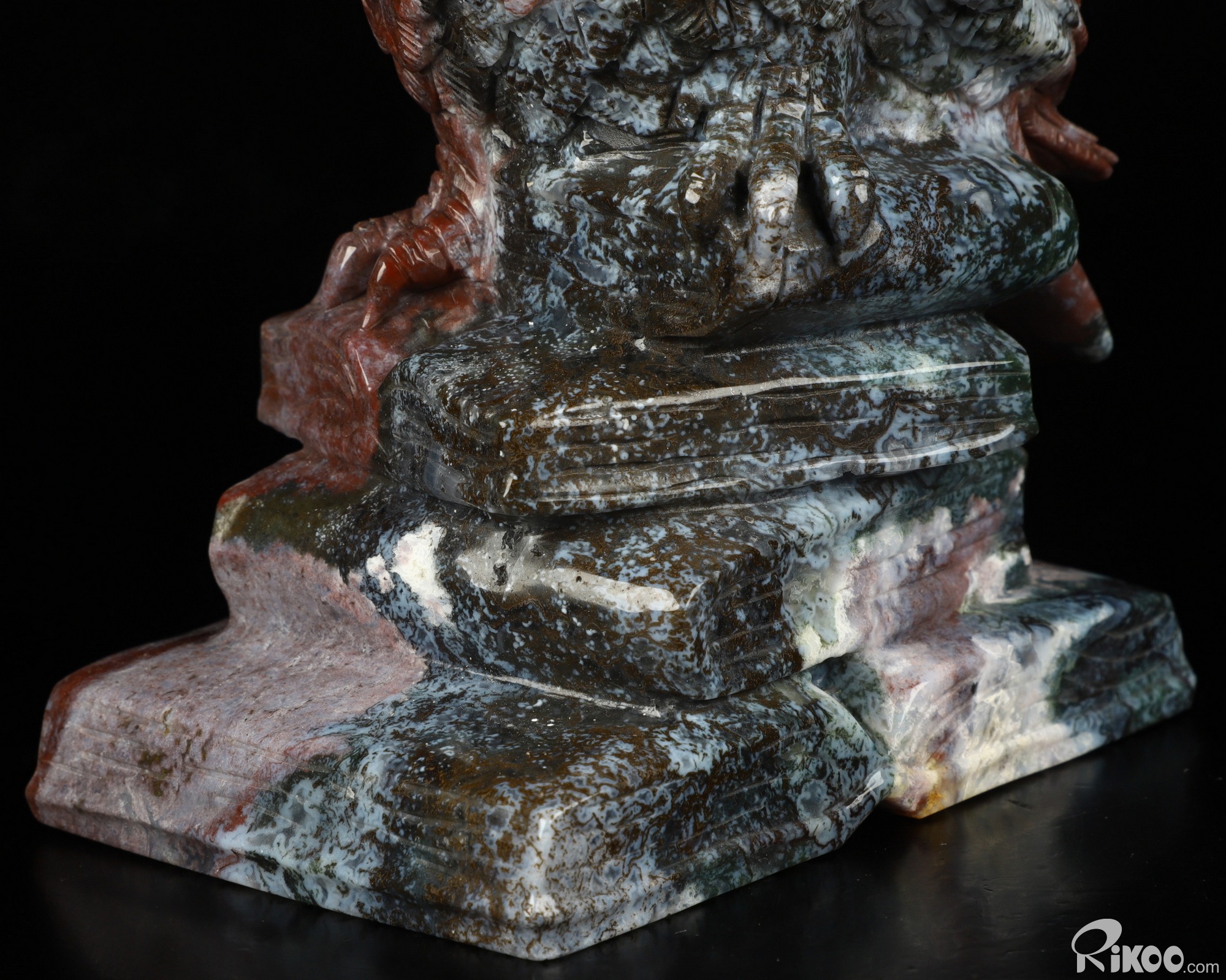7.8" Indian Agate Carved Crystal Owl Stand On The Book Sculpture, Realistic, Crystal Healing