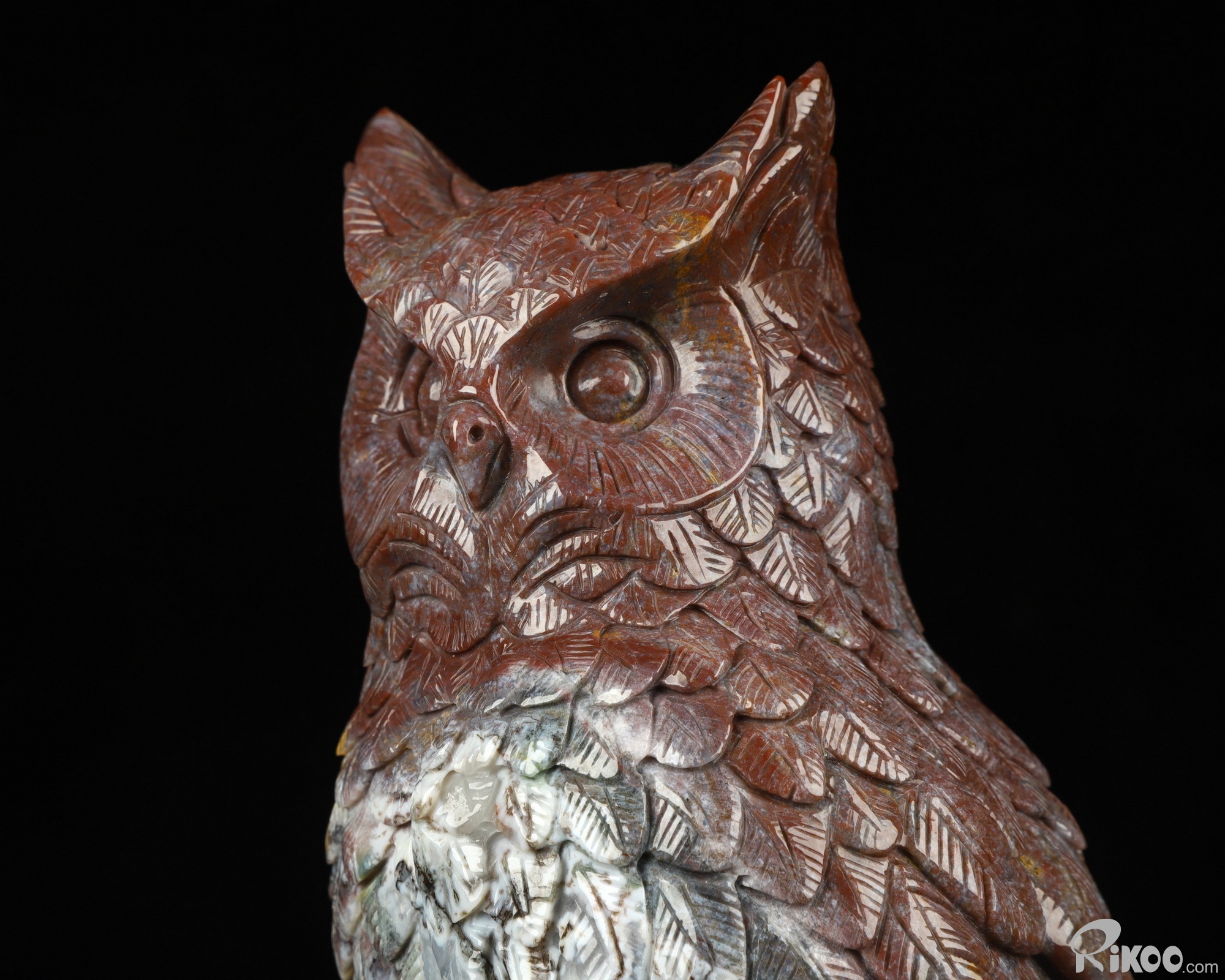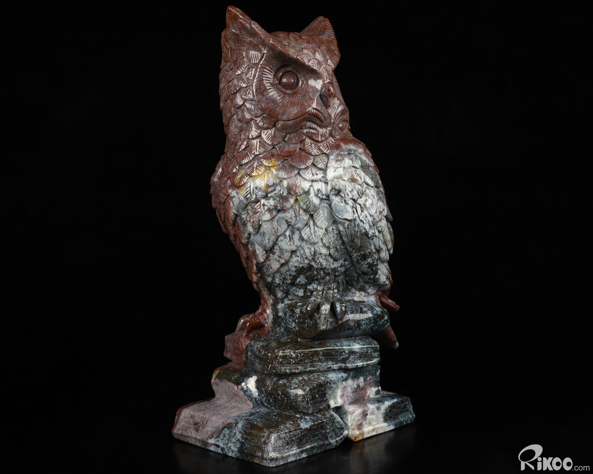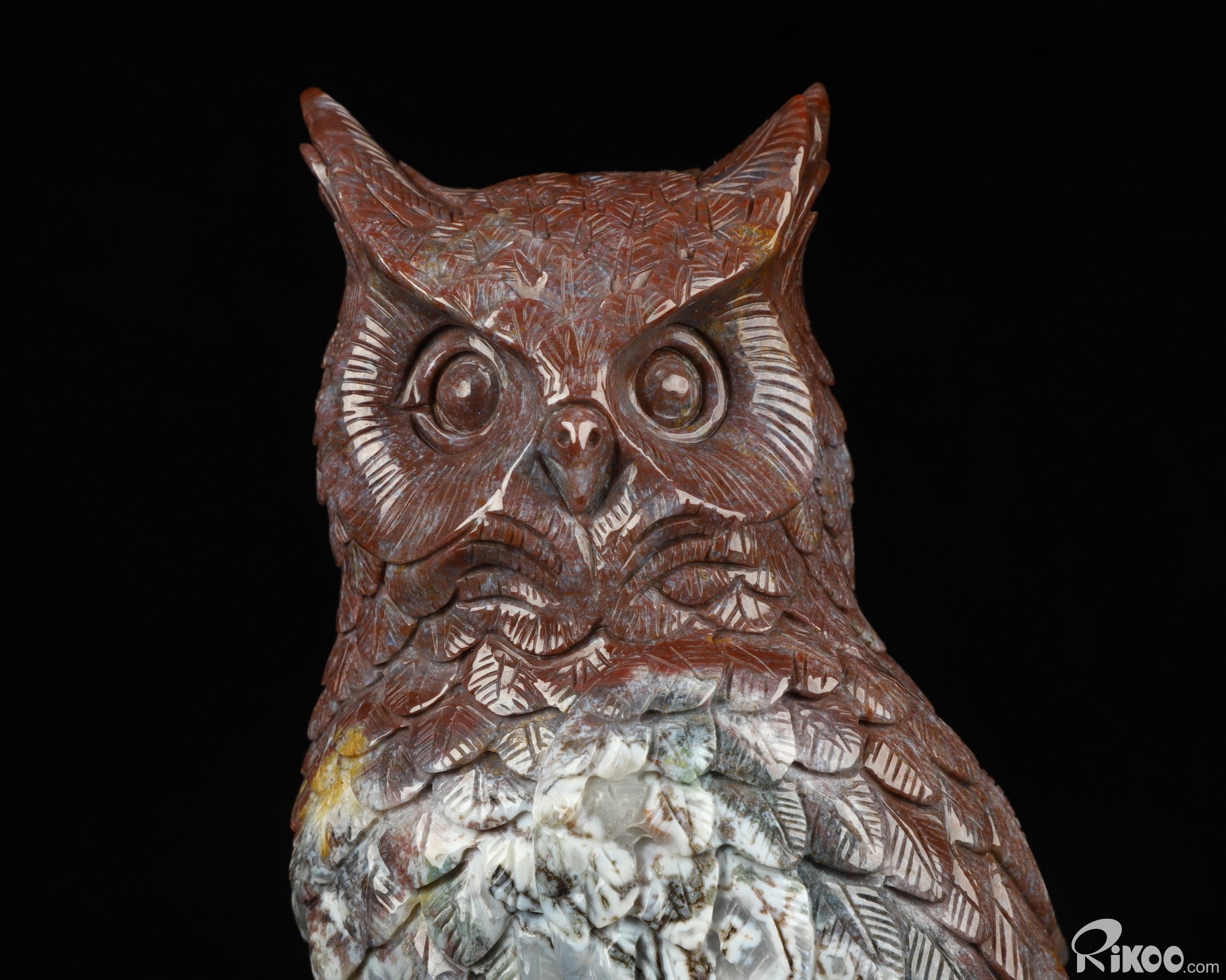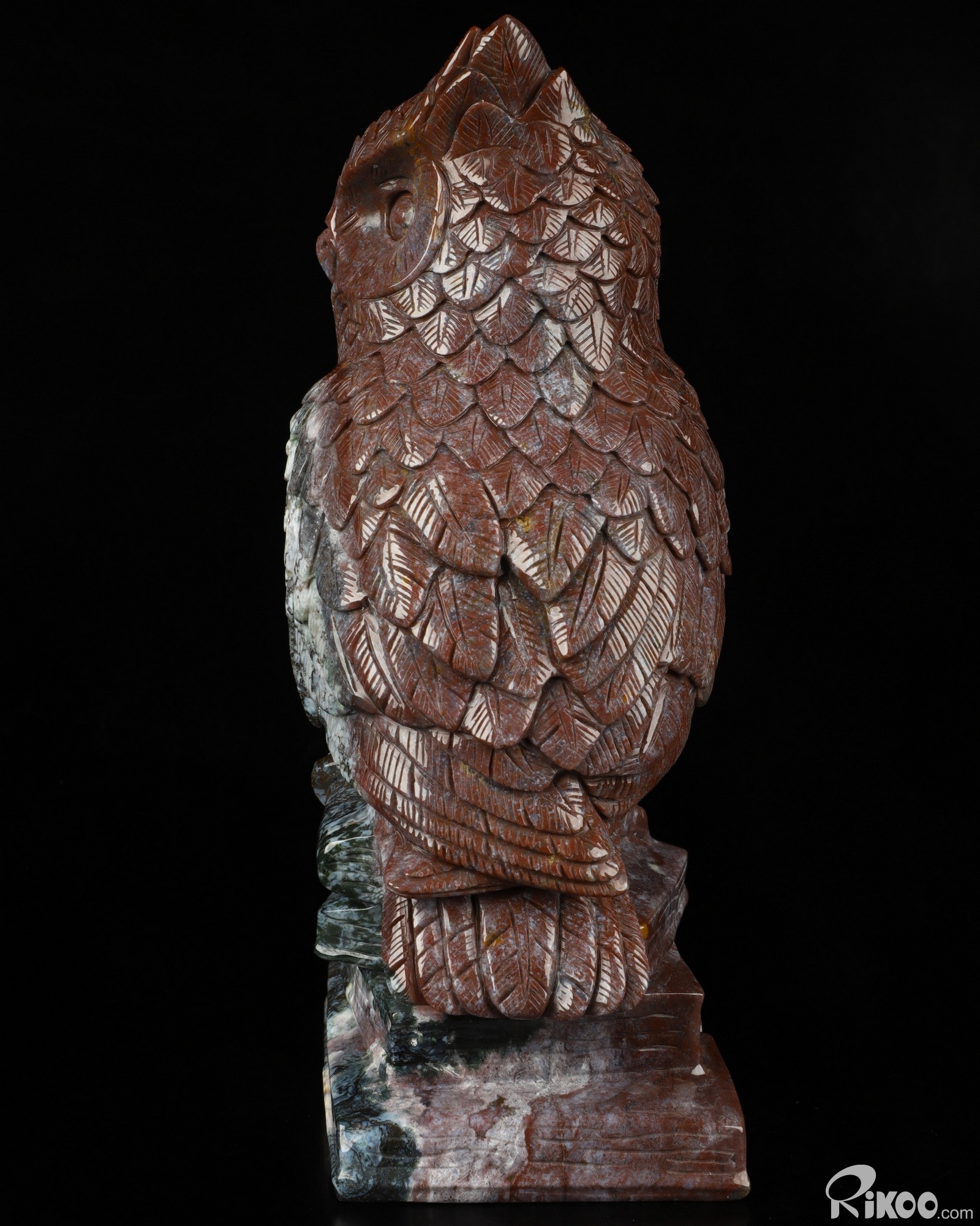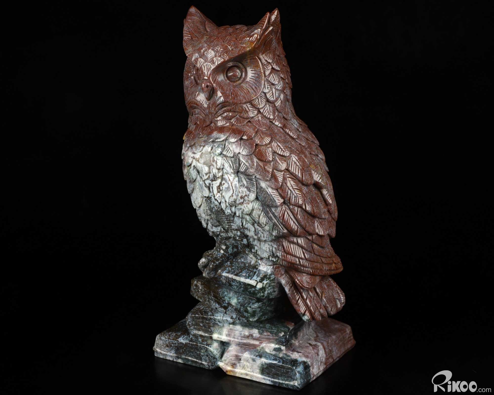 7.8" Indian Agate Carved Crystal Owl Stand On The Book Sculpture, Realistic, Crystal Healing