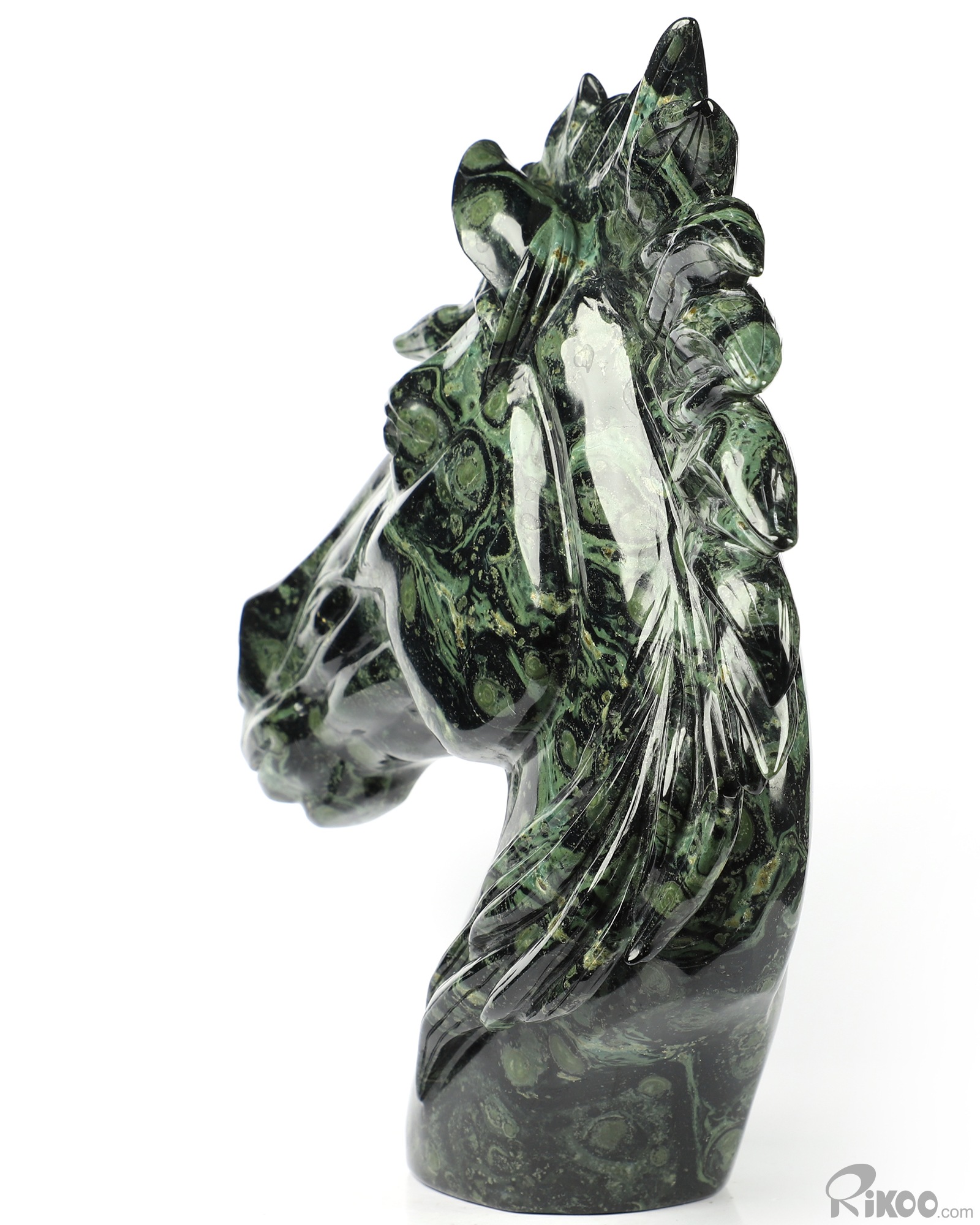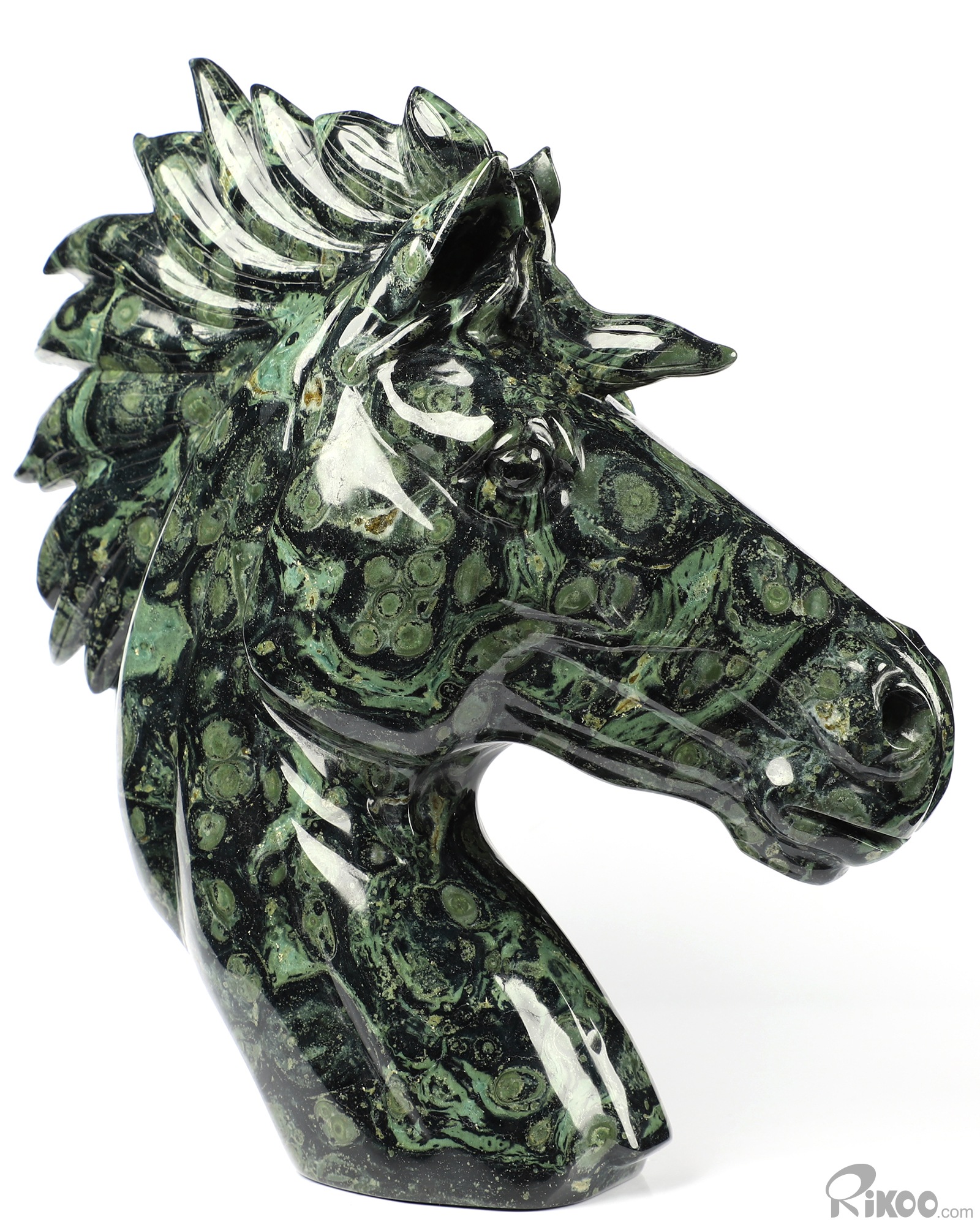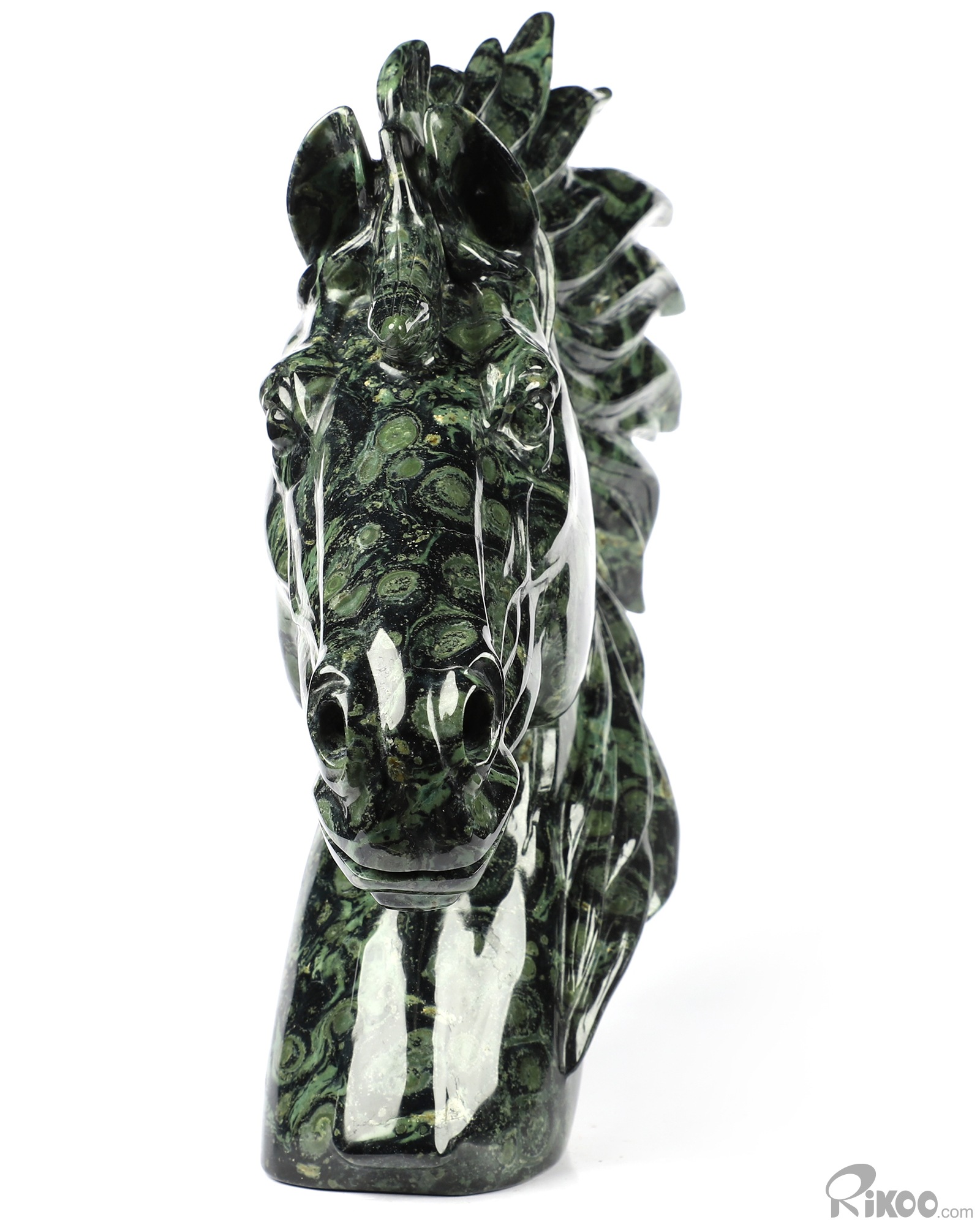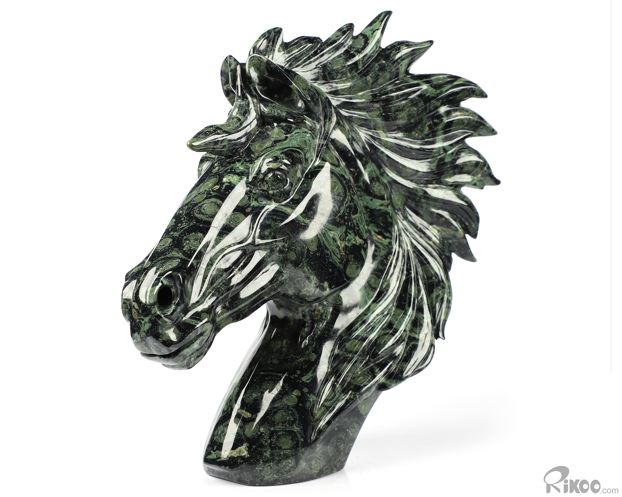 7.8" Kambaba Jasper Carved Crystal Horse Head Sculpture, Realistic
