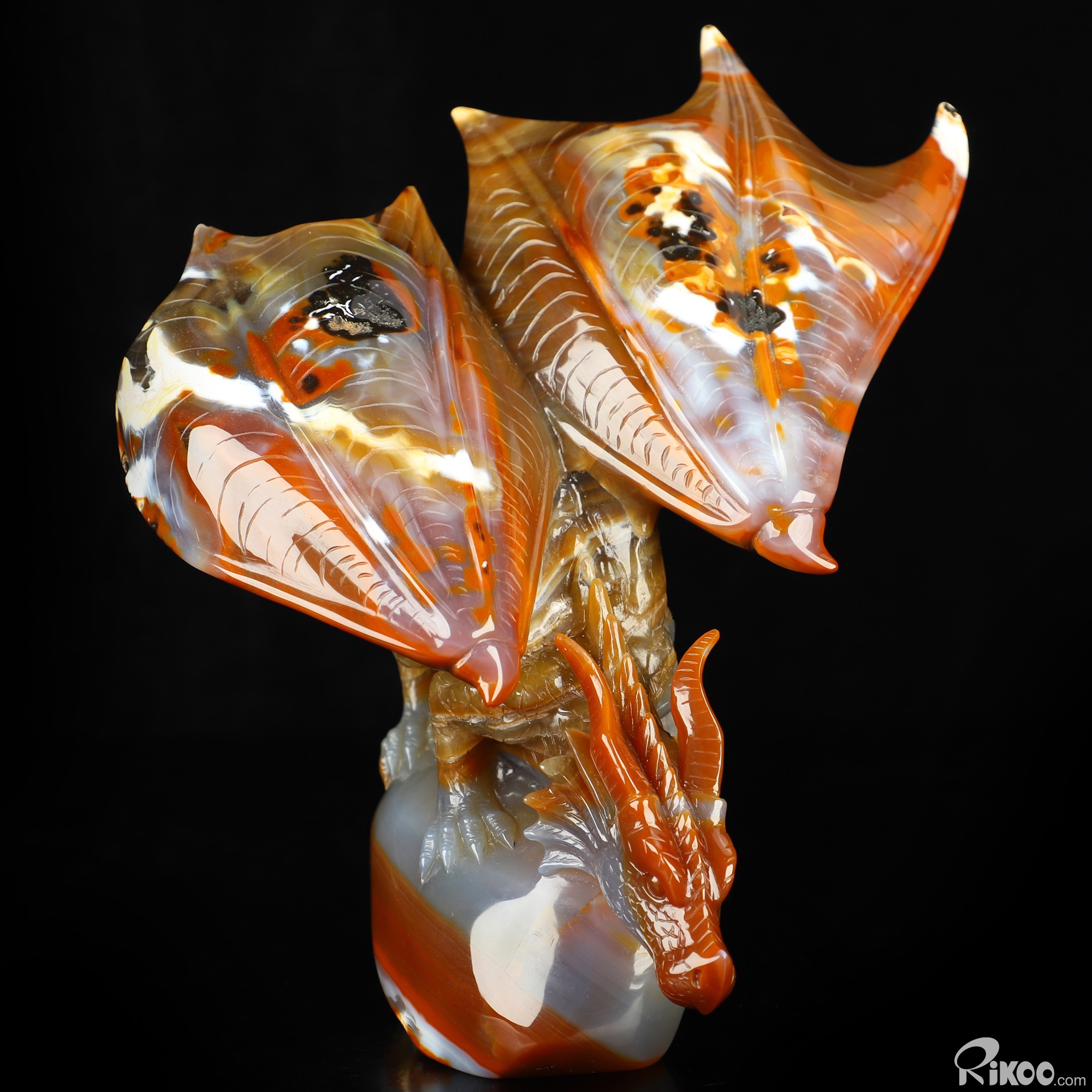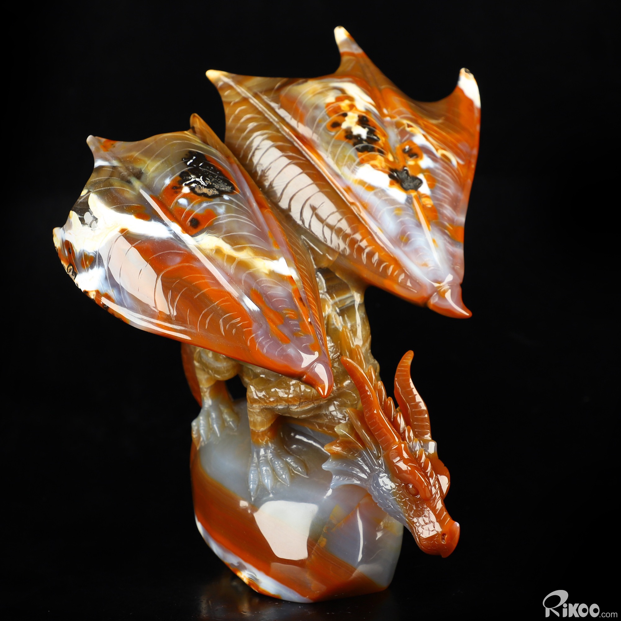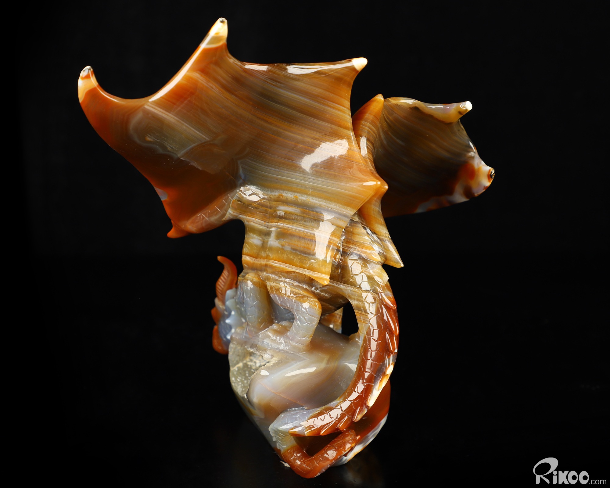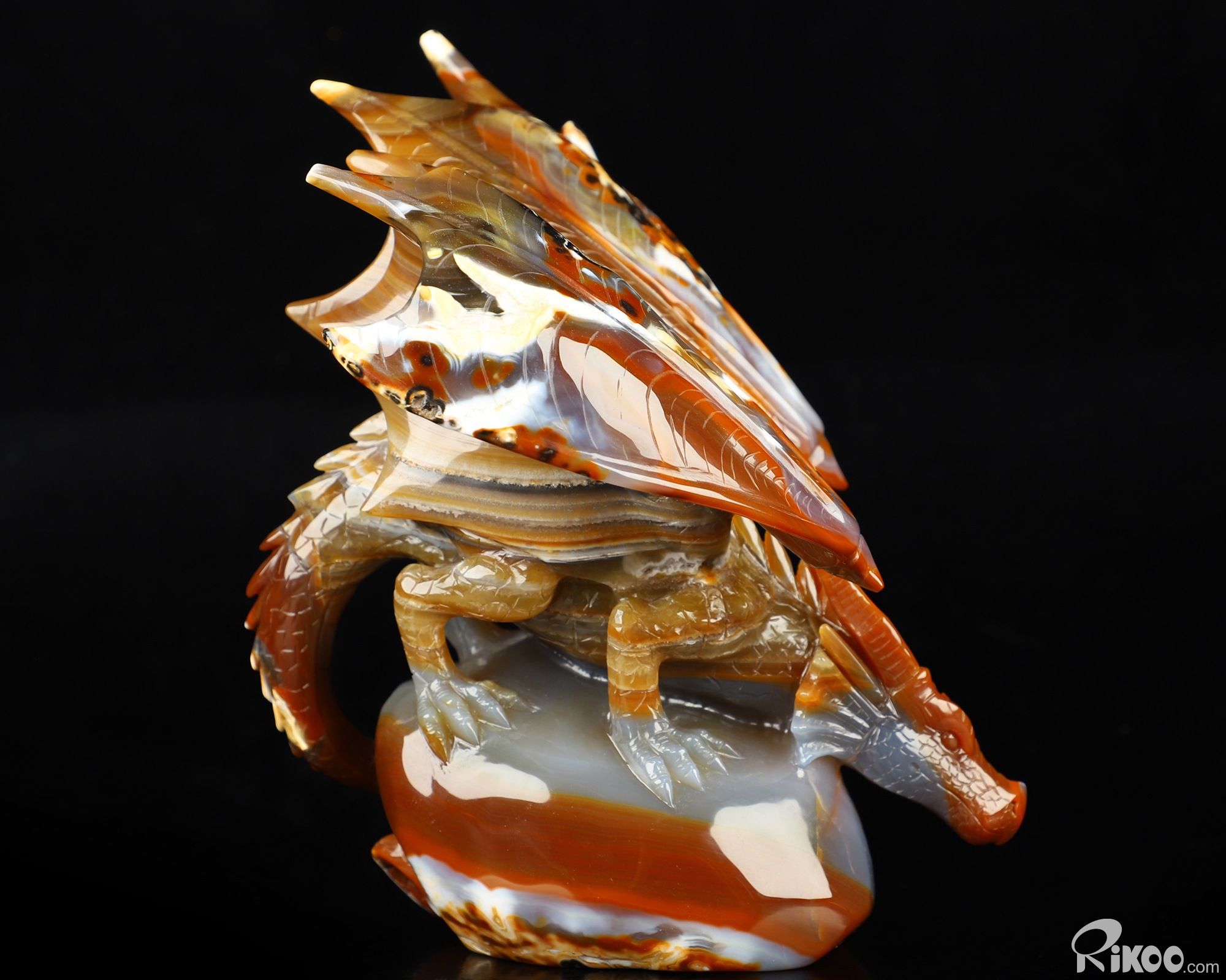 7.8" Premium Brazilian Agate Hand Carved Crystal Dragon Sculpture, Crystal Healing